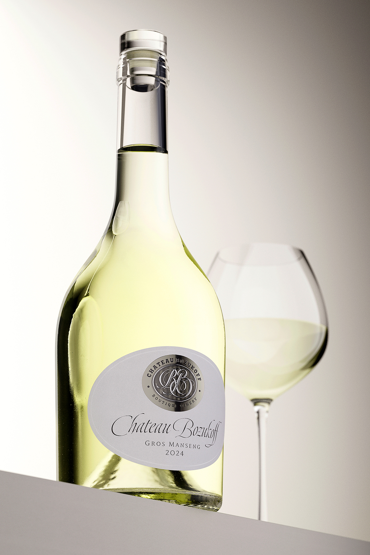 The newly released Château Bozukoff Gros Manseng 2024 is a standout example of Premium Fused Wine Label Design. The label combines: