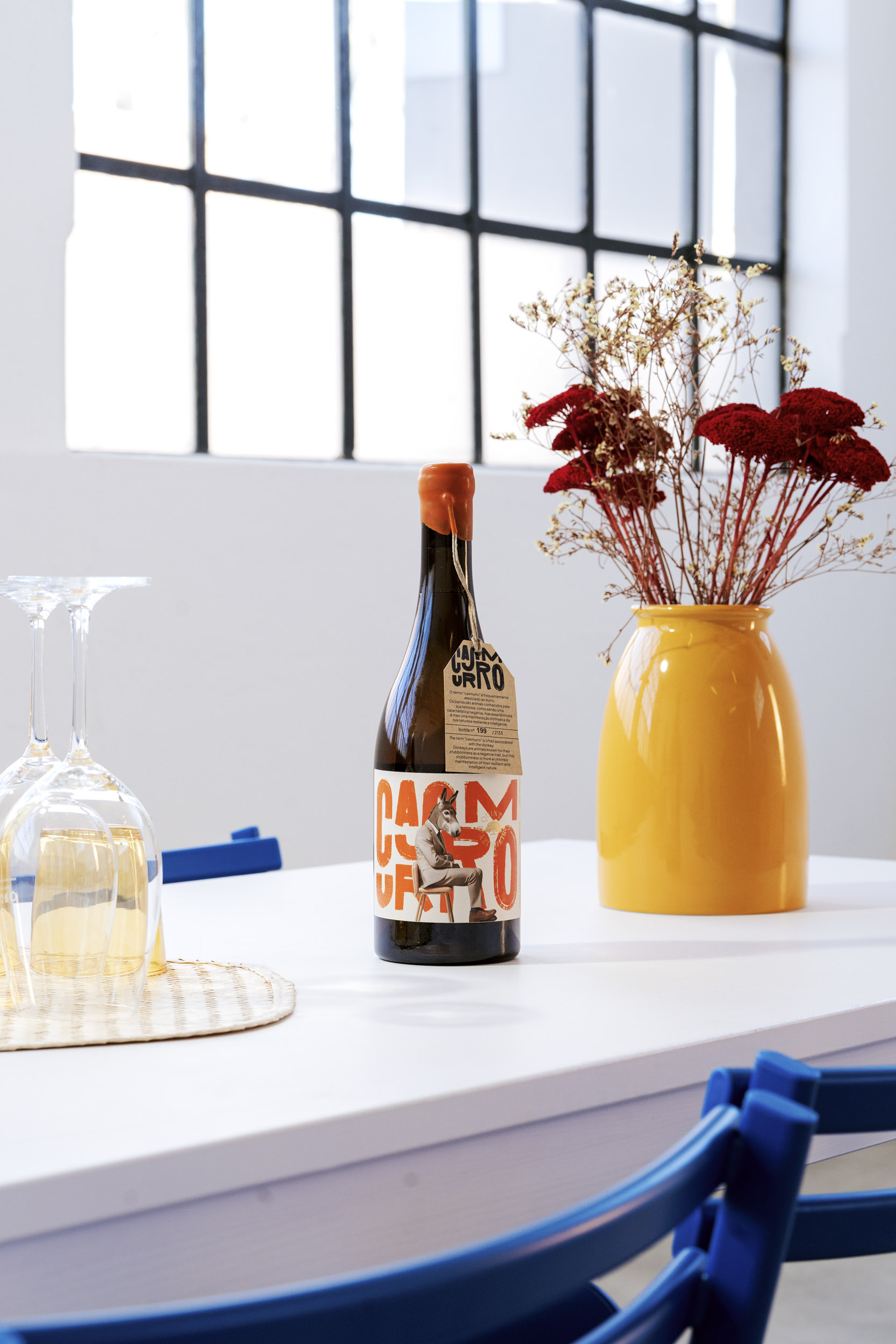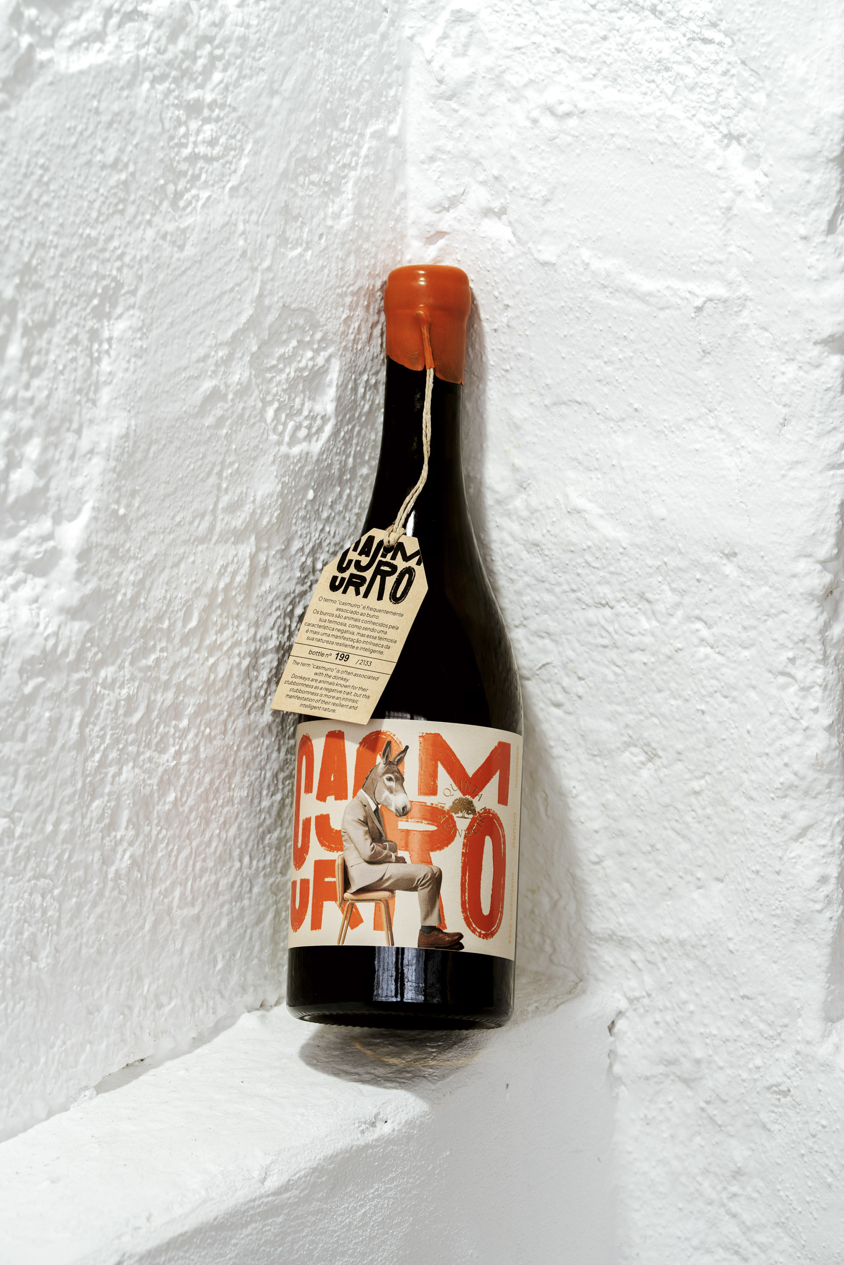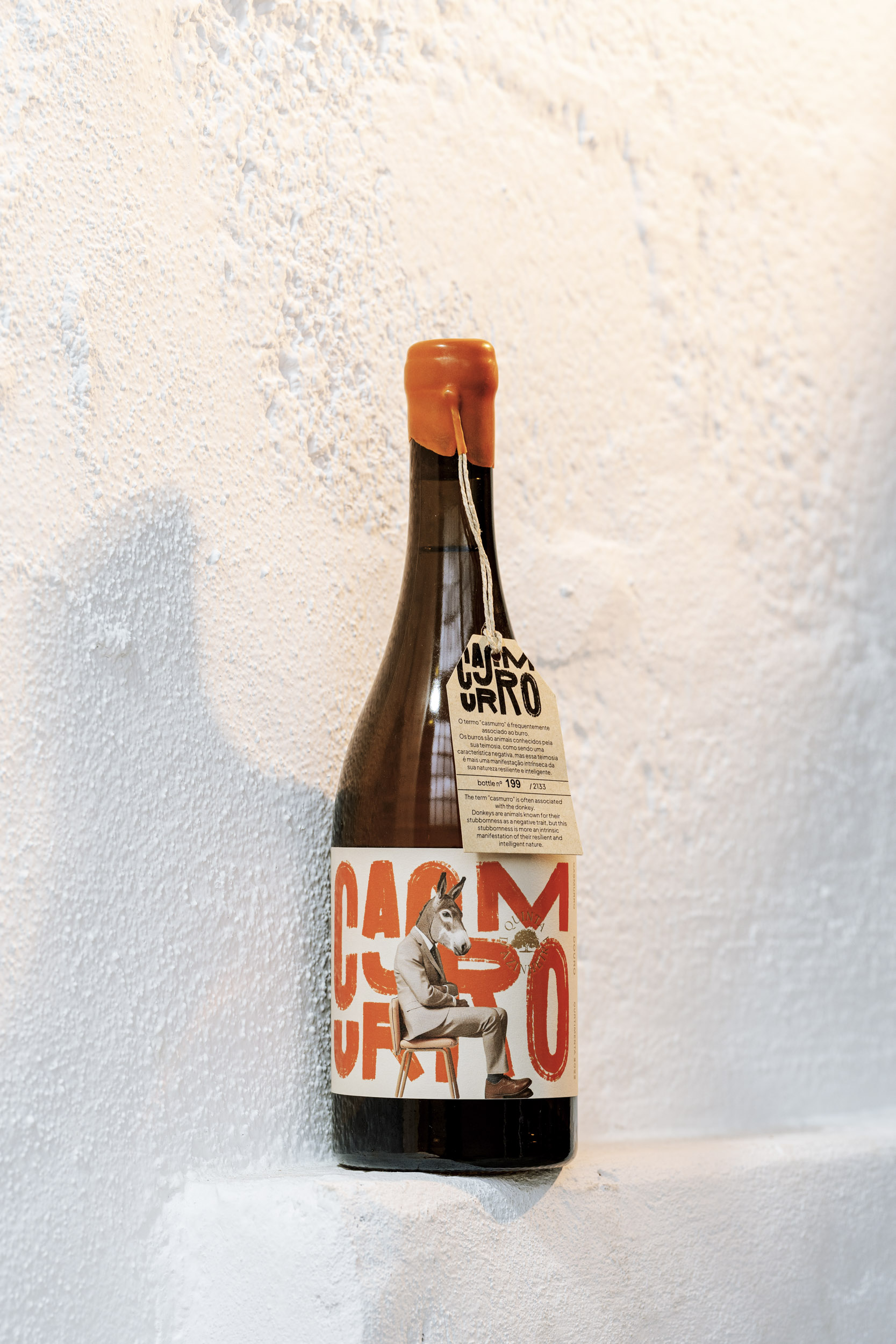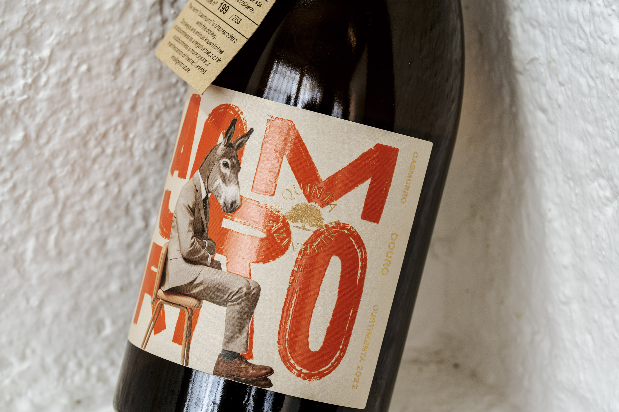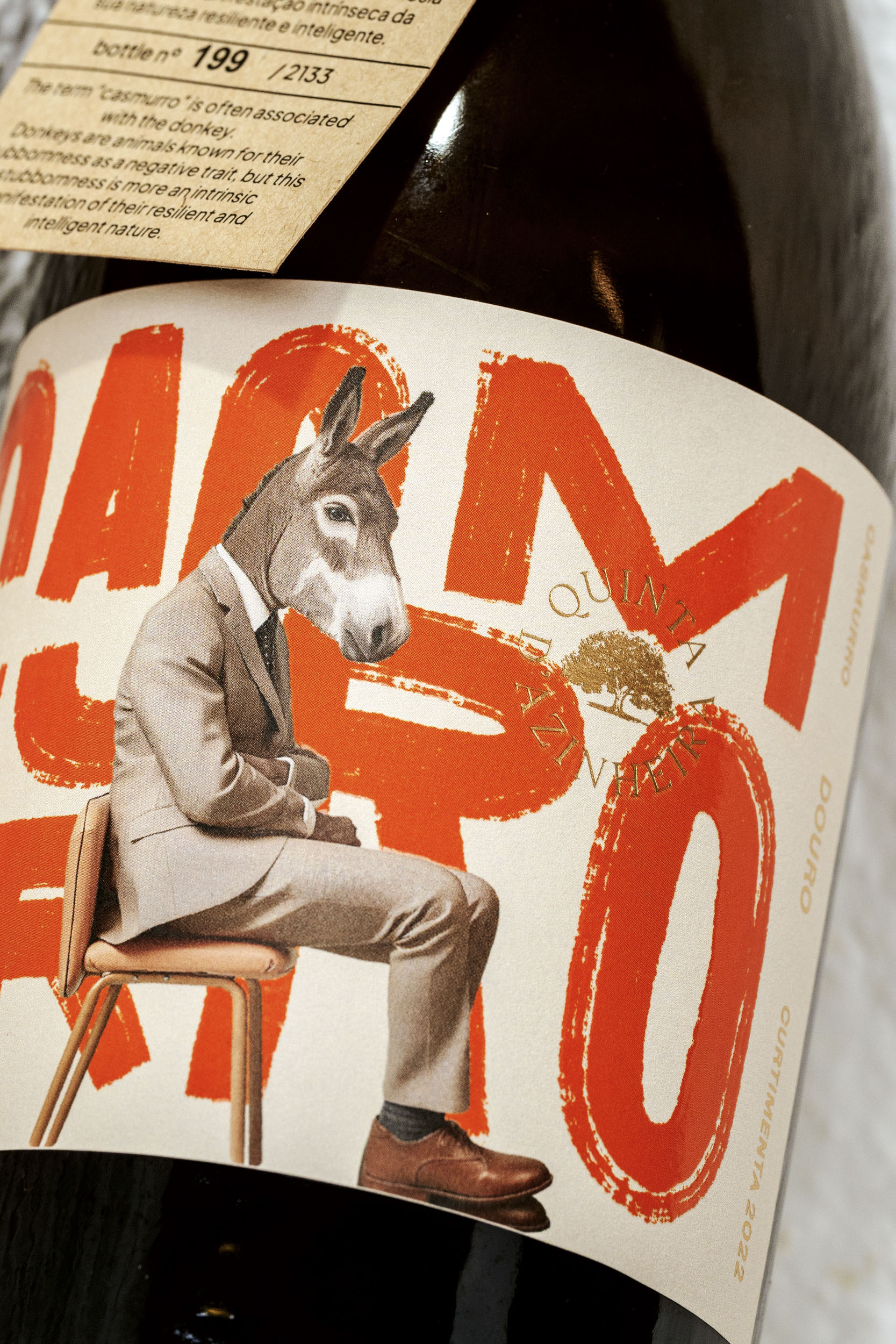 This paradox became the foundation of the brand’s identity and guided every design decision. At the centre of the label stands a donkey in a suit – playful on the surface, but deliberate at its core. Traditionally associated with stubbornness, the donkey becomes, in this context, a symbol of resilience and persistence. By dressing it formally, the design mirrors the group of entrepreneurs and investors behind the project, known for their own “casmurro” spirit.
