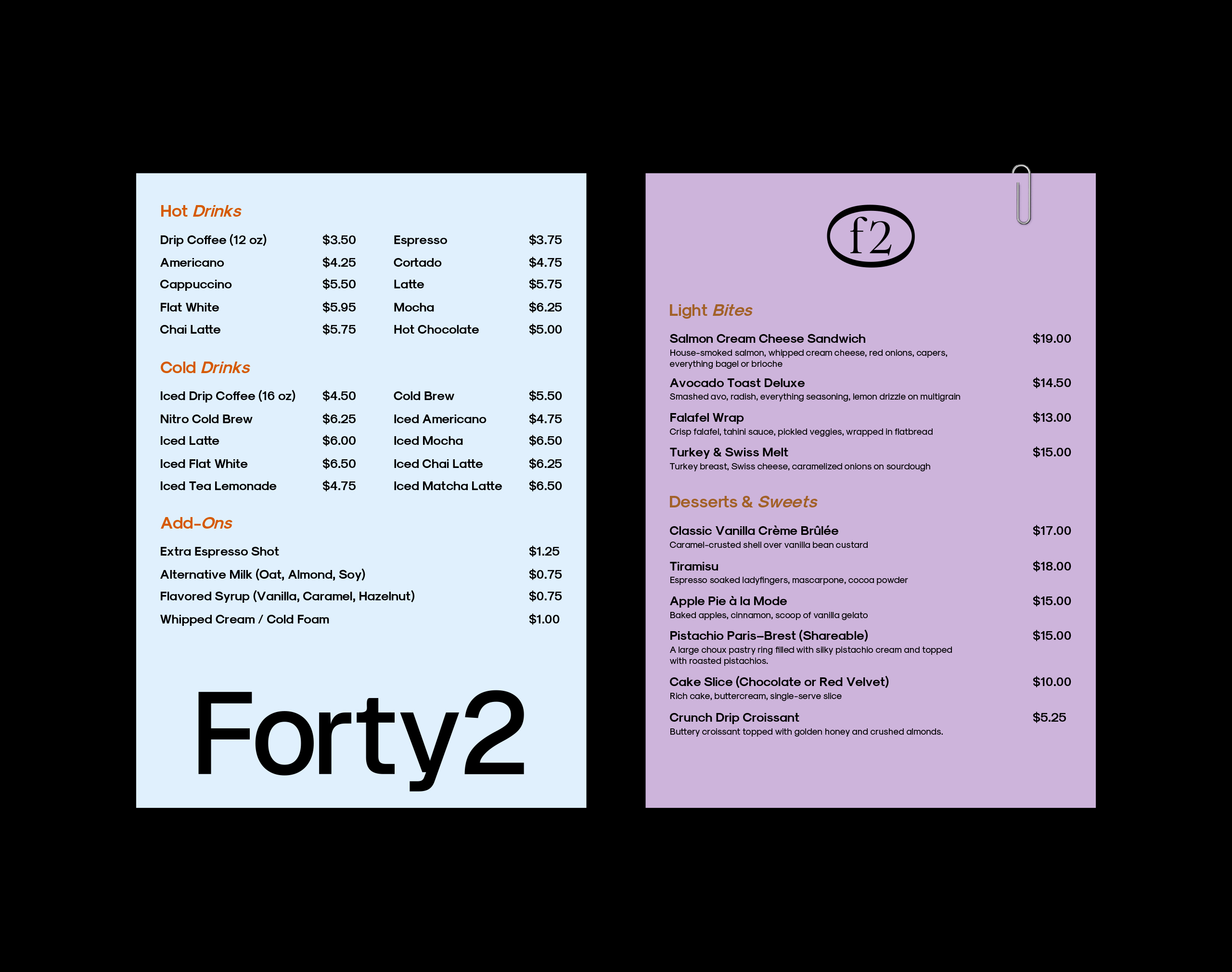 It’s not just about what’s in the cup — it’s about the culture around it. A Gen Z space alive with bold visuals, crafted menus, and the kind of atmosphere that makes time slow down. From an iced pour-over between classes to a weekend brunch with friends, Forty 2 is where design, flavor, and community meet.