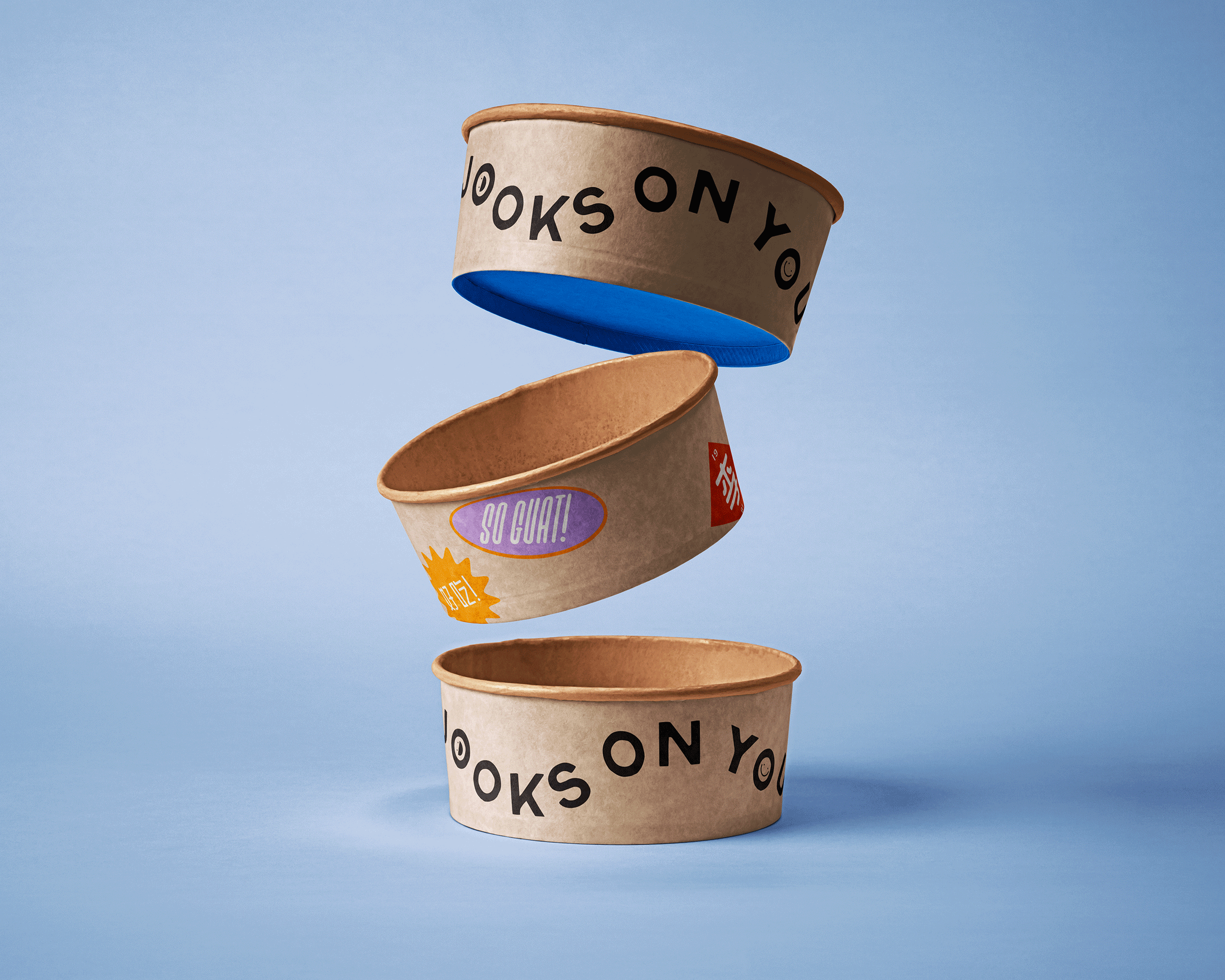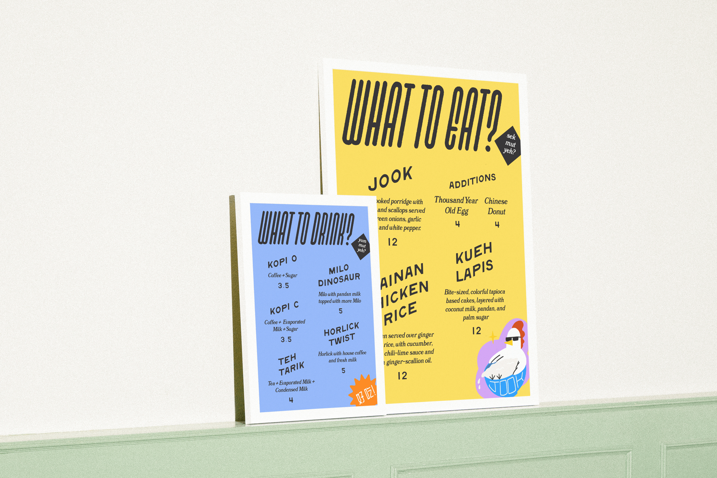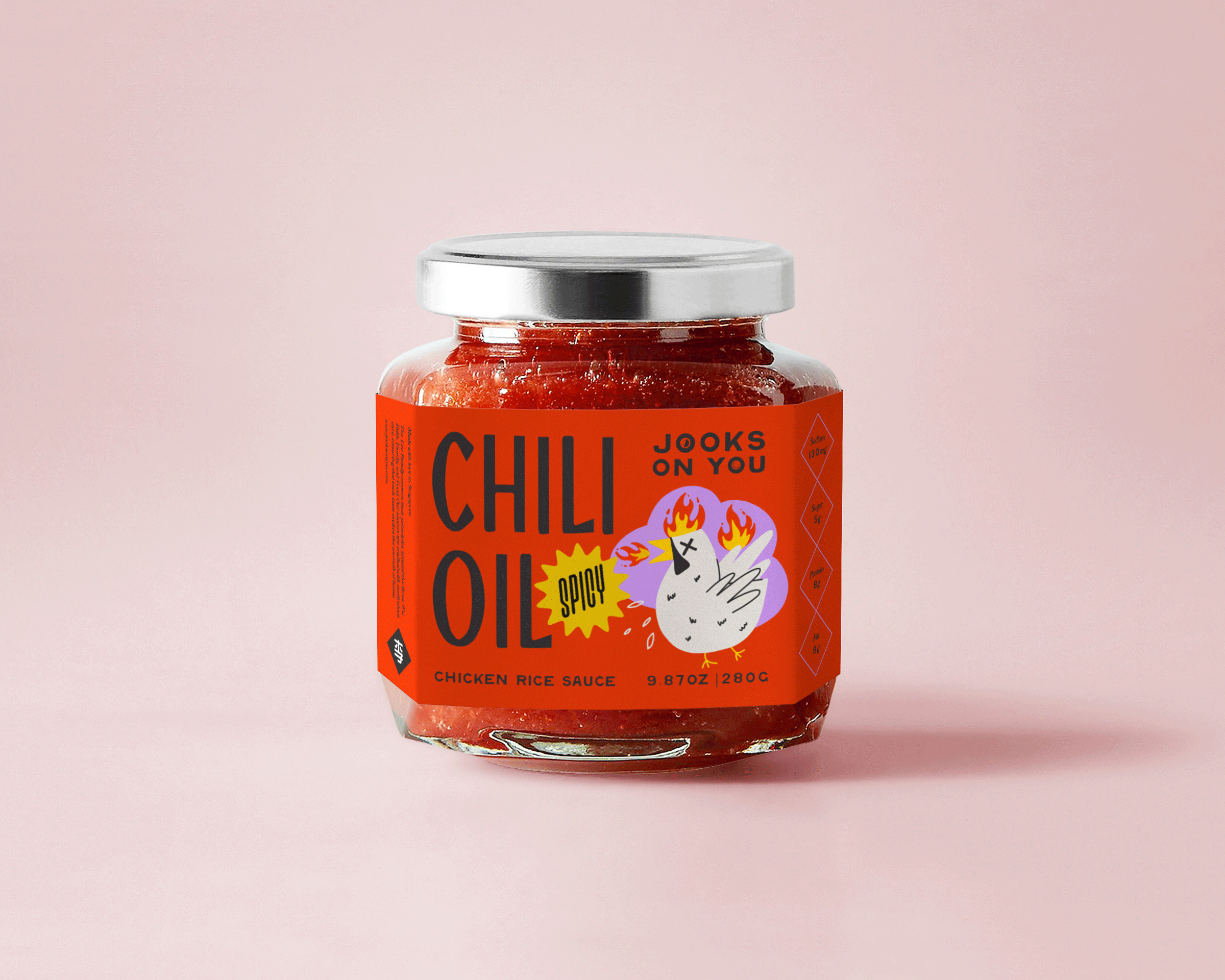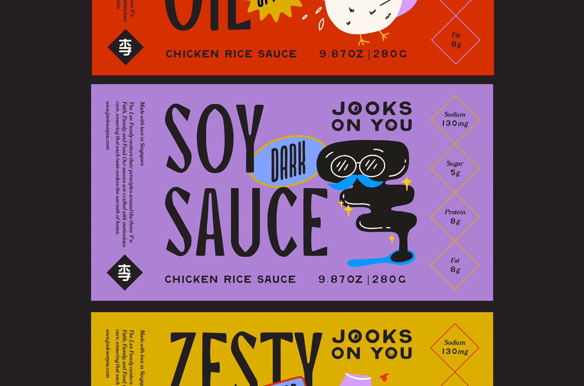 “Jooks On You” riffs on the phrase “jokes on you,” nodding to the family’s playful spirit and tight-knit bond. That lightheartedness is woven into the brand’s design approach, where whimsy and humor take center stage. Lively illustrations with doodle-like character bring bowls of jook and ingredients to life, emulating the warmth of the Lees’ kitchen and the cheer of shared laughter. Bold, vibrant colors energize the identity while playful typography adds movement and personality, giving the brand a dynamic, conversational feel.