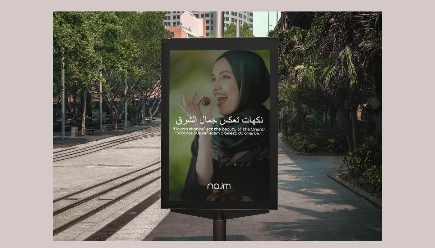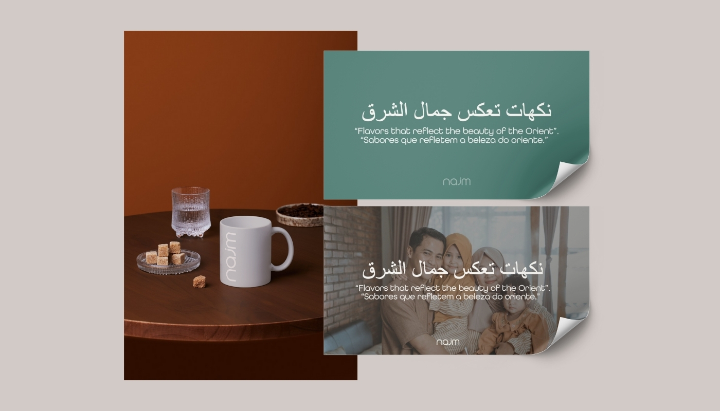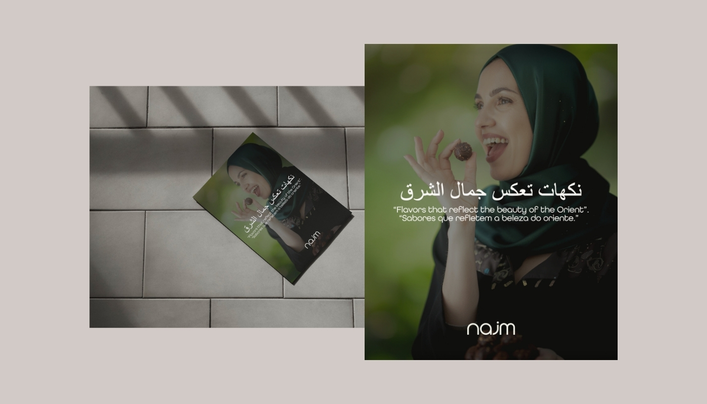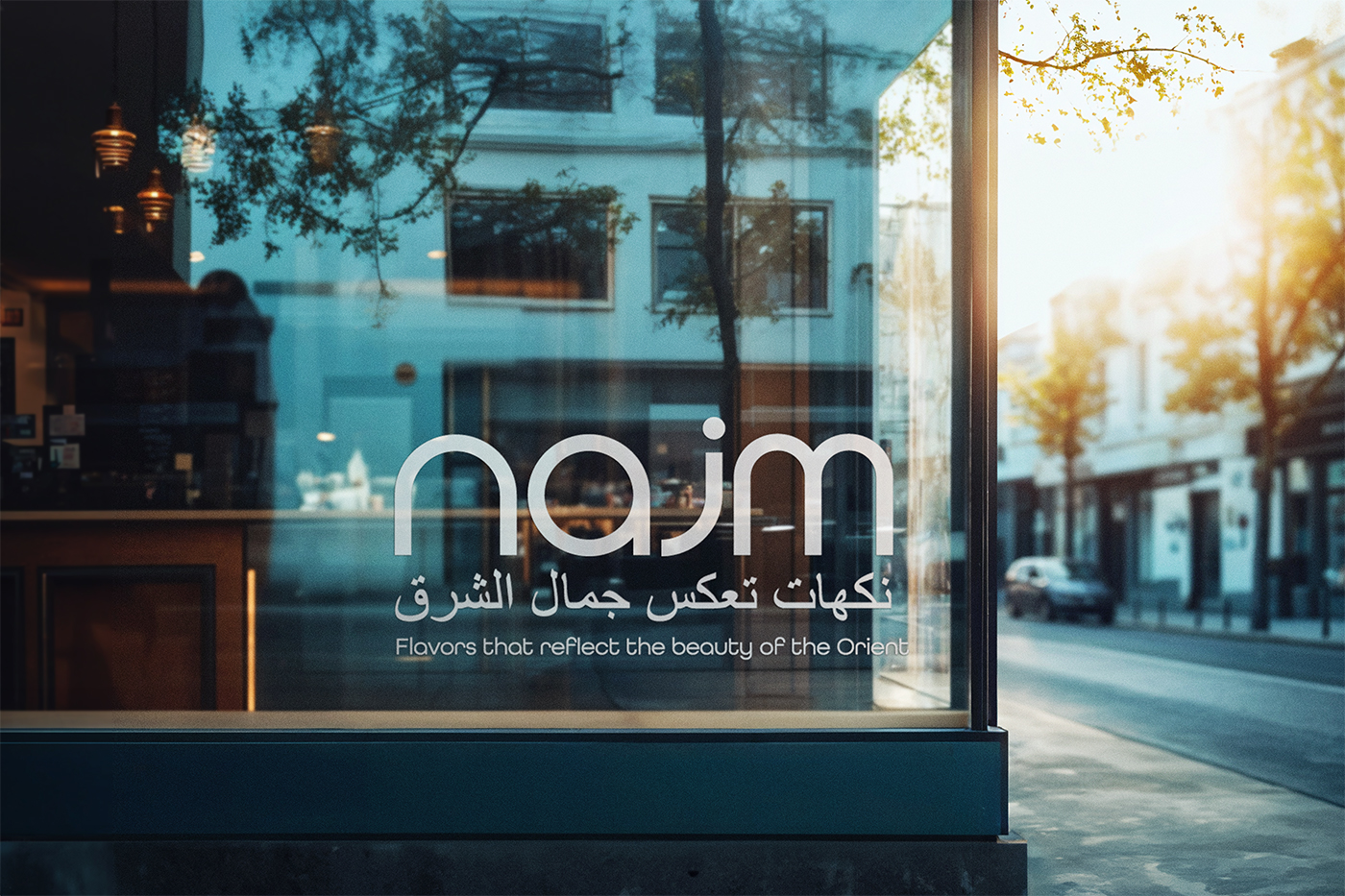The typography of the Najm logo was chosen for its curves inspired by the arches and domes of the King Abdullah Mosque, serving as both an aesthetic and symbolic reference throughout the project. The pattern and graphic elements were developed based on the geometric structures and ornamental details found inside the mosque. In addition, the circular graphic element represents the sun or the morning star—a visual translation of the name Najm, which in Arabic means “star.”