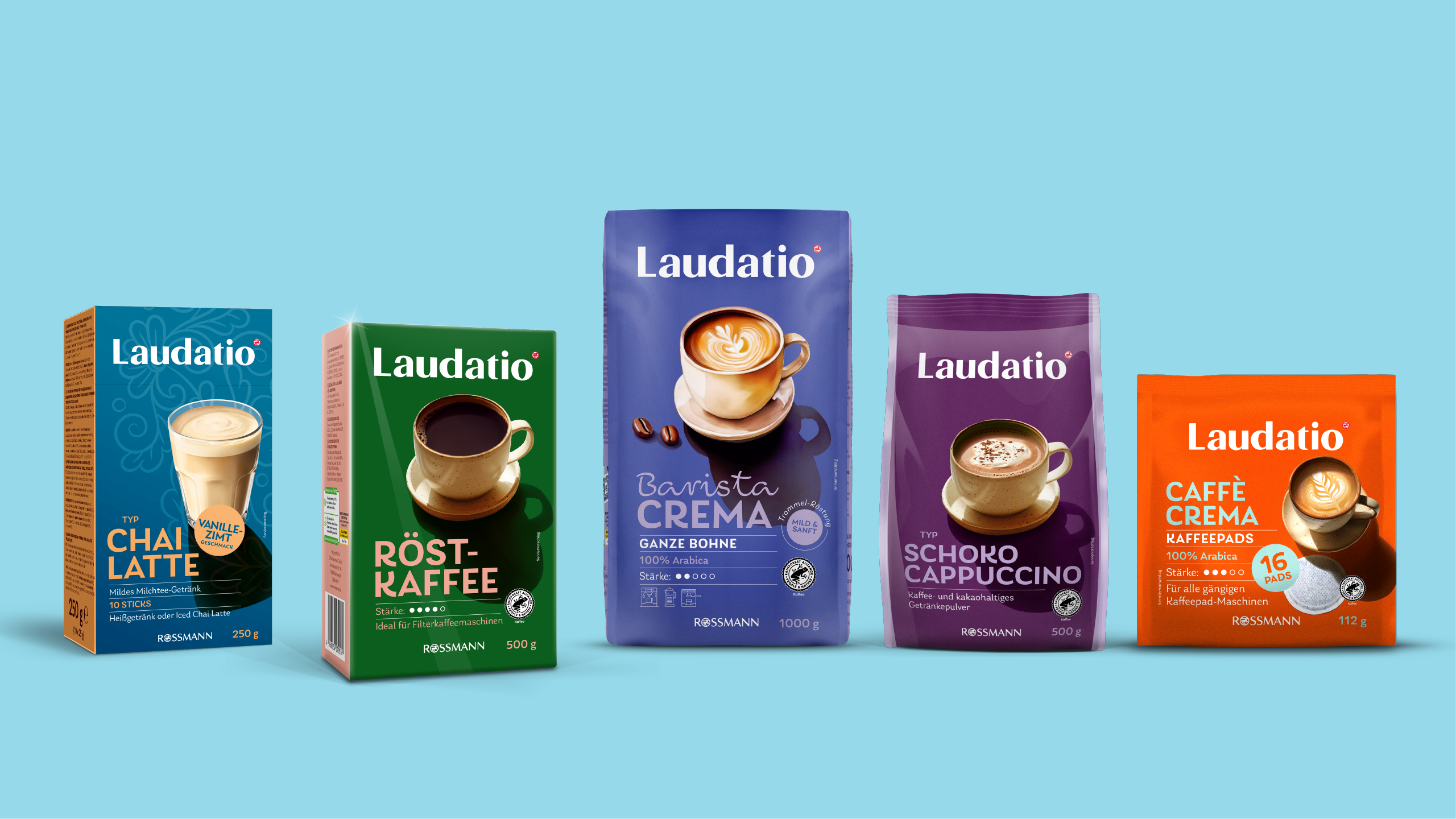 MILK’s redesign of Rossmann’s private label Laudatio modernizes the overall look significantly: from a rather plain and inconspicuous appearance to striking, bold-orange packaging with clear typography and a more appetizing product presentation. The new look feels fresher, more contemporary, and ensures stronger shelf presence.