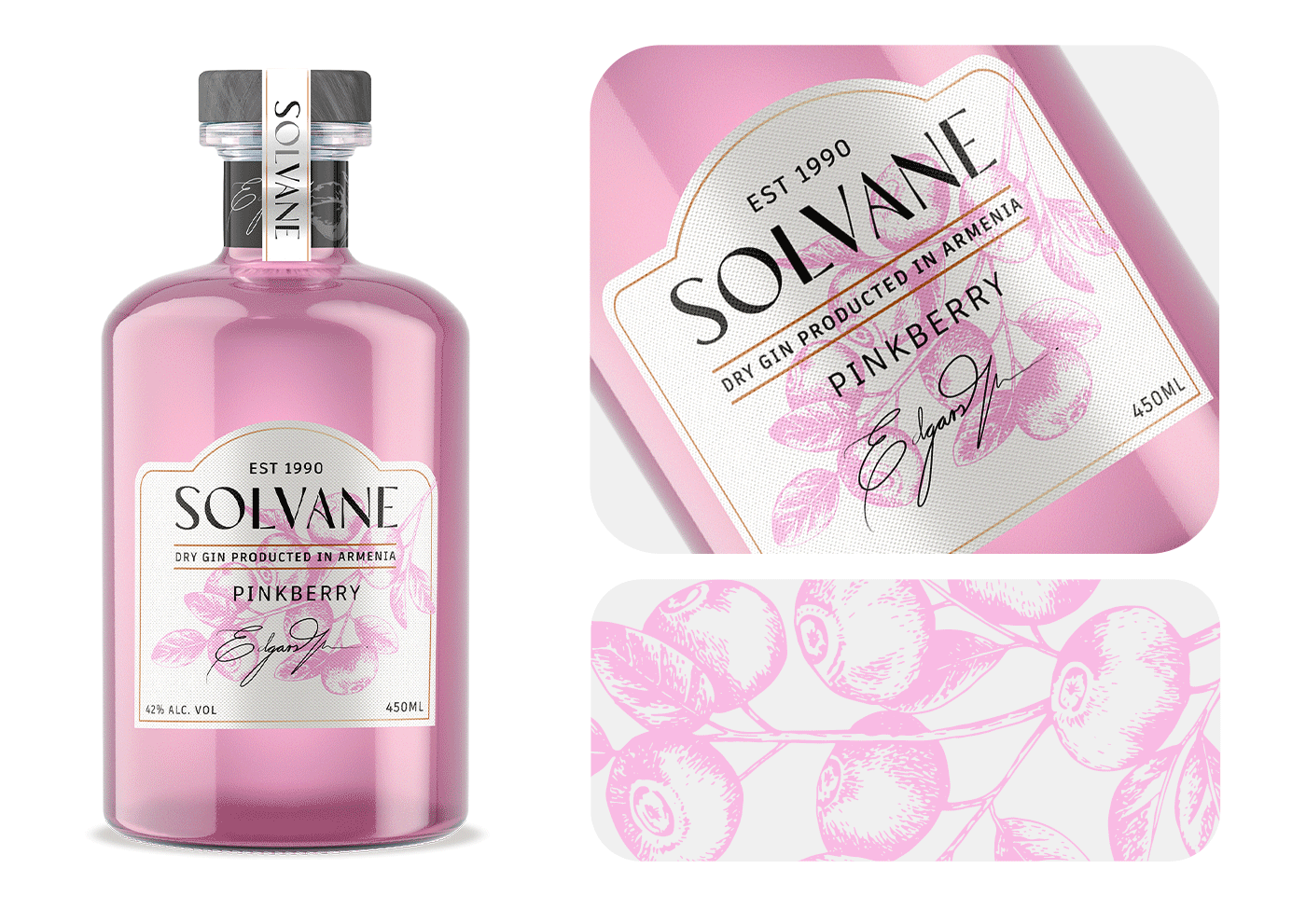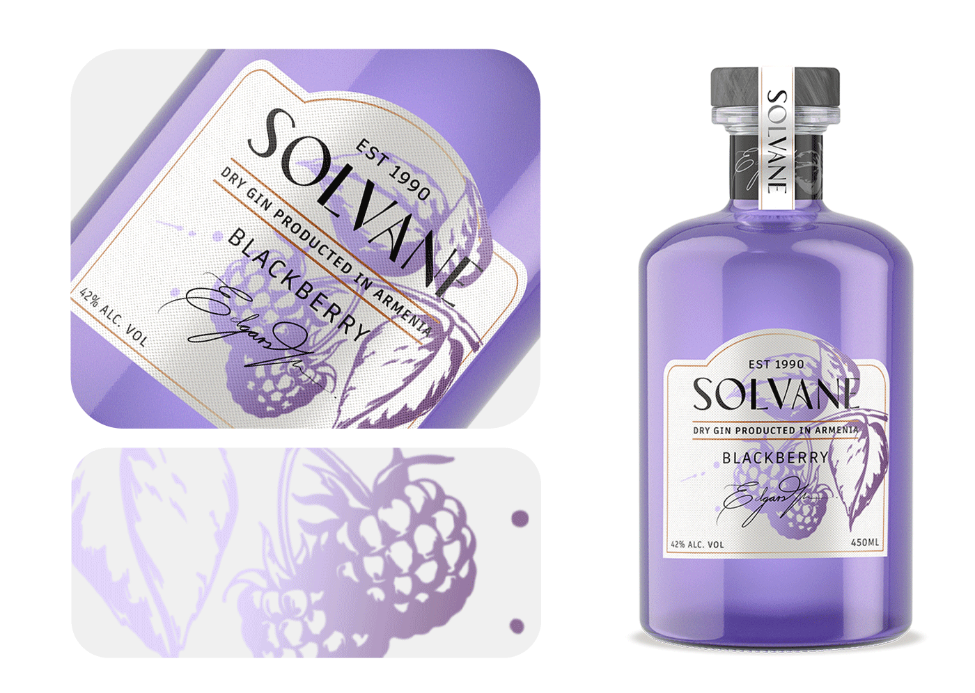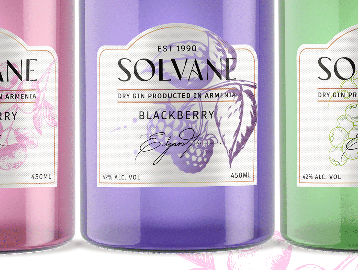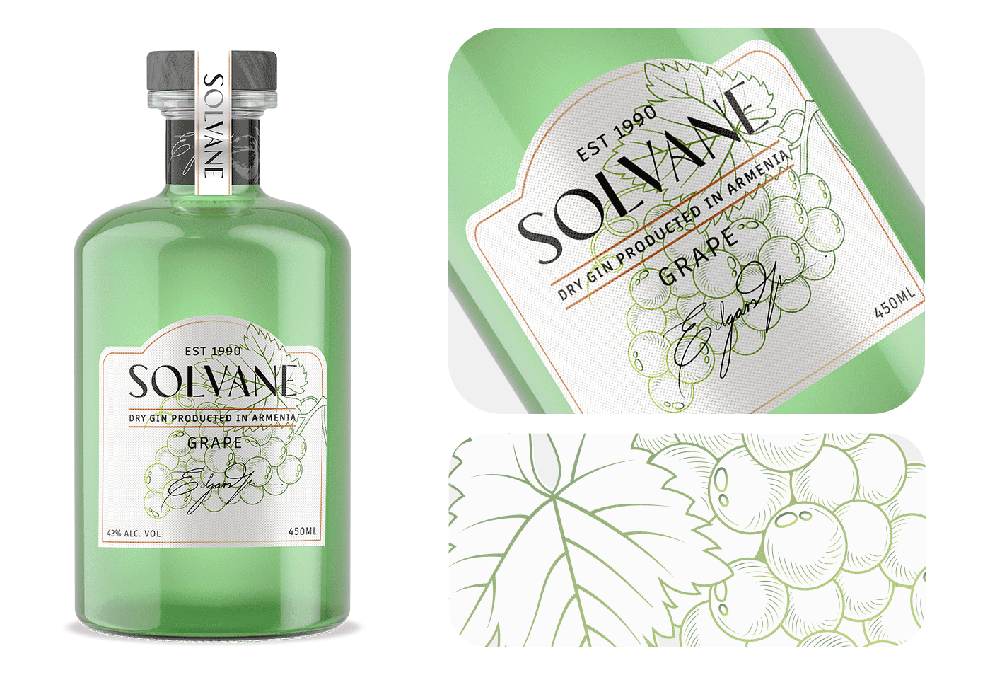 The visual style of Solvane is a blend of minimalist graphics, delicate color transitions, and botanical elements that emphasize naturalness and sophistication. The labels are designed with a focus on tactile quality and visual depth, highlighting the product’s premium and aesthetic value. This project was developed as a concept for a brand that aims to merge a modern approach to distillation with an artistic presentation. Solvane is a drink for the golden hour — for quiet evenings and a sense of inner calm.