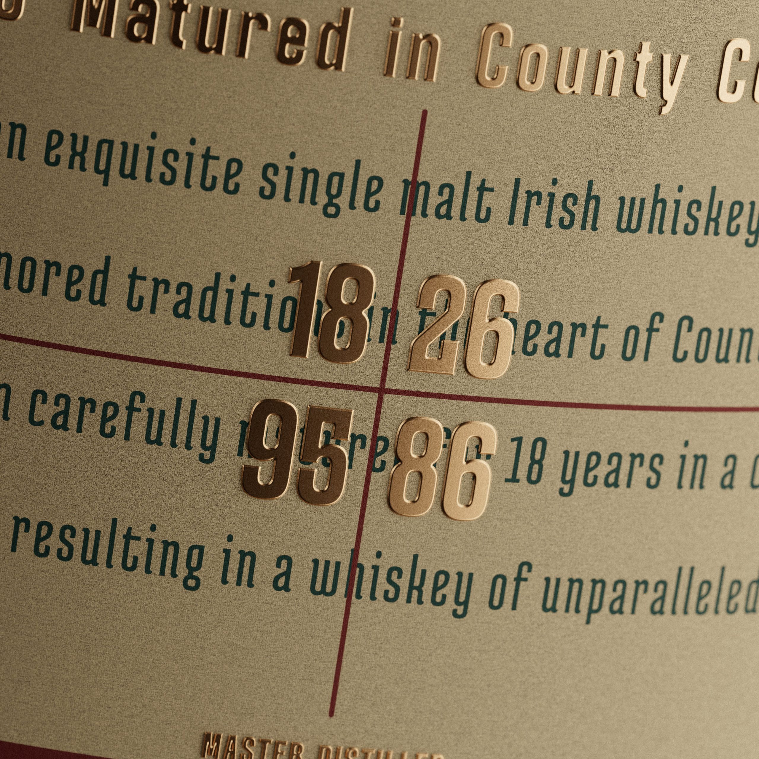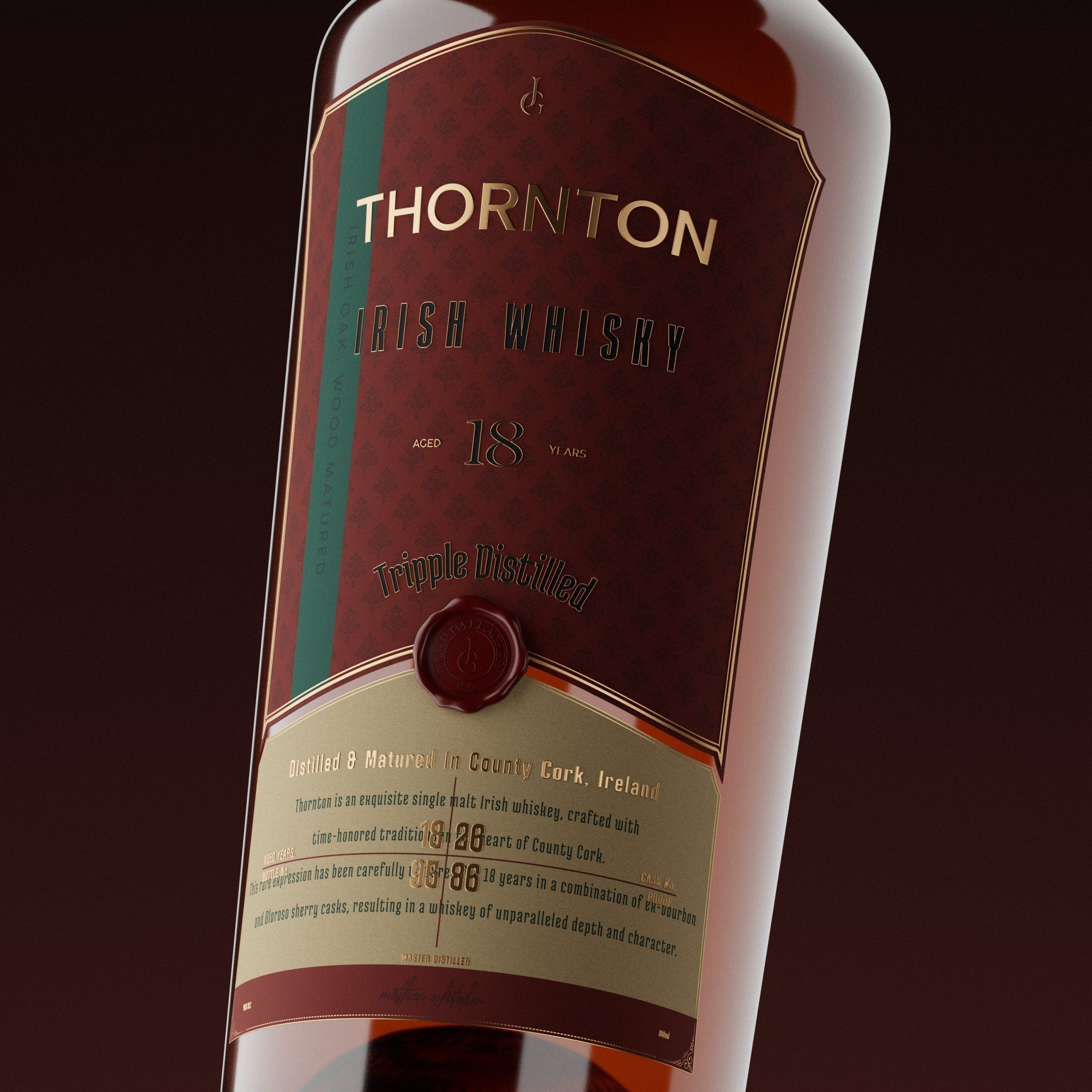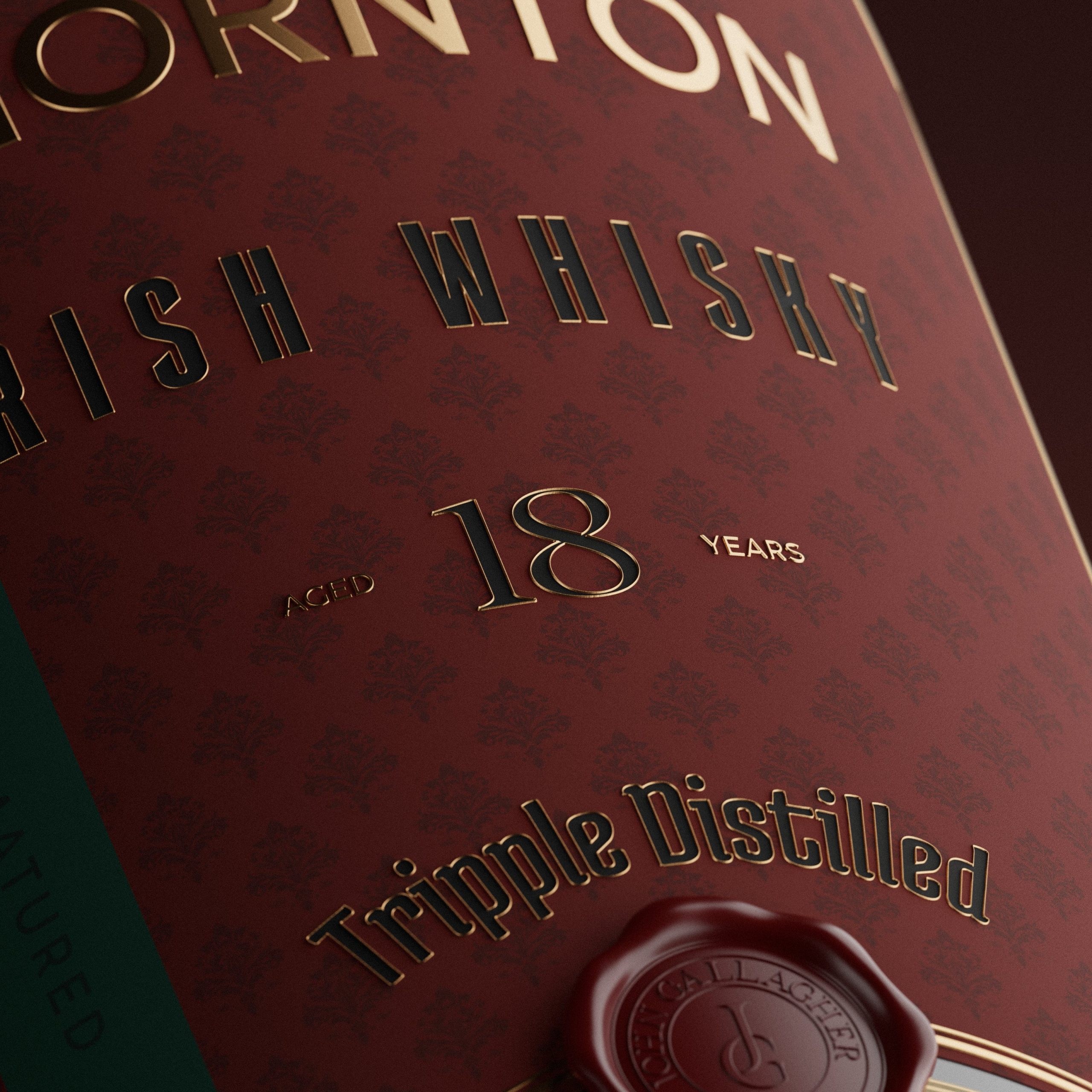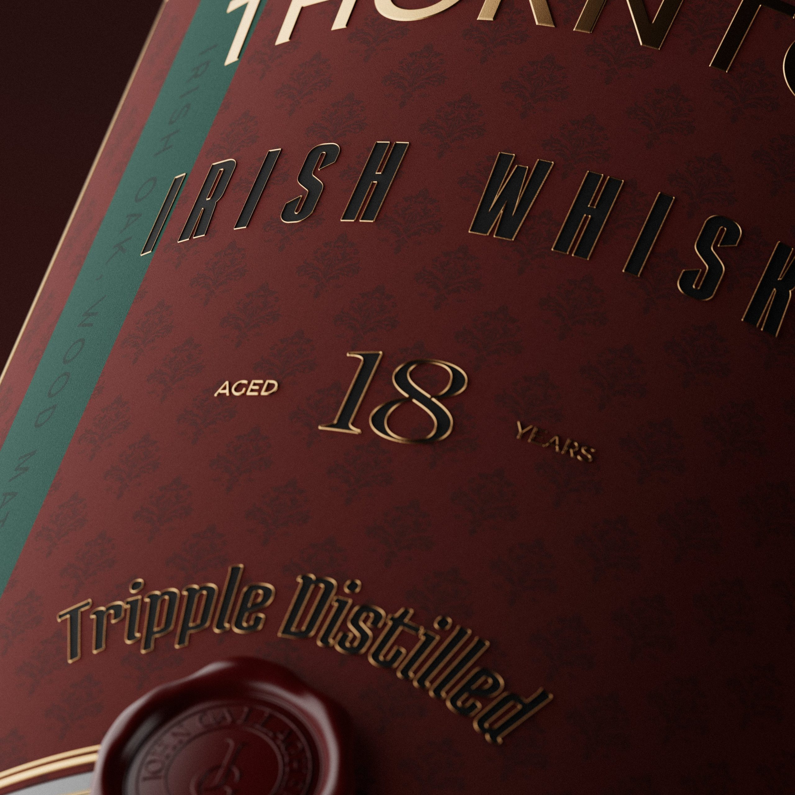 The idea was to create a label that combines Irish whisky tradition with a premium feel. I started with a rich maroon color and used gold foil to highlight the text. A subtle background pattern was included to add texture without distracting from the text. The wax seal was added to give the label an authentic touch. The green accent represents Irish heritage, and the bottom panel organizes all the important production info clearly. The result is a classic, elegant label that feels trustworthy and refined.