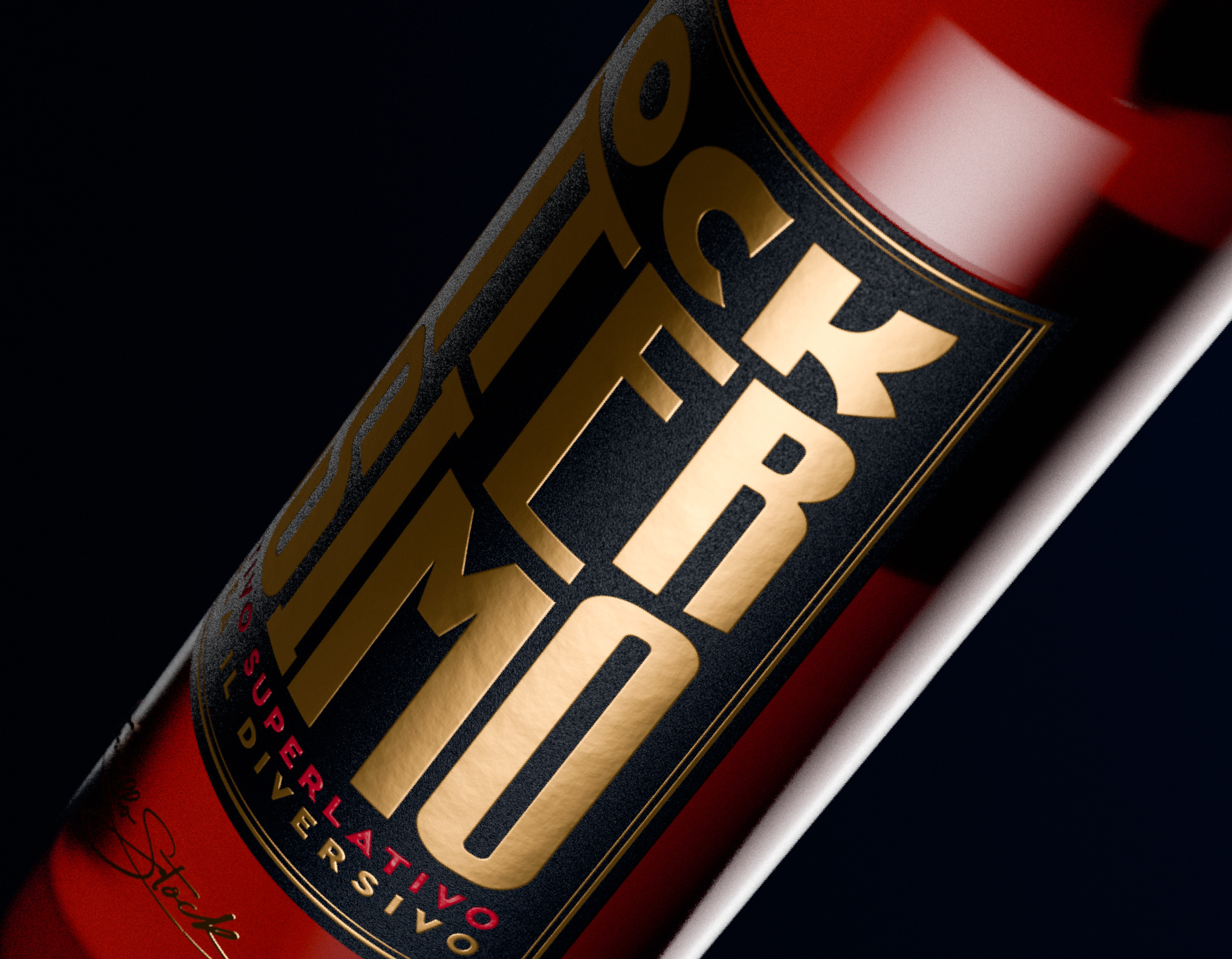 We also shouted the swaggering personality through an insistent use of gold on a dark background, a metaphor for the superlative “issimo” in the name, insisting on its unique and proud eccentricity. And on superlative extravagance also feeds the slogan: the ‘superlative aperitif that creates diversion’, positioning Bitterissimo as the best way to give classic aperitifs and cocktails a boost, by simply borrowing two fingers of its great personality.