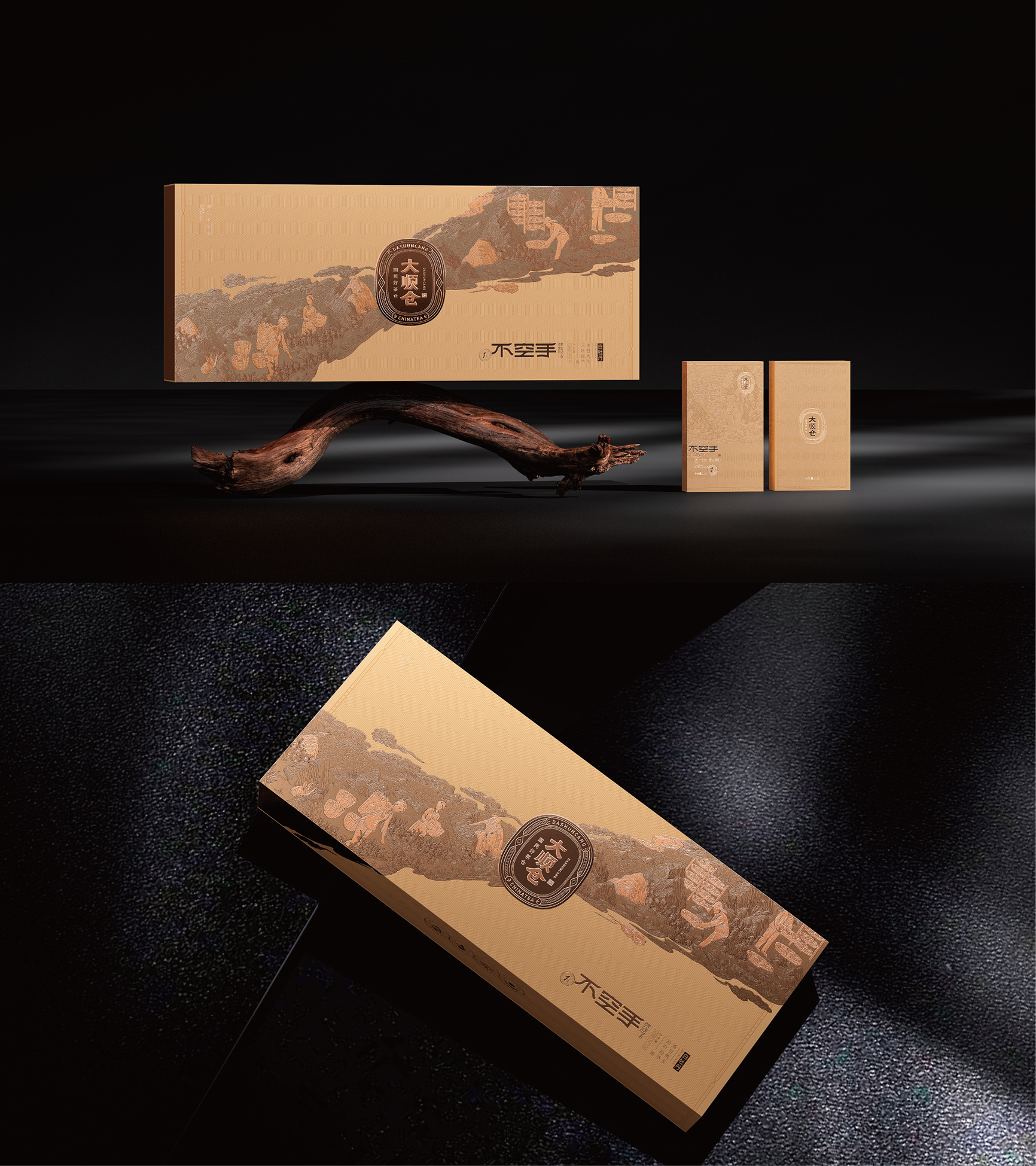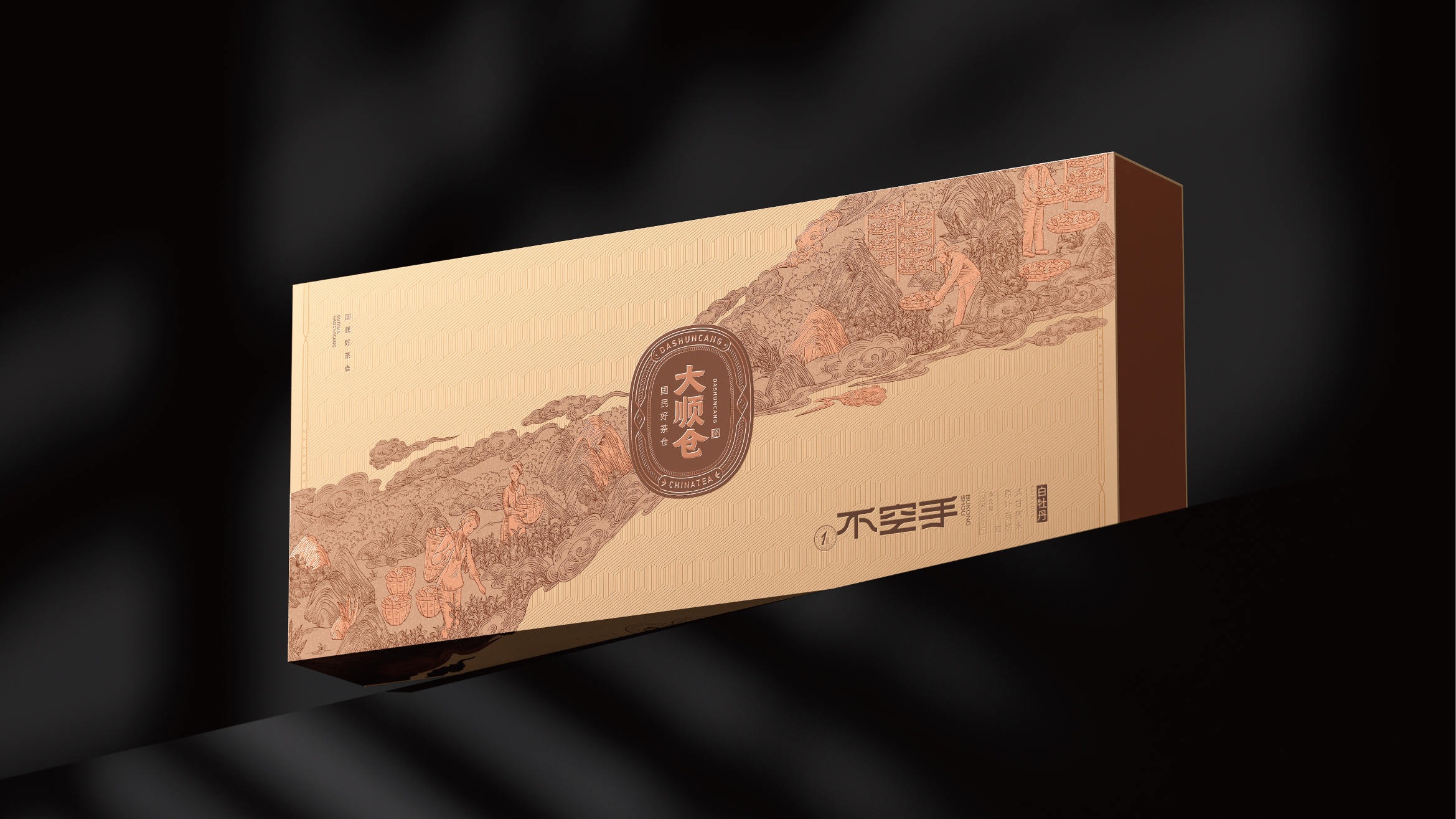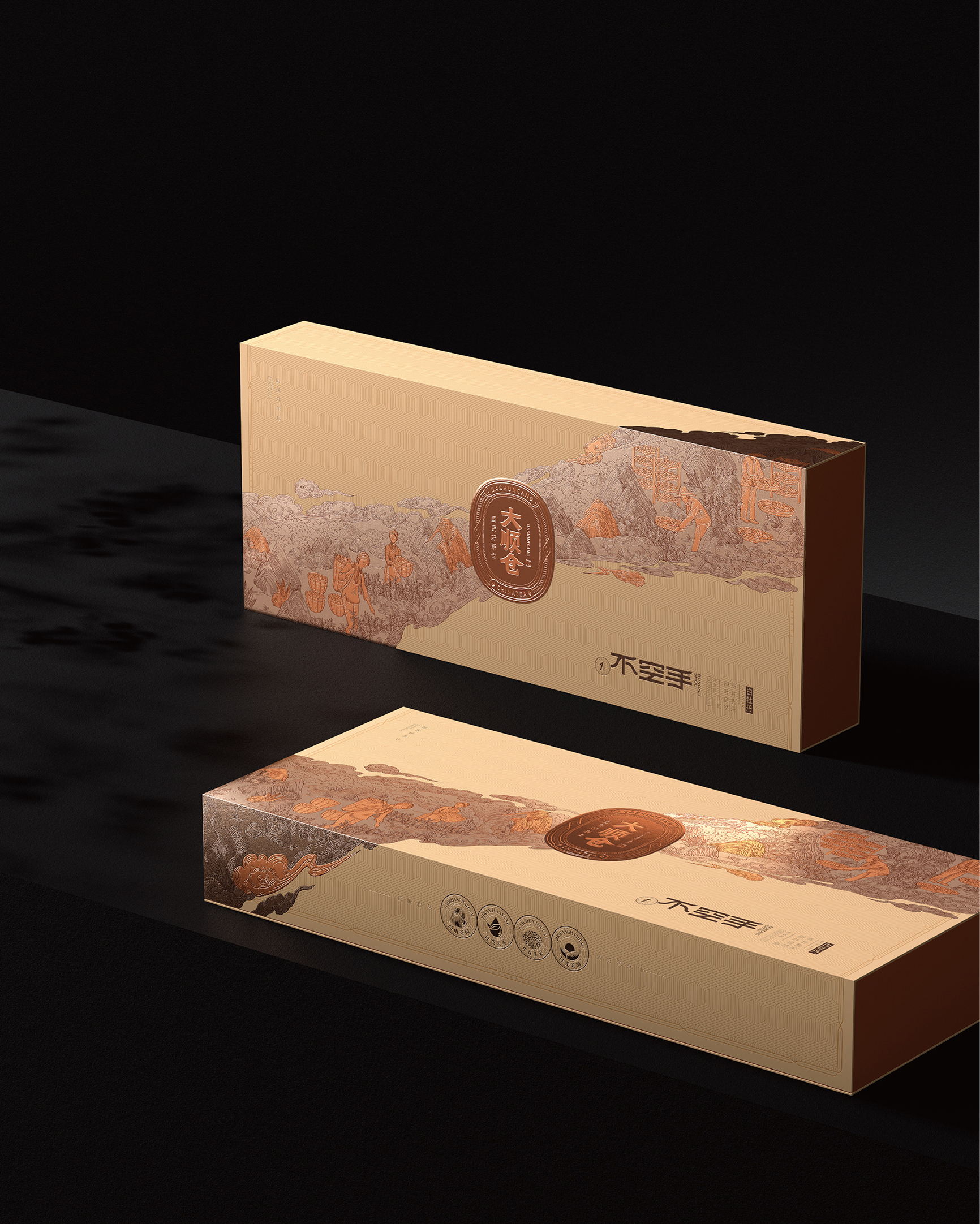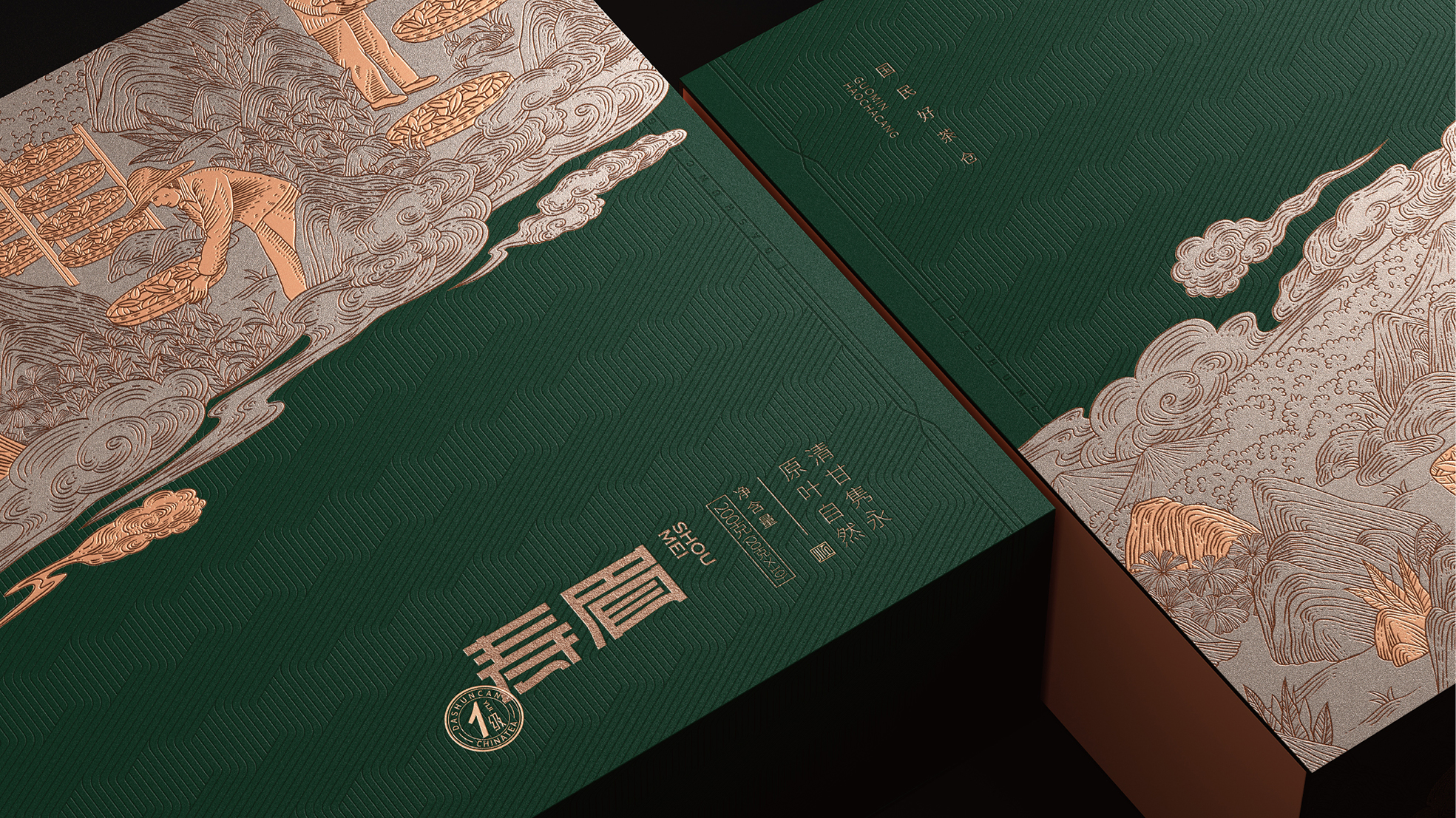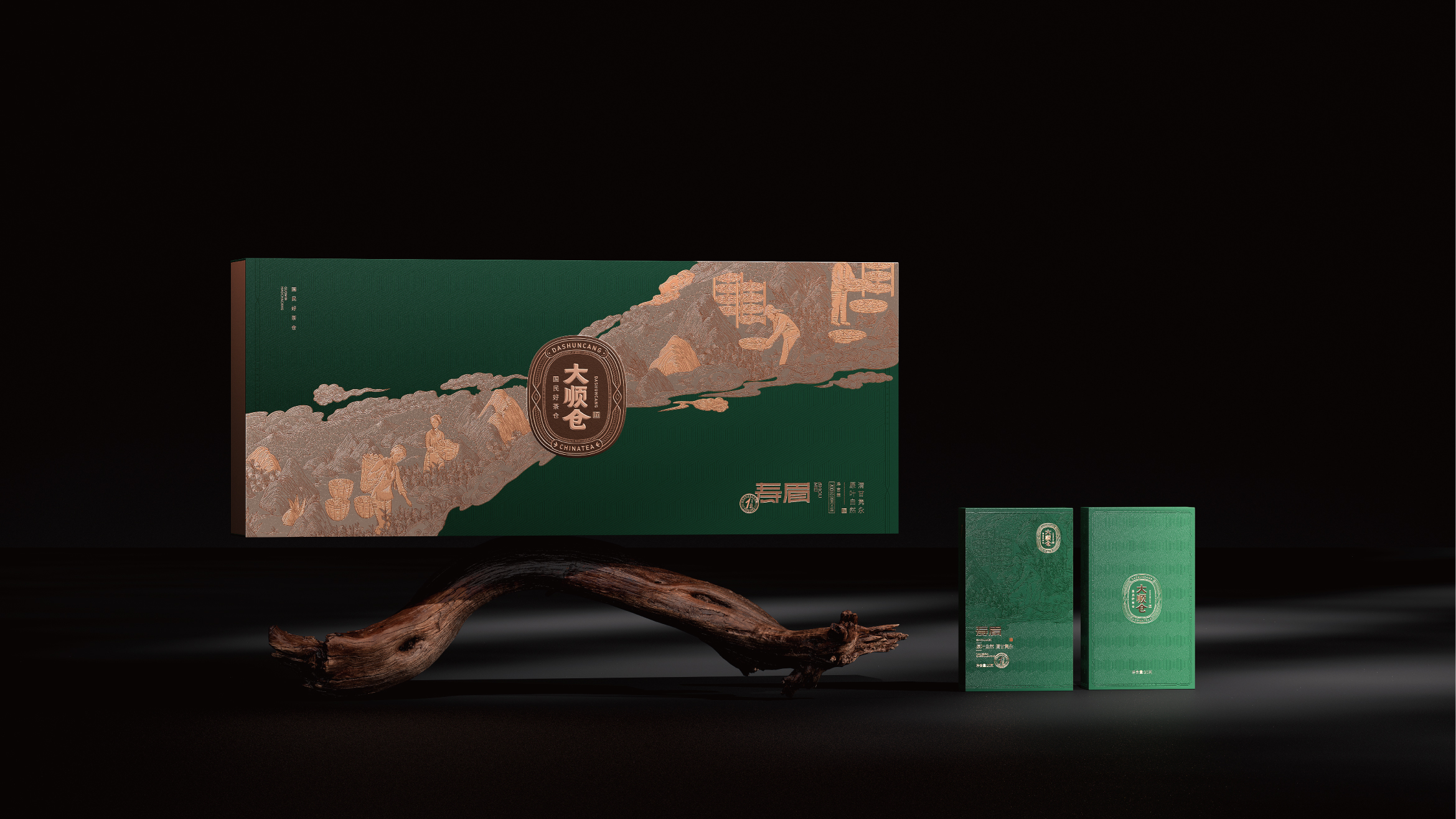 This exquisite packaging design for Dacshuncang x Guge blends traditional Chinese tea aesthetics with modern craftsmanship. Featuring embossed copper illustrations of tea pickers and flowing mountain landscapes on a deep emerald base, it evokes the serene beauty of Fuding’s tea culture. The meticulous details, textured patterns, and refined typography reflect the elegance of time-honored craftsmanship—positioning the brand as a guardian of heritage and sophistication in contemporary tea culture.
