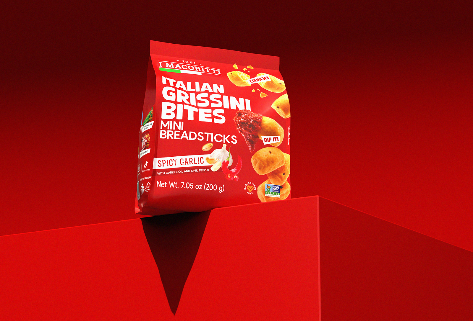 The new Macoritti packaging is a standout system: visually striking, highly functional, and culturally resonant. It communicates the product’s lightness, crunchiness, and Italian authenticity at first glance, while the “Italy in a bite” claim encapsulates the experience of enjoying a simple yet joyful snack. The packaging elevates the product into a playful, contemporary, and highly recognizable icon on US supermarket shelves, bridging Italian tradition with modern, international design sensibilities.