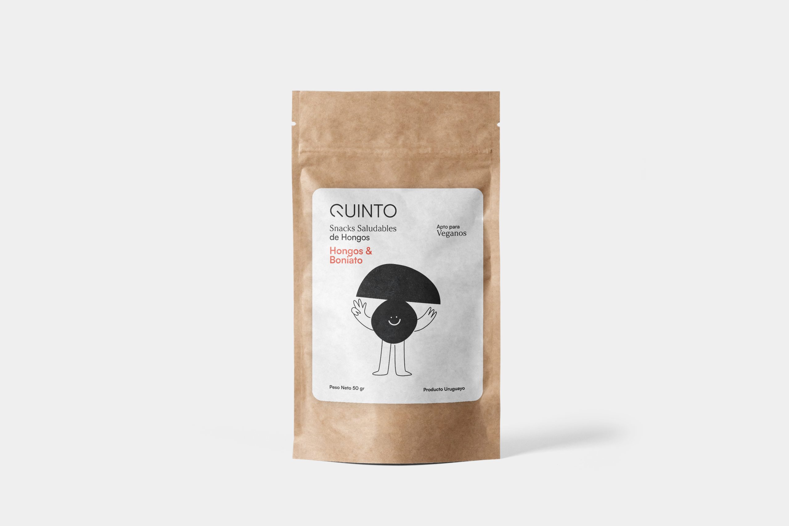 After obtaining the circular and irregular shapes from the prints made with the snacks, the next step was to fragment them in order to develop the characters featured on Quinto’s packaging. These organic forms served as inspiration to create visual characters that, while simple, bring personality and a playful narrative to the design.