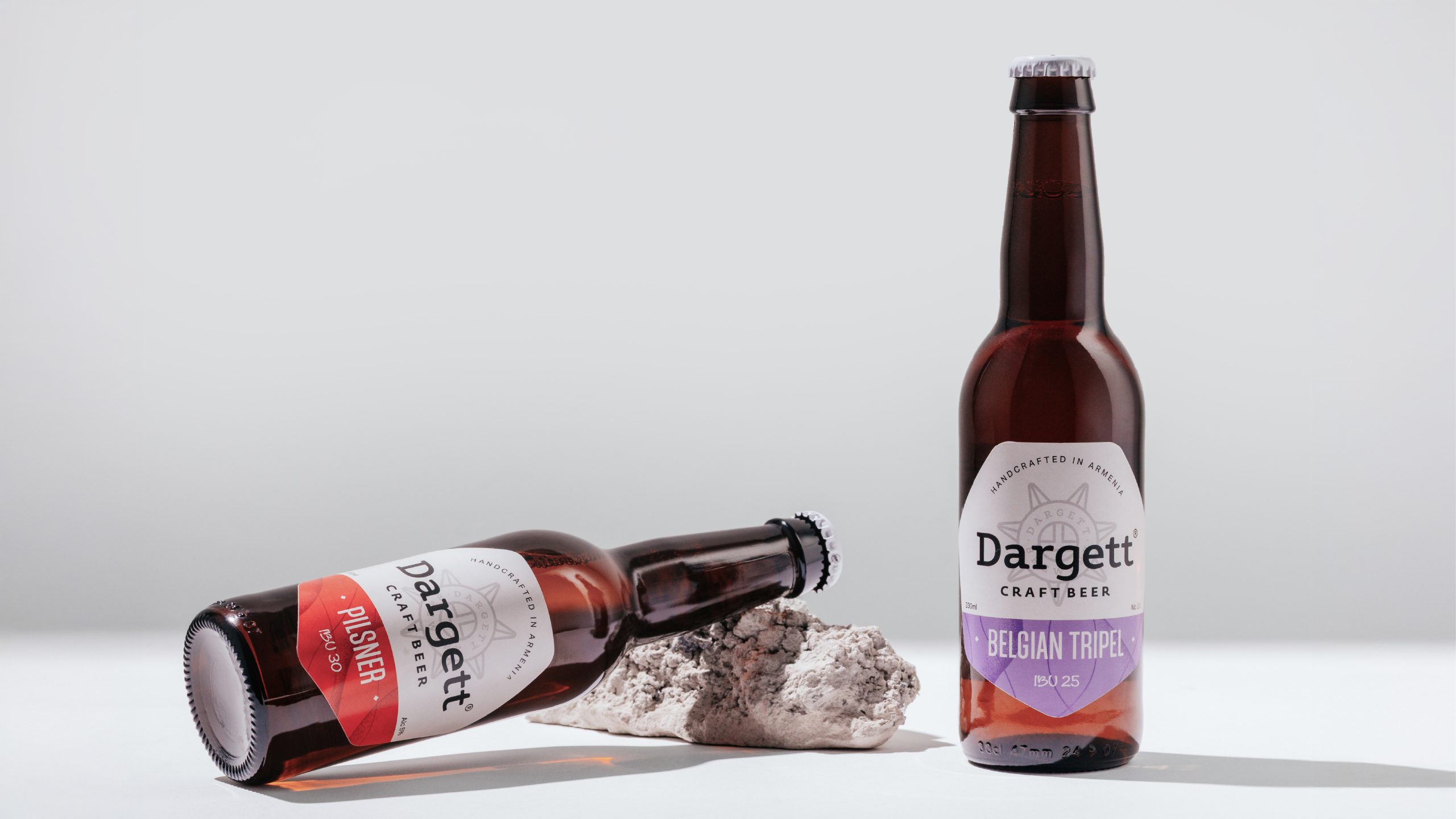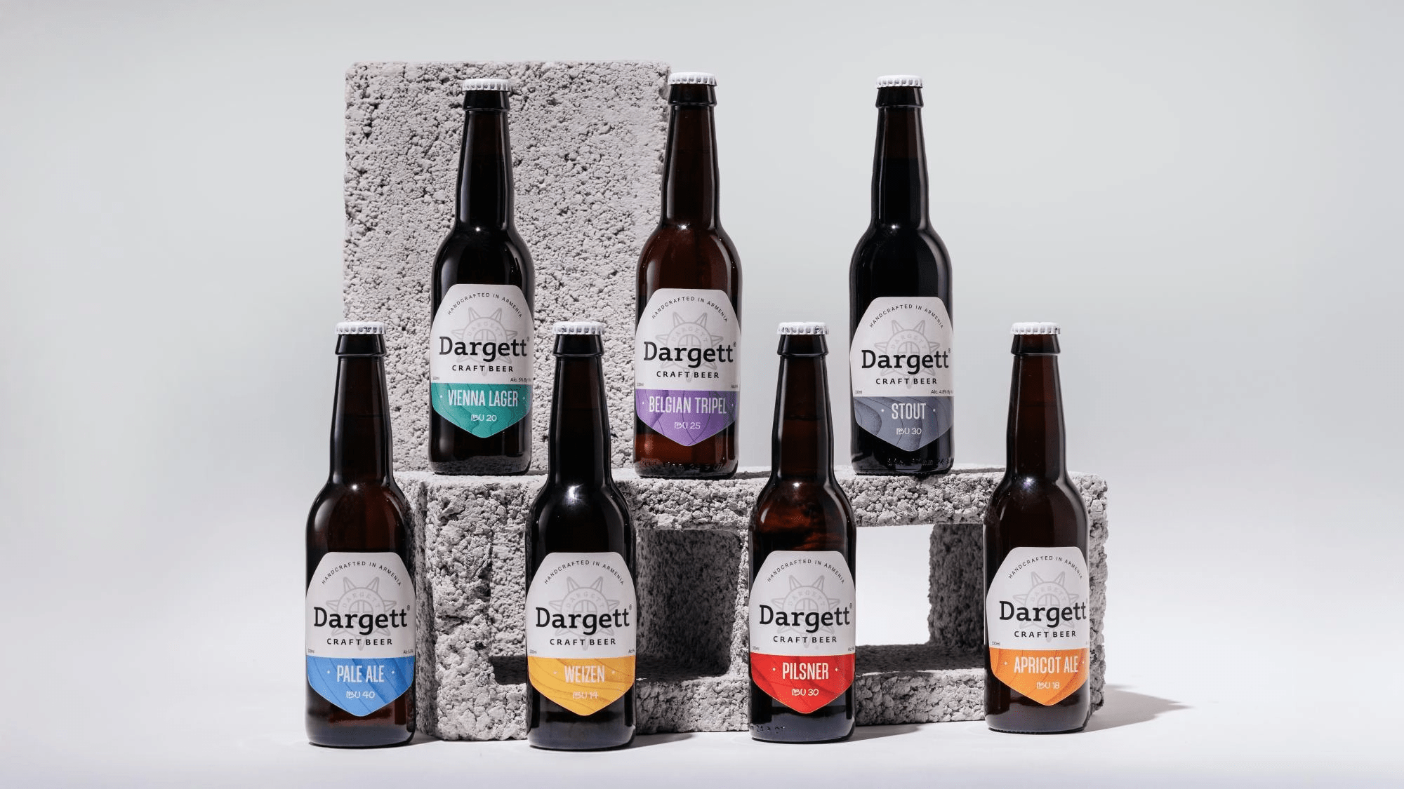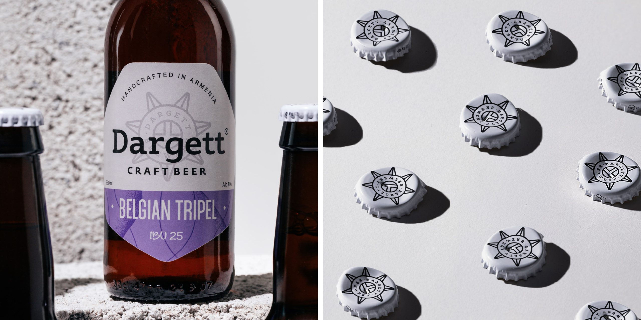 Seven distinct label designs were created for Dargett’s seven brews. The name Dargett comes from the Armenian words դառը գետ – “bitter river” – a concept inspired by the ancient Babylonian world map. We translated this story into a visual language of flowing forms and dynamic composition.
