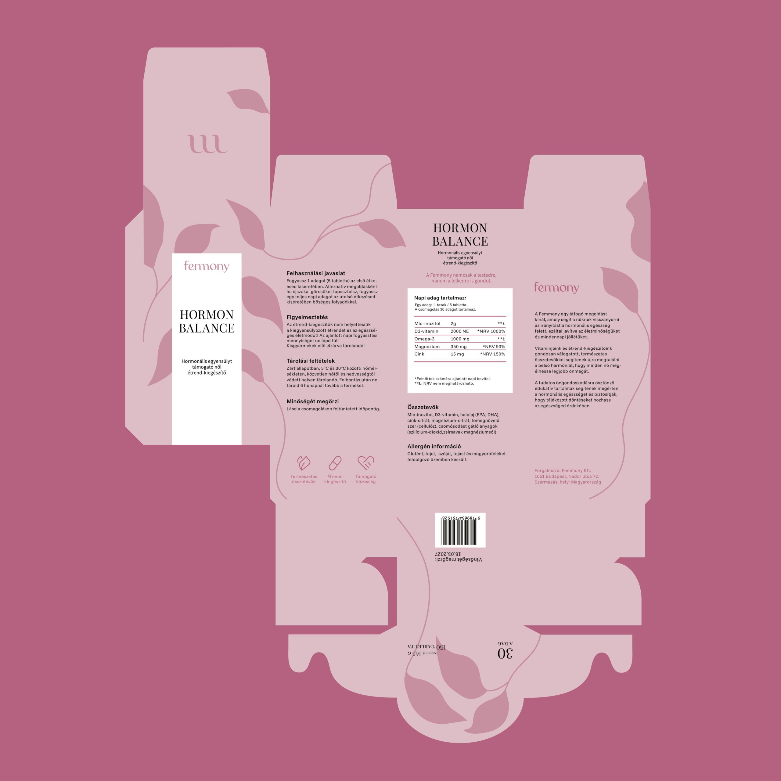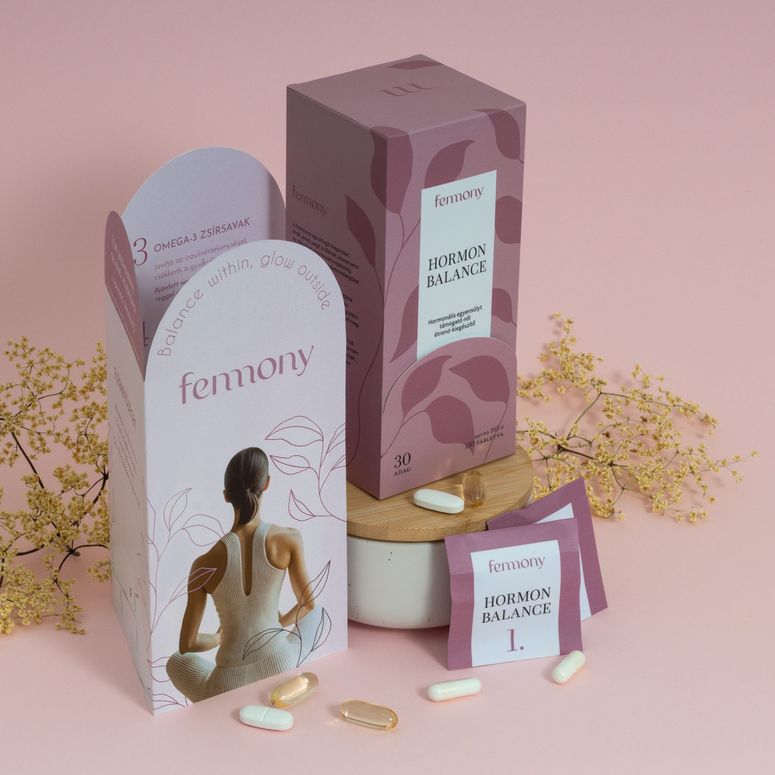 Femmony is a brand focused on hormone-balancing dietary supplements, known for its high quality, natural ingredients, and commitment to sustainability. When designing the packaging, the main focus was on practicality and ease of use, alongside a refined, minimalist design.