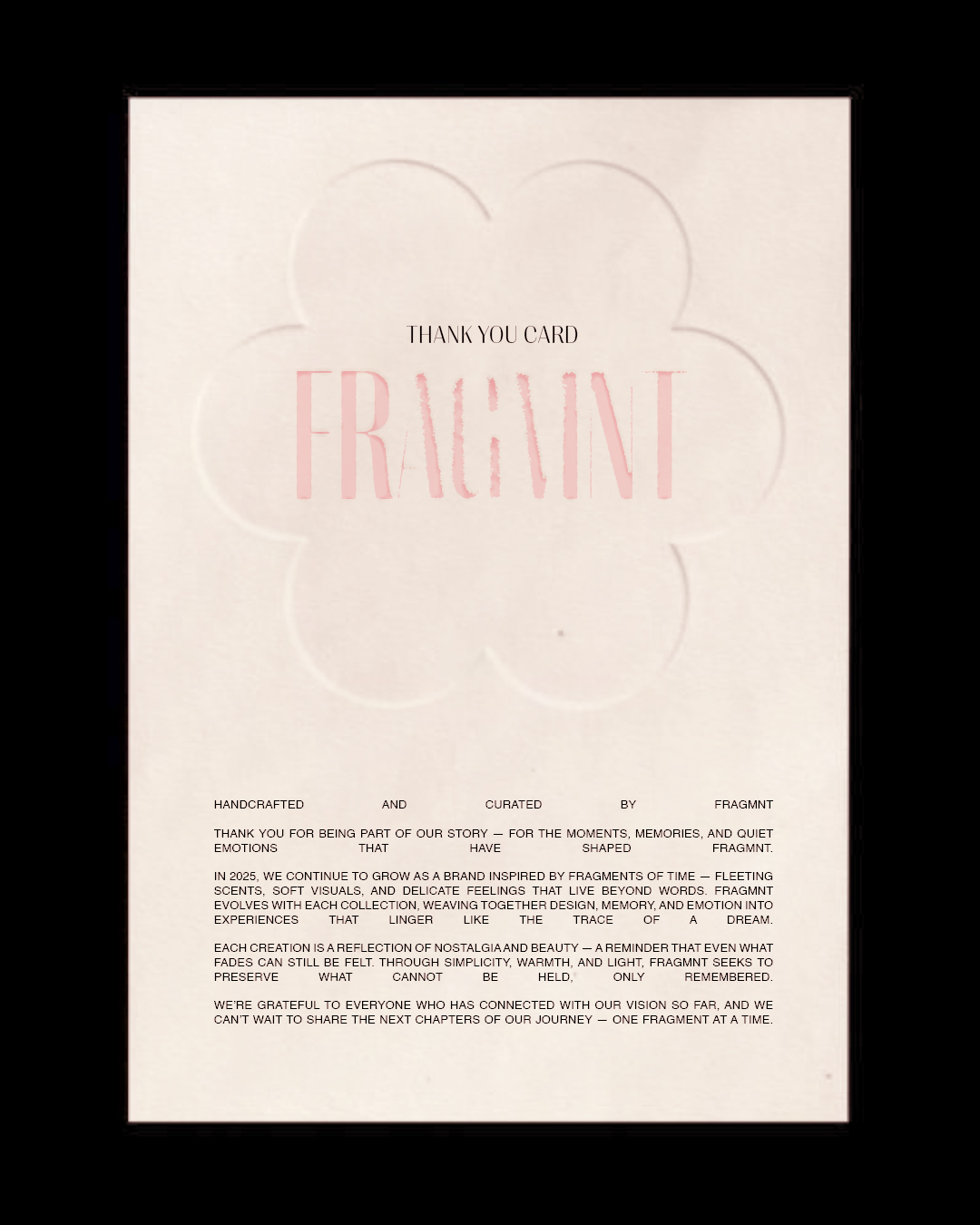 FRAGMNT is a poetic brand shaped by memory, emotion, and the quiet beauty of what fades.