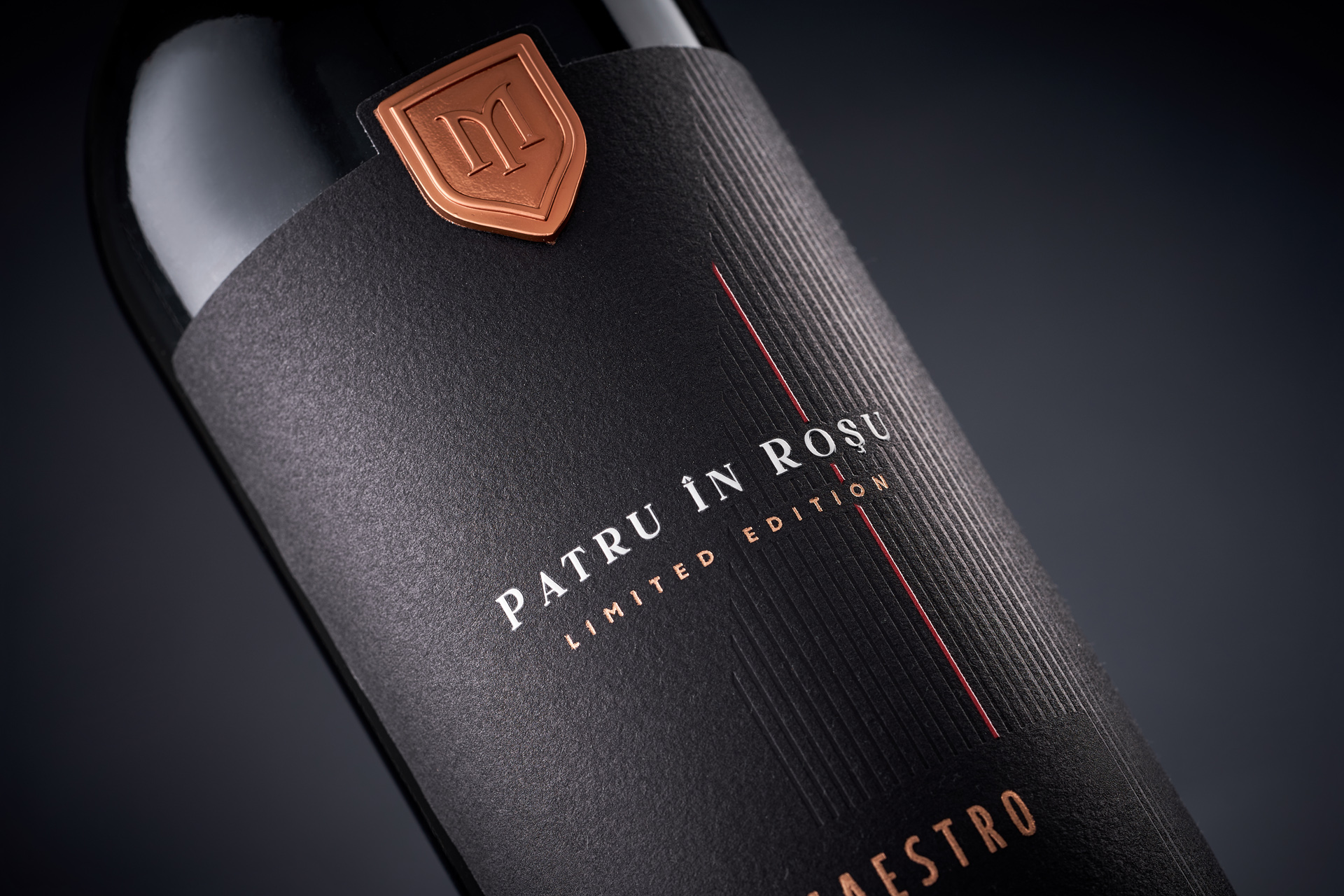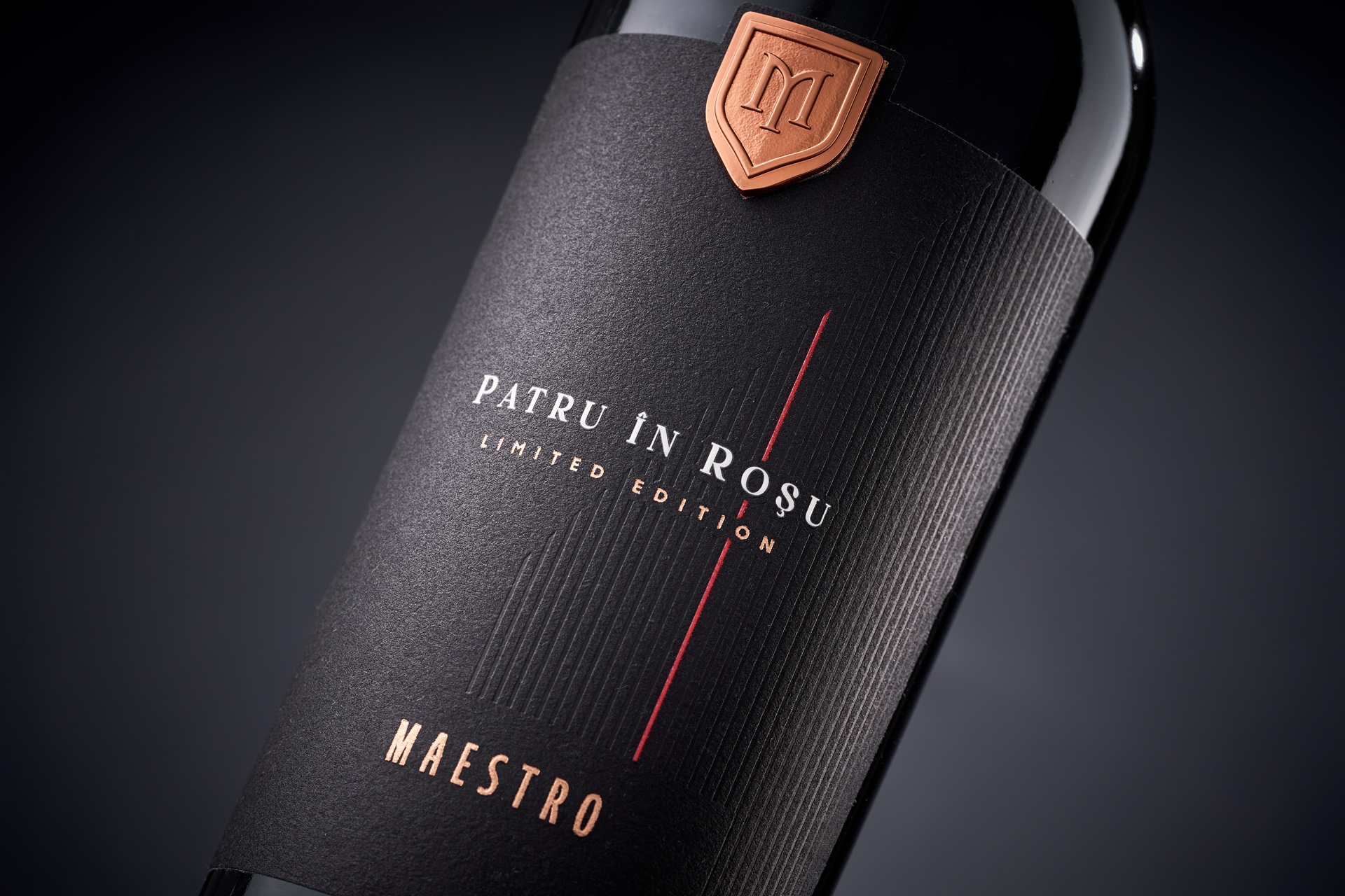 Patru în Roșu is a limited-edition red blend from Maestro, created from four grape varieties and designed to express complexity through disciplined minimalism. Our objective was to translate the wine’s layered character into a visual language defined not by embellishment, but by precision and intention.