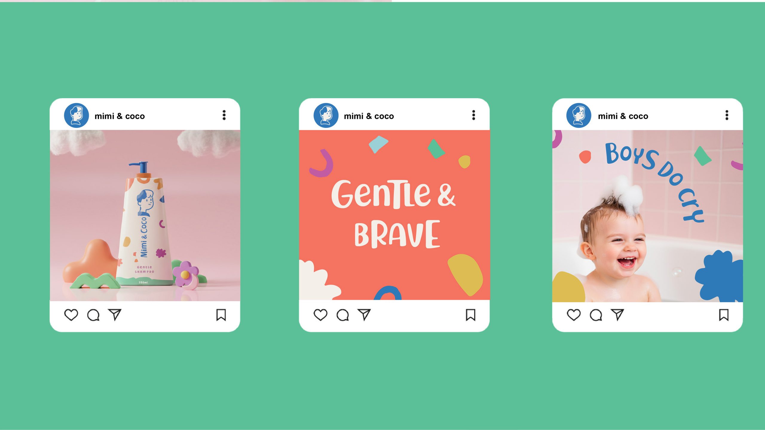 At its heart lies the belief that every child holds two sides: the brave and the gentle, the wild and the kind. Mimi & Coco celebrates both. The tone of voice and supporting visuals reflect this duality — lighthearted yet thoughtful, colourful yet calm, imaginative yet responsible.