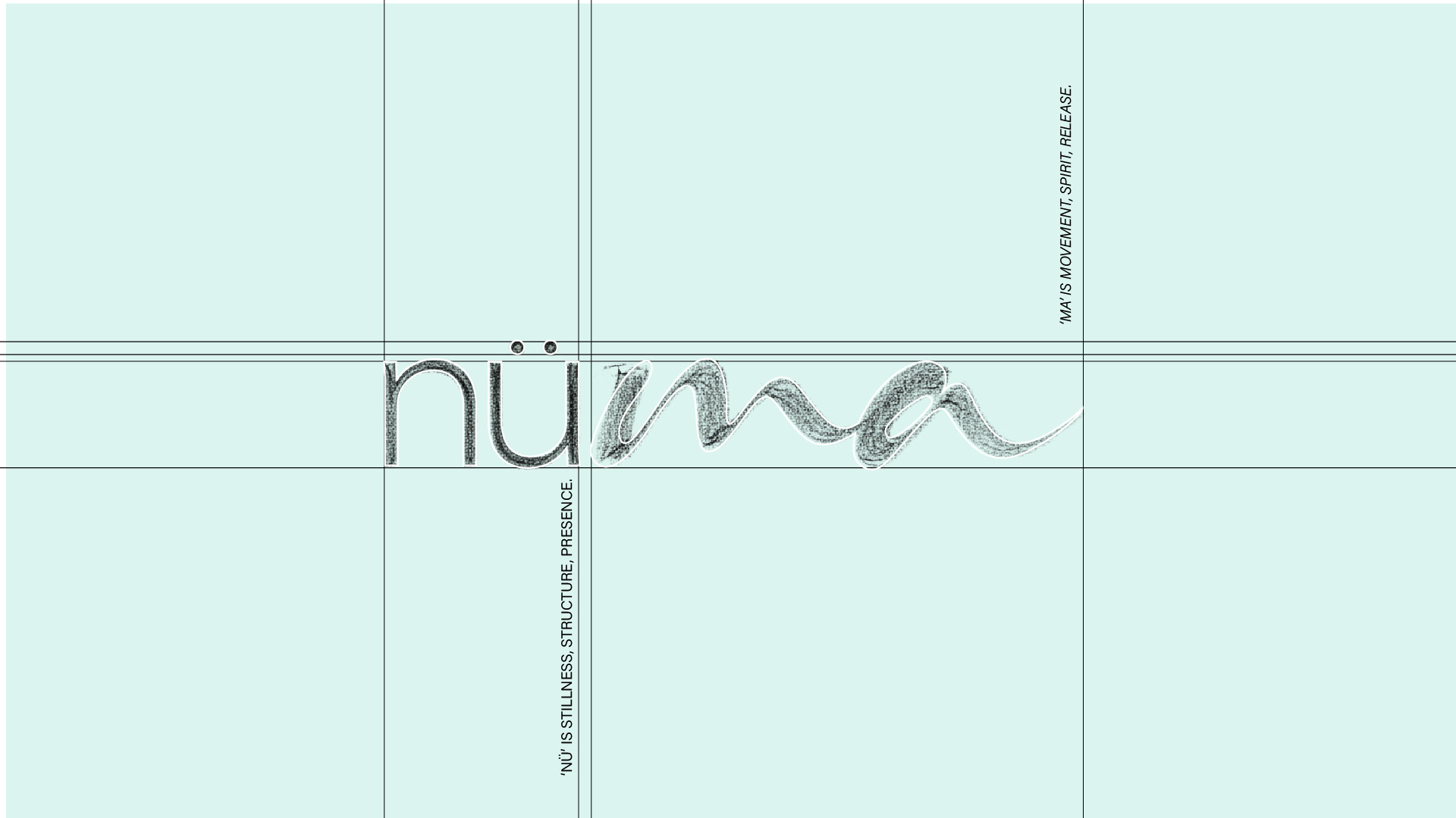NÜMA began as a conceptual brief exploring the emotional landscape of modern self-care. The challenge was to build a brand not from a product, but from a philosophy — the rhythm of a breath. The brief asked us to translate the duality of stillness and movement into a complete identity system. NÜ represents grounding, structure, and presence; MA represents motion, release, and flow. Together, they form NÜMA: the balance between pausing and opening, inhaling and exhaling, holding and releasing. Our approach was to create a visual world that could hold this duality with clarity, softness, and intention.