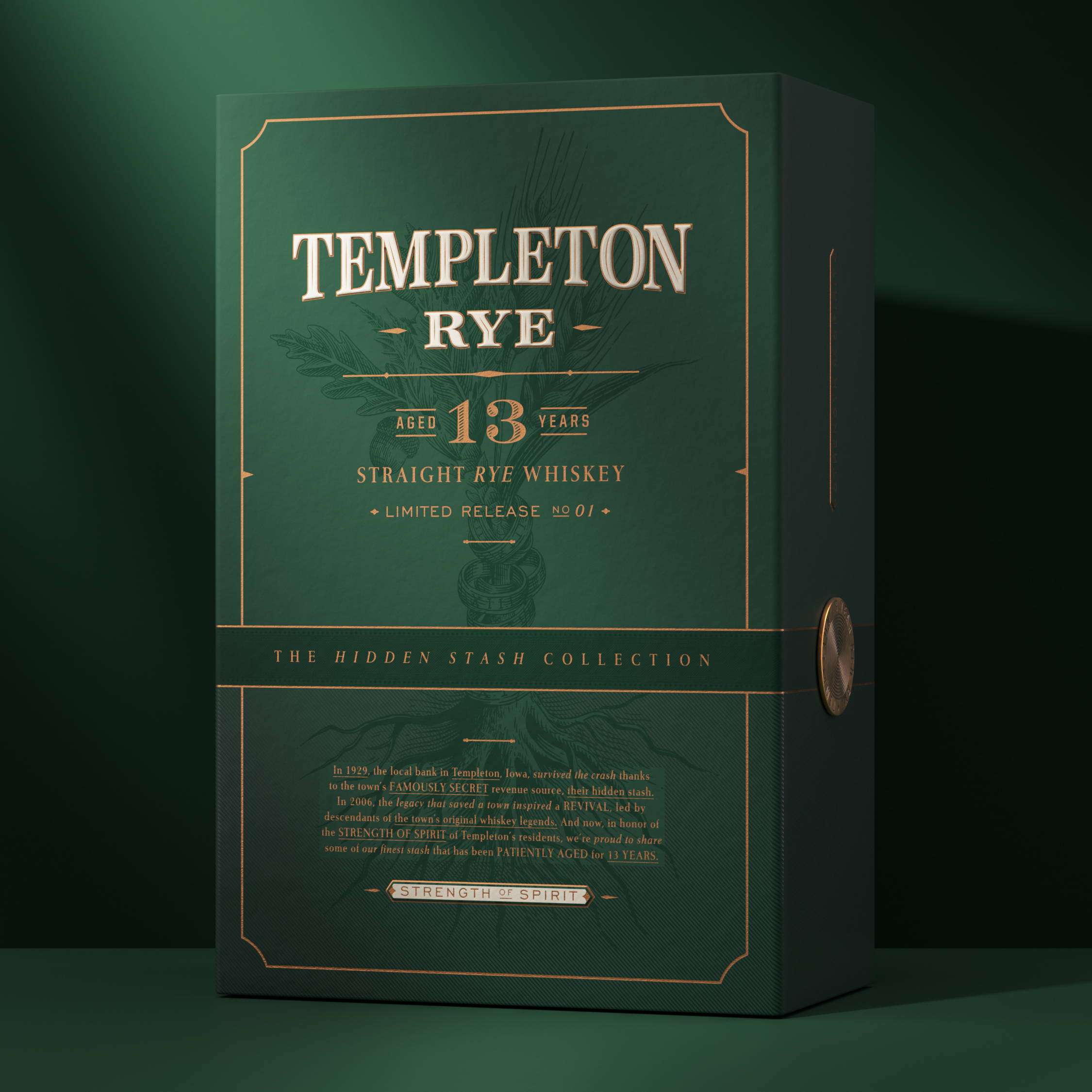 To bring this legacy to life, Thoroughbred was entrusted with creating the formula for the collection and designing the packaging that would represent the apex of Templeton Whiskey’s portfolio. The challenge was to create a format that positioned this release as the top end of the current portfolio, while giving a timeless expression that could evolve with future releases in The Hidden Stash Collection.