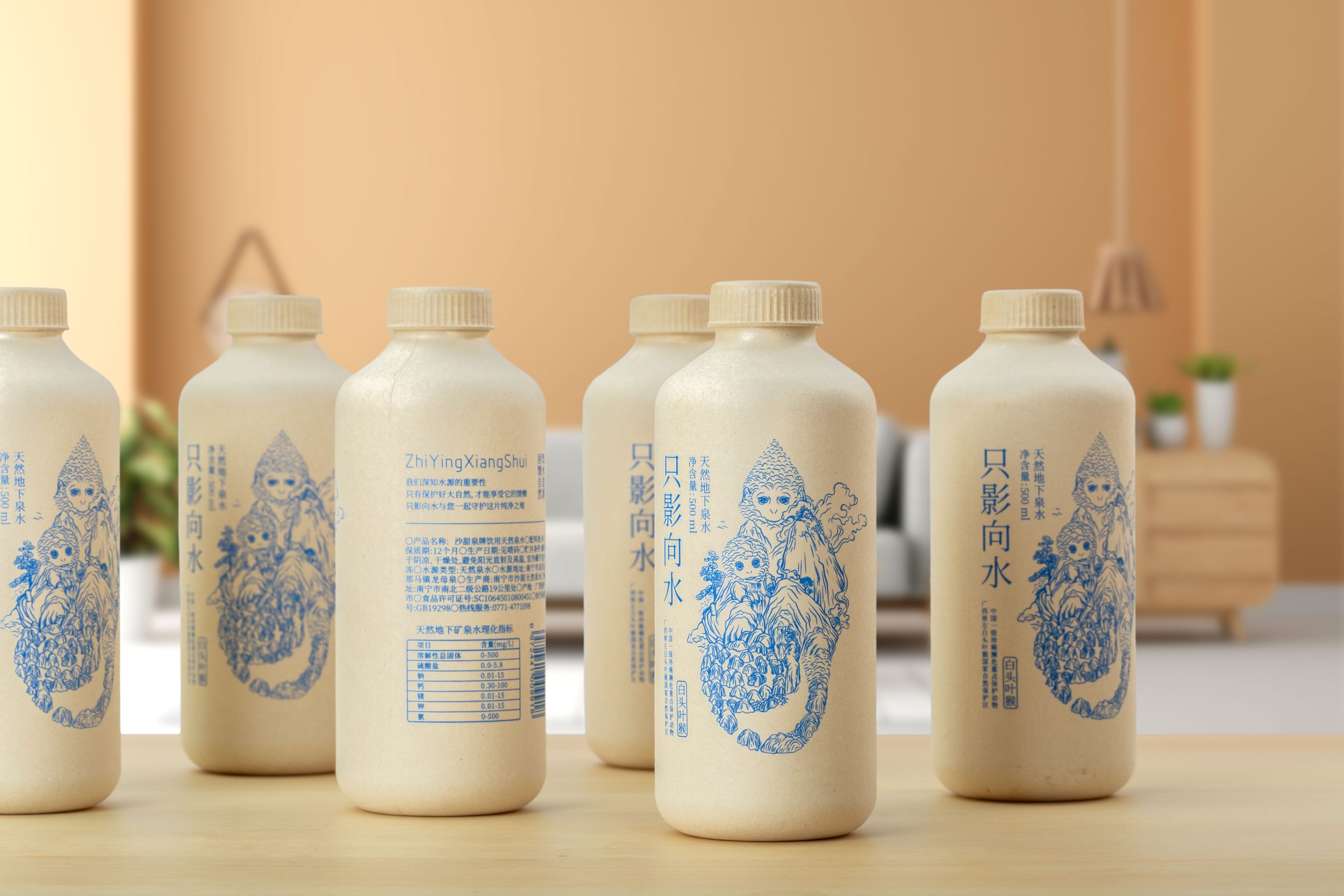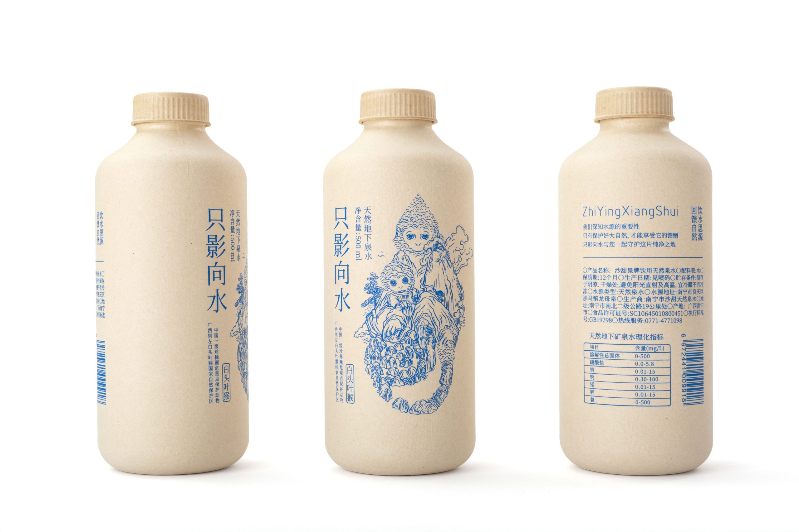 The packaging is crafted from an innovative paper–plastic composite, replacing conventional plastic bottles. The pulp is made from renewable bamboo and wood fibers; the printing uses plant-based eco inks; and the inner coating is biodegradable and toxin-free — ensuring full recyclability and compliance with international green standards. The layered mountain-shaped bottle structure emphasizes the preciousness of natural water resources while showcasing advanced 3D paper-forming techniques.
