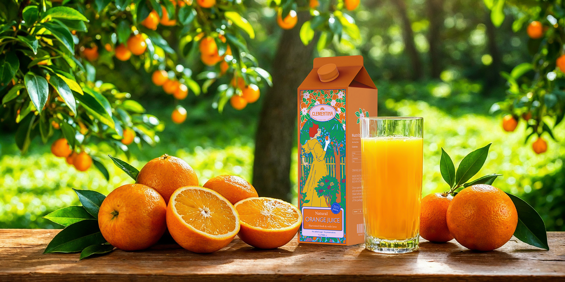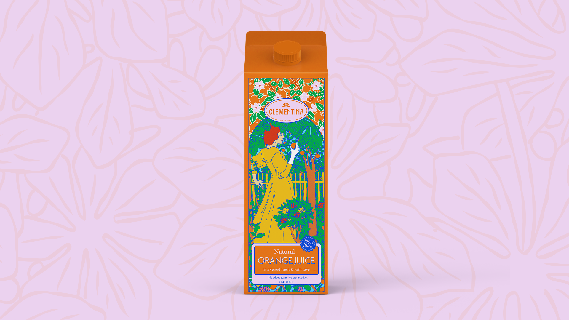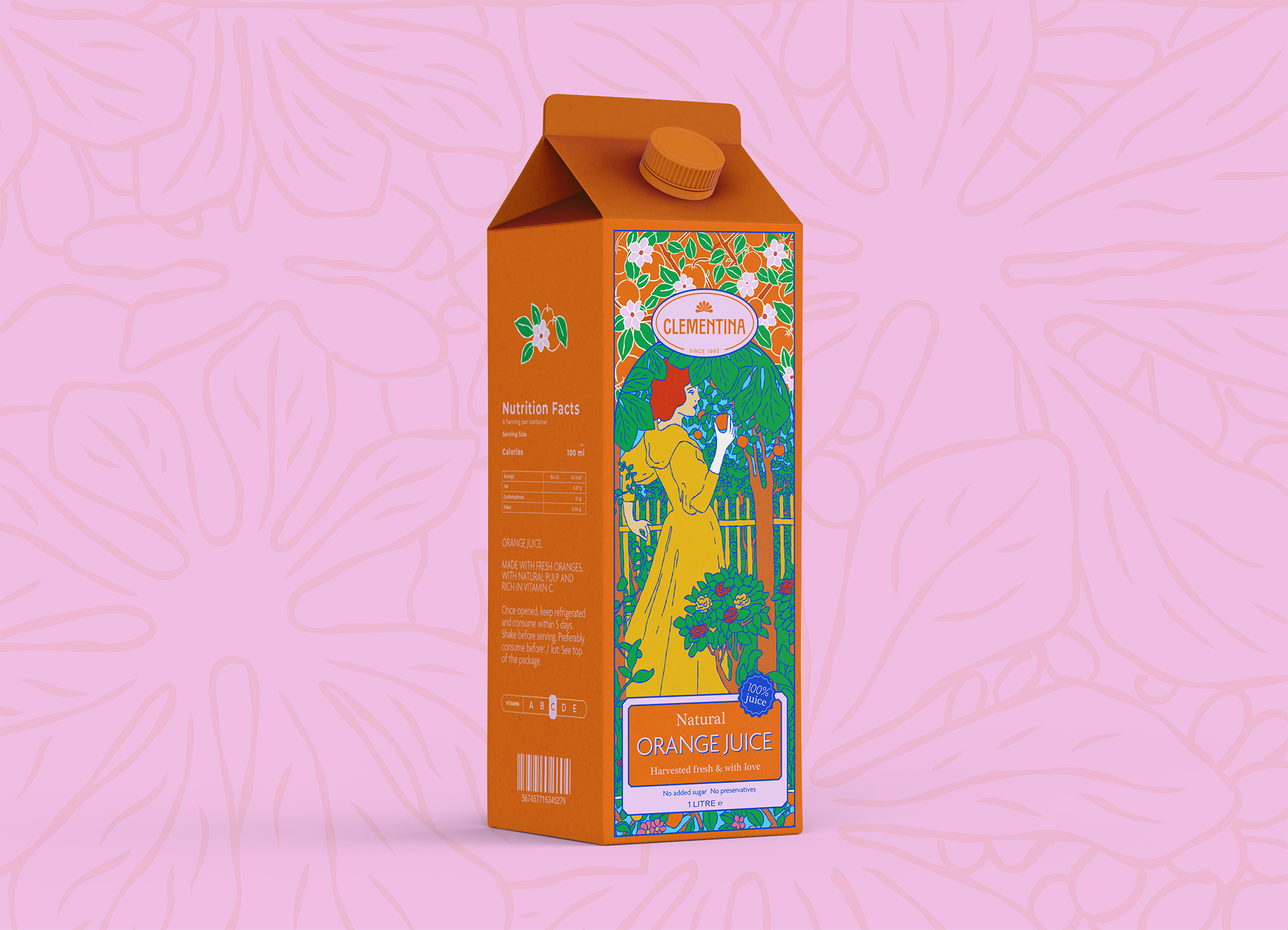 At the heart of Clementina lies the belief that packaging can be both functional and poetic. Drawing inspiration from the fluid forms and botanical elegance of European Art Nouveau, the design pays homage to the harmony between nature and everyday life. The illustrative elements — hand-drawn clementine motifs, delicate line work, and dynamic composition — bring a rich narrative layer to the pack, celebrating the fruit’s natural beauty and the sensory pleasure of pure juice.