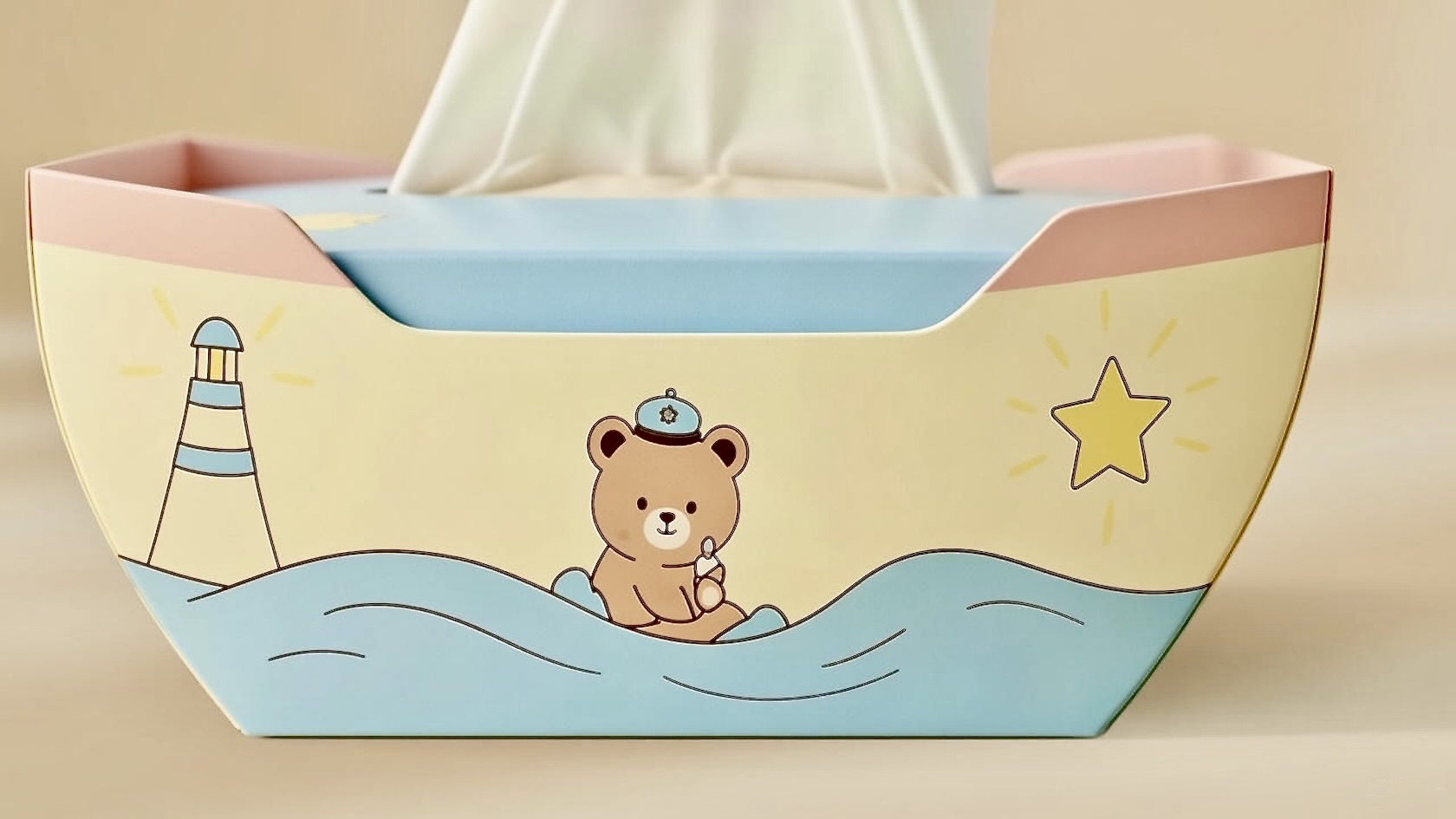 Instead of treating packaging as waste, HUG BOAT separates a permanent outer shell from the inner disposable box. The outer boat remains as a long-lasting design object, while the inner pack can be replaced with any standard-sized tissue box.