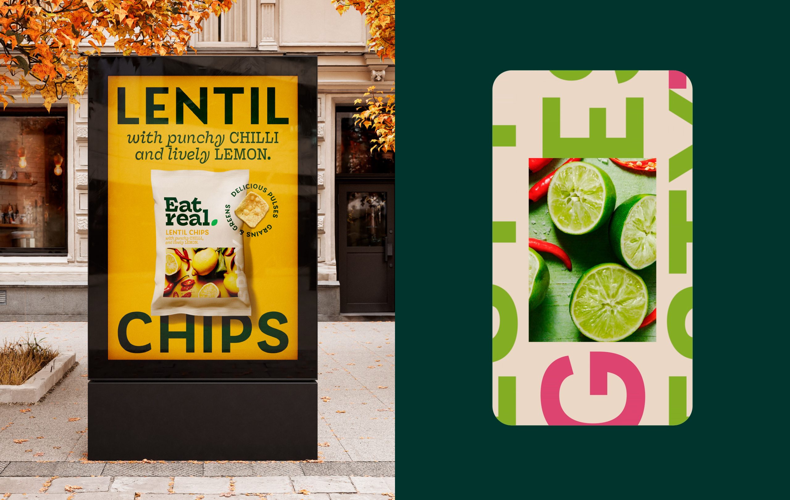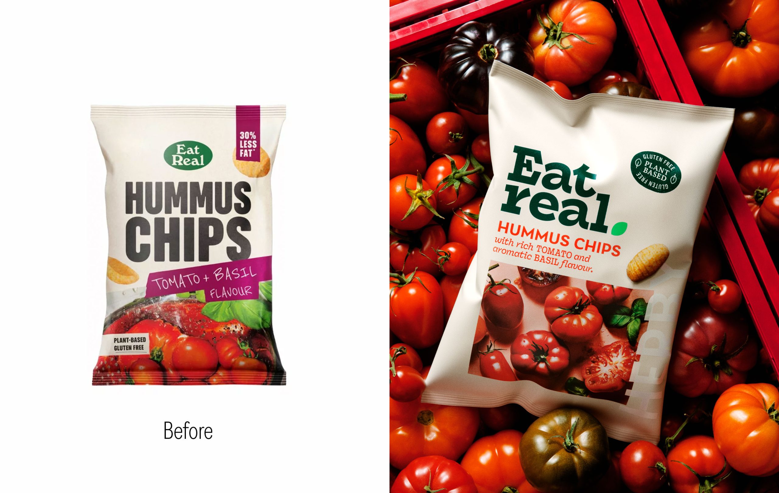 Our brand refresh spearheads the big shift in positioning – from health to taste. Inspired by the world of cookbooks, the new look puts flavour first, with vibrant colour, appetising photography, and a tasty tone of voice touching everything from packs to socials. Ever the challenger, Eat Real is boldly taking on the potato chip world with better-for-you snacks for every occasion.