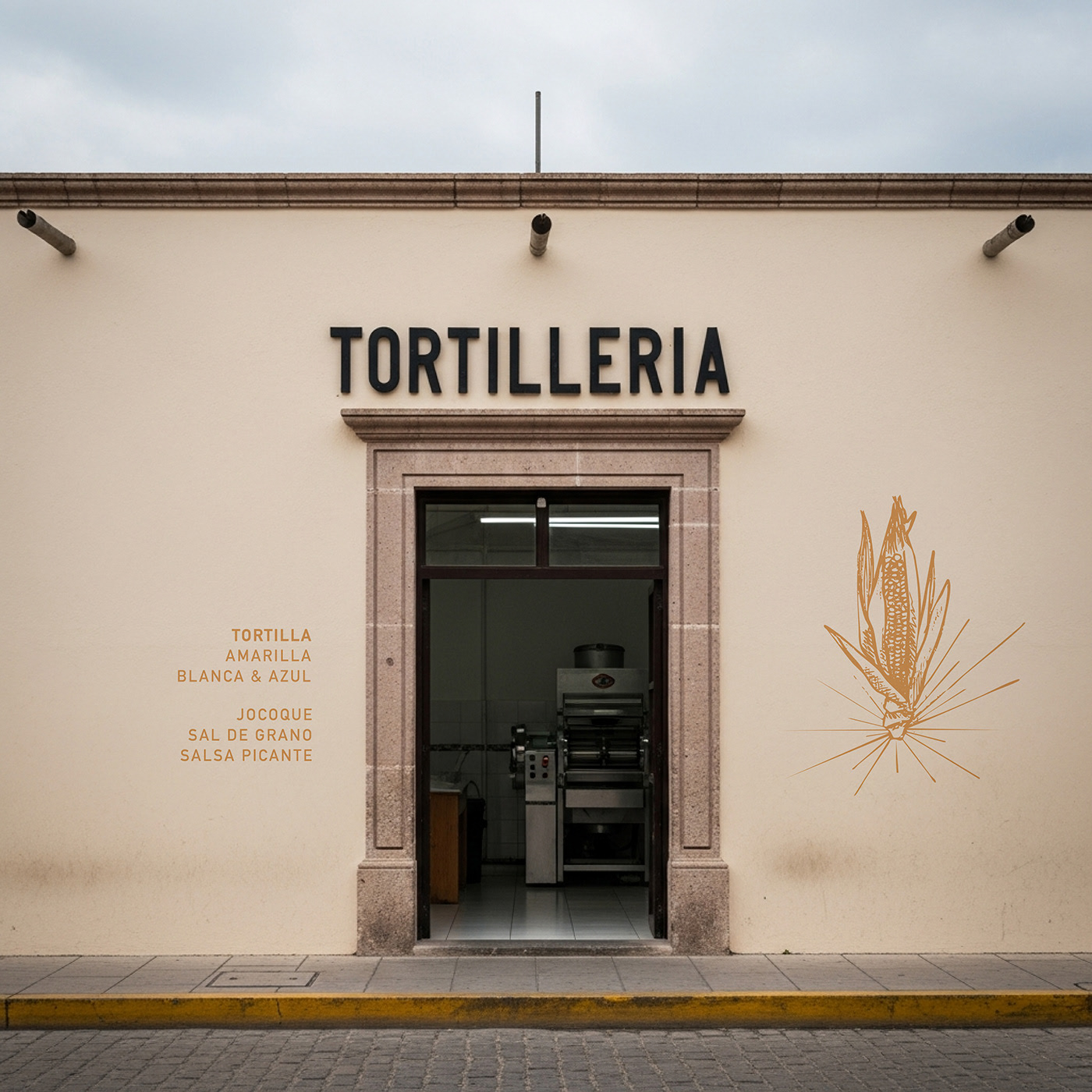 The color palette comes directly from the product and the land. The tones of jocoque, chiles, and corn—in both blue and yellow varieties—evoke the everyday, the handmade, and the authentic, keeping alive the essence of the traditional tortillería and its respect for origin and craft.