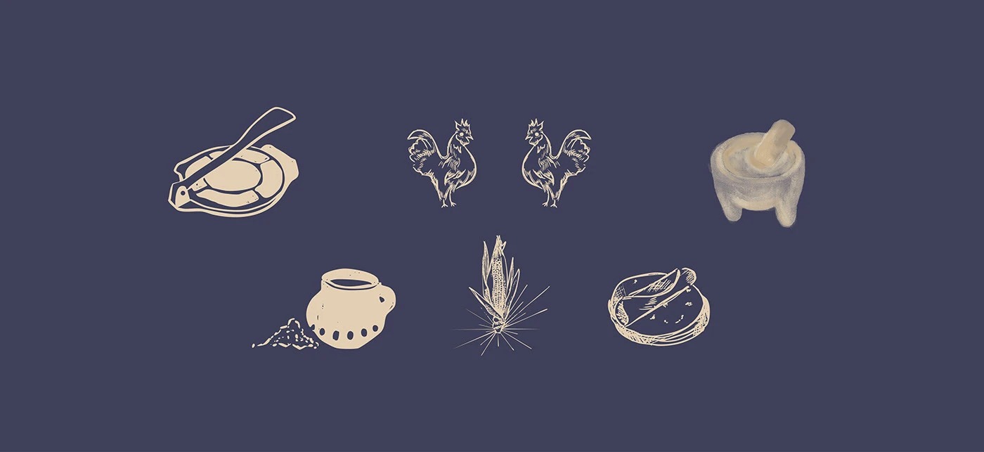 The graphic identity is supported by an illustrated system that represents the brand’s essential elements: tortillas, corn, jocoque, and Mexican cuisine. These graphic pieces build a visual language that is distinctive, cohesive, and easily recognizable.