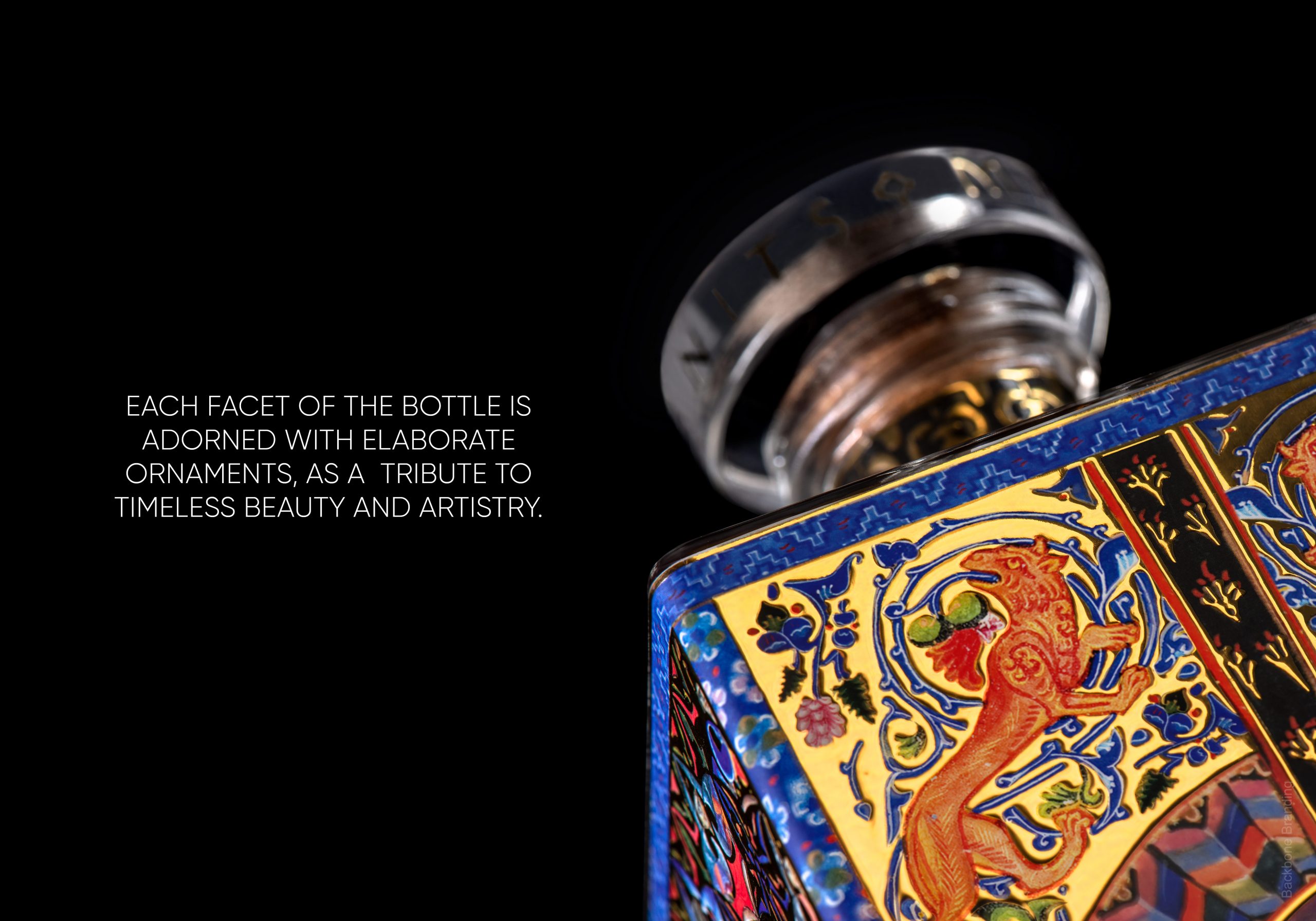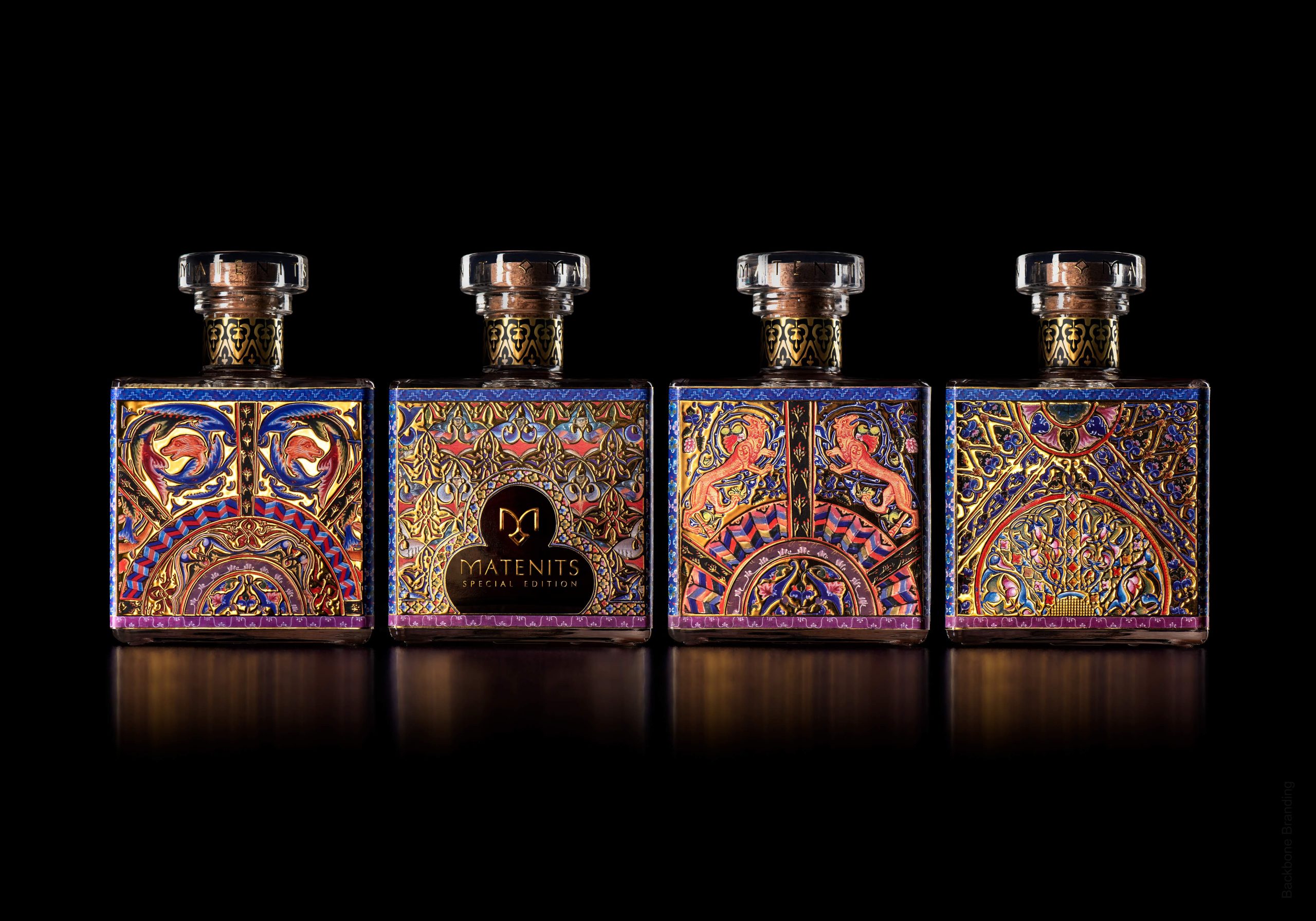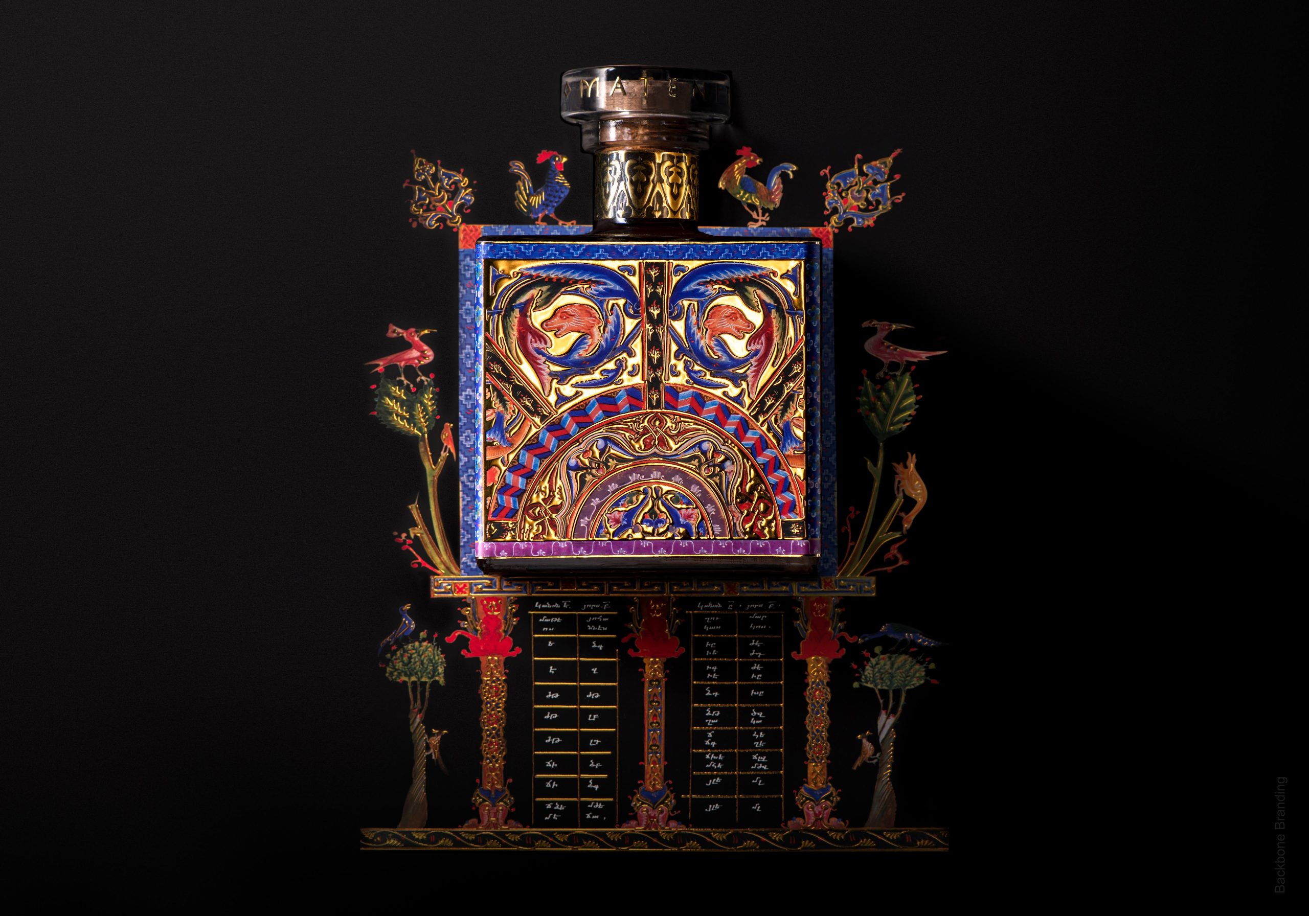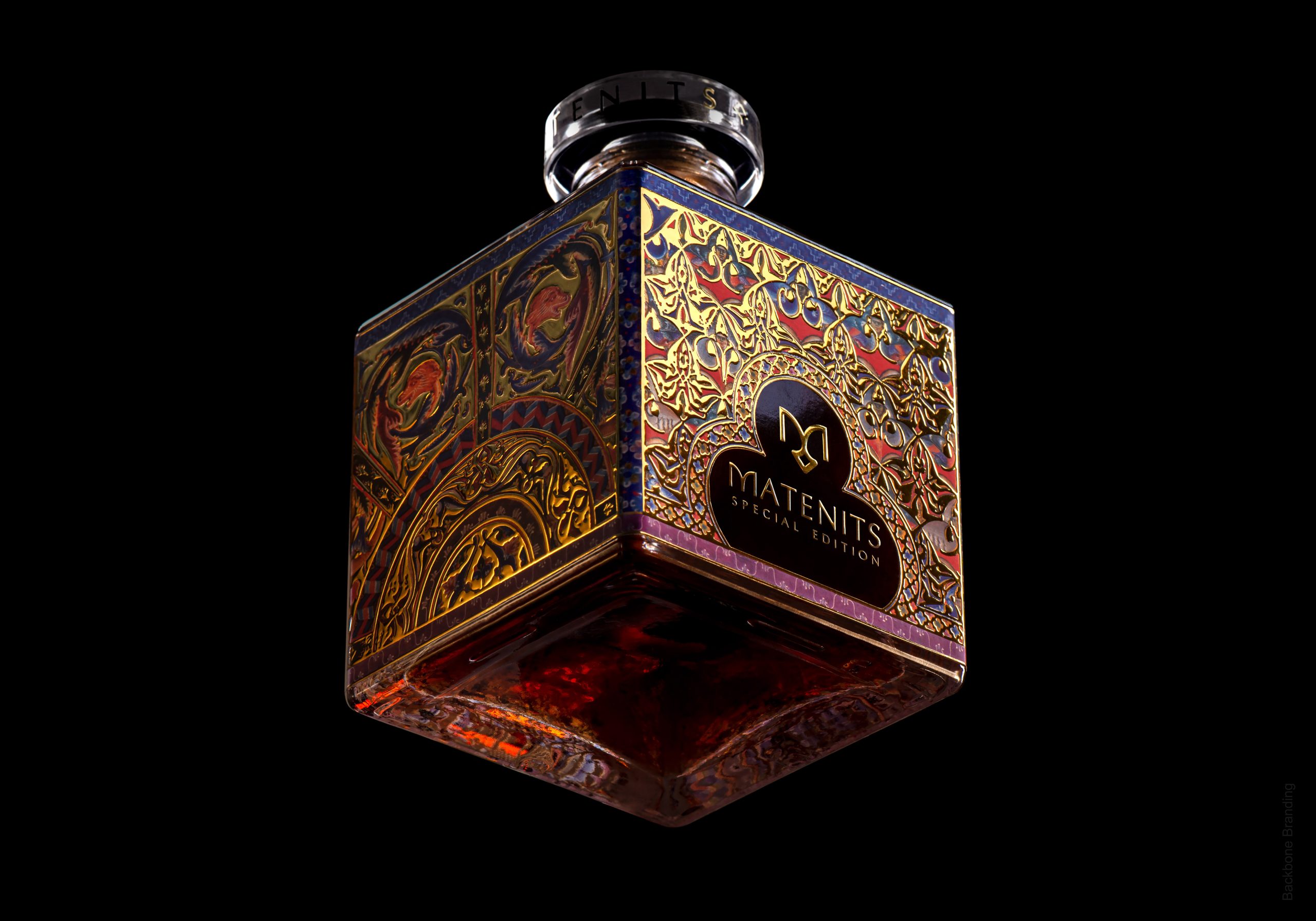 Matenits packaging transforms upon unveiling into a book-like display, adding a sense of ceremony and tradition, turning the act of consuming the elixir into a meaningful experience. Each facet of the bottle is carefully decorated with intricate ornaments, paying tribute to the exquisite beauty of Cilician miniatures. The name “Matenits” embodies the essence of the product, symbolizing a treasure taken from the pages of history.