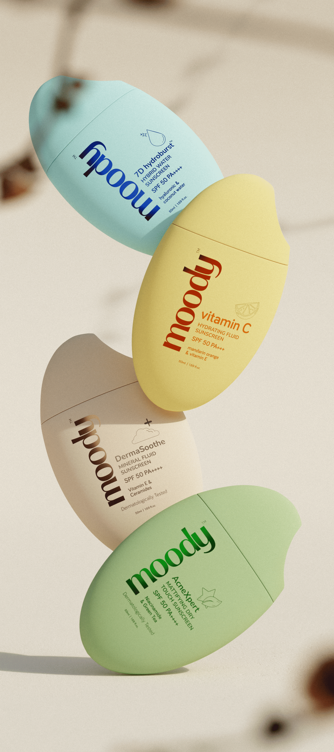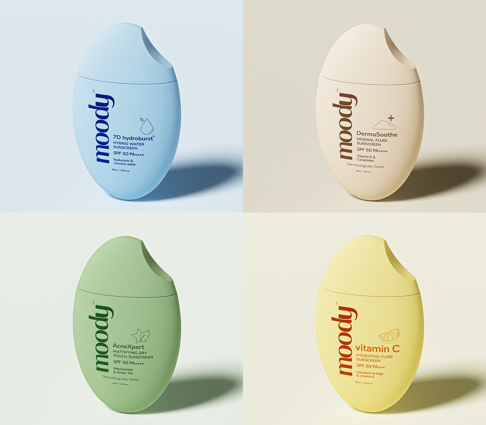 We crafted a complete 3D visual identity for Moody’s sunscreen collection a line built around gentle protection, skin-first formulas, and a design language rooted in calmness and clarity.