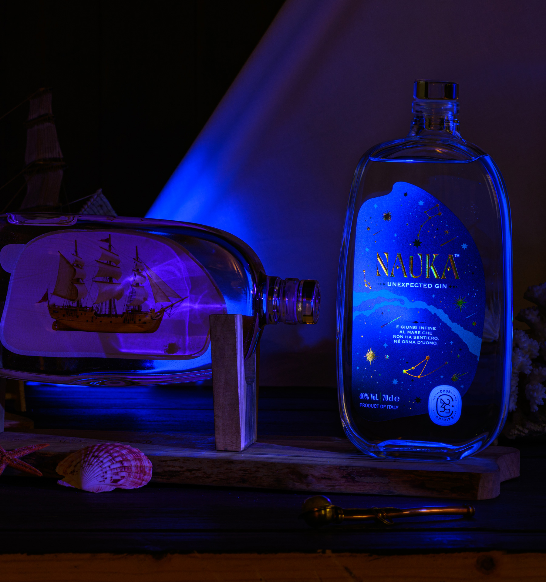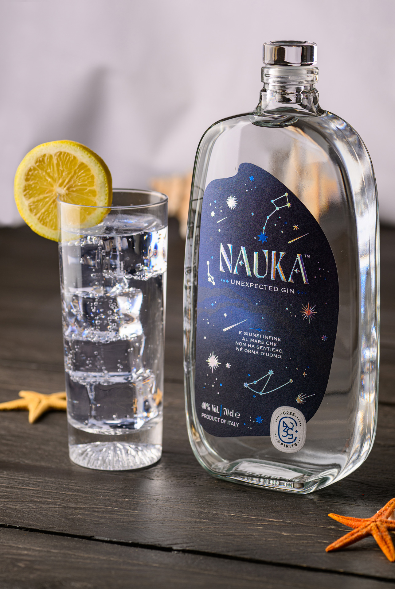 Nauka is a modern gin with an epic spirit, a tribute to exploration and adventure: “E giunsi infine al mare che non ha sentiero, né orma d’uomo. (And finally I reached the sea that has no path, nor footprints of man.)”