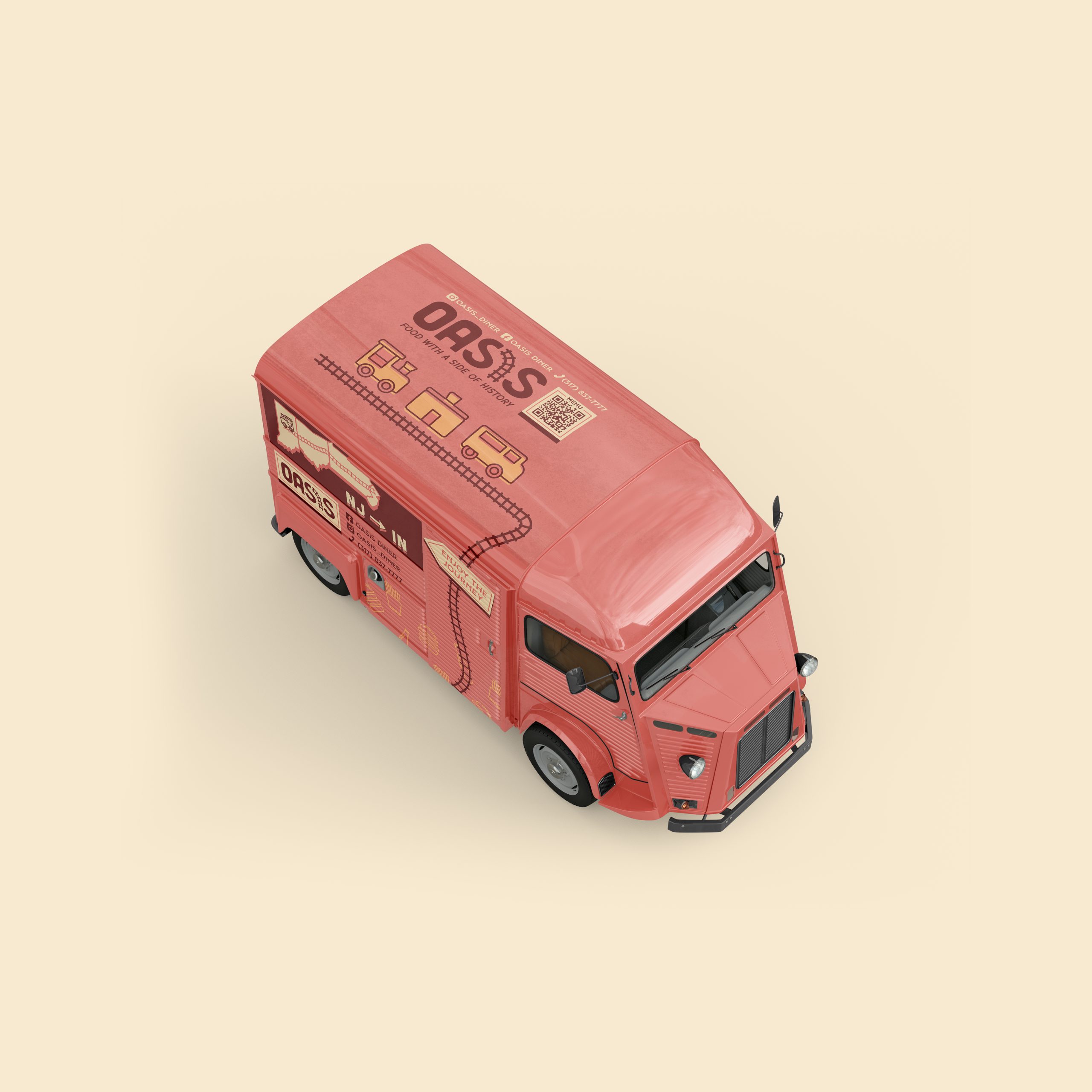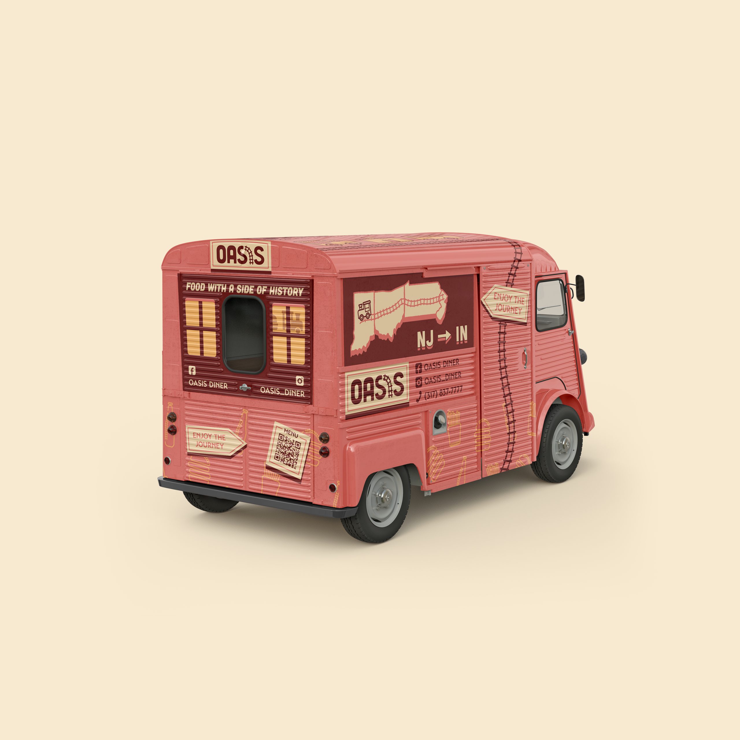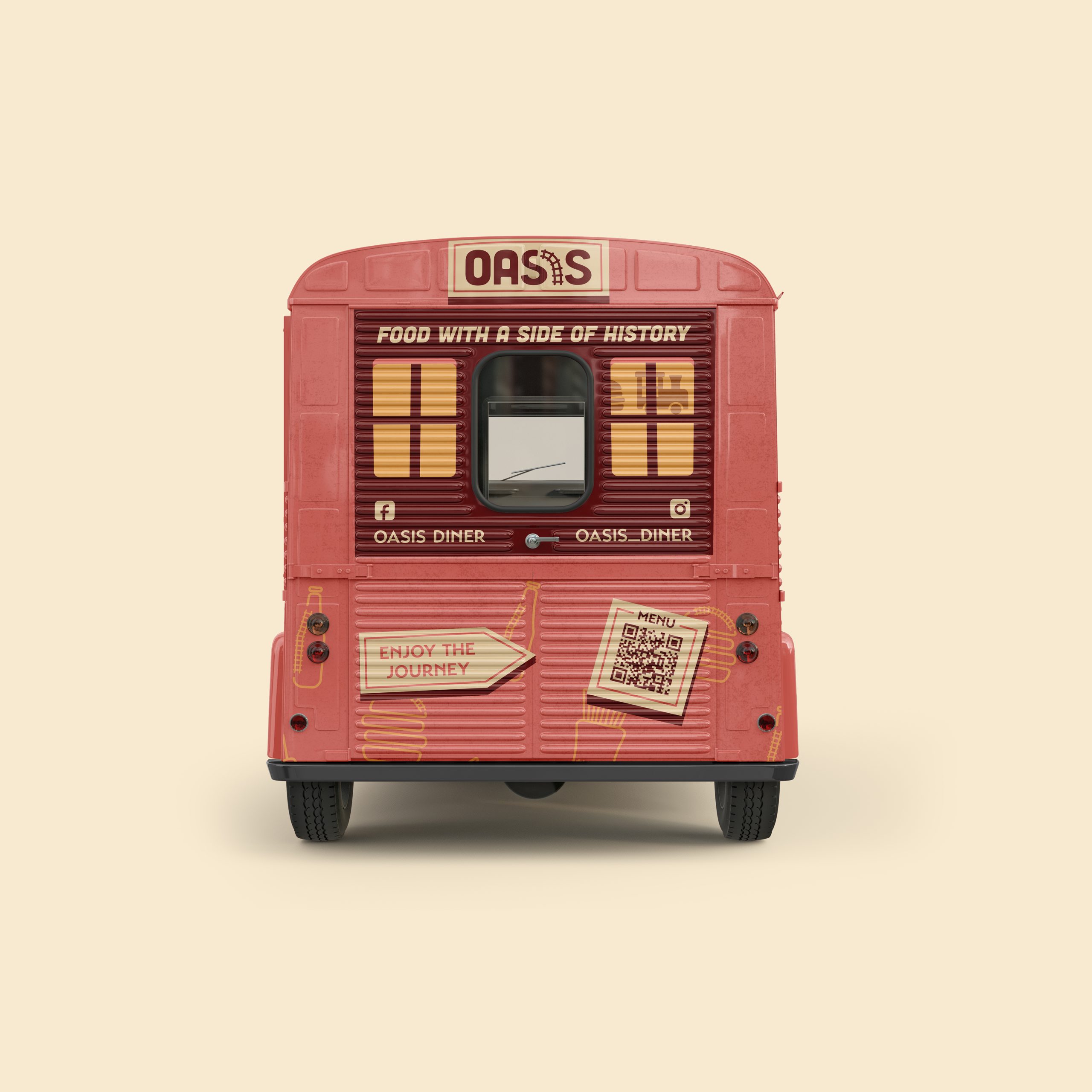 Across all deliverables, the Oasis food truck offers an immersive experience from start to finish. Within every detail is a piece of history, and it comes together to create cohesive brand materials. Customers become a part of the history of a diner that has been on the move since 1954.