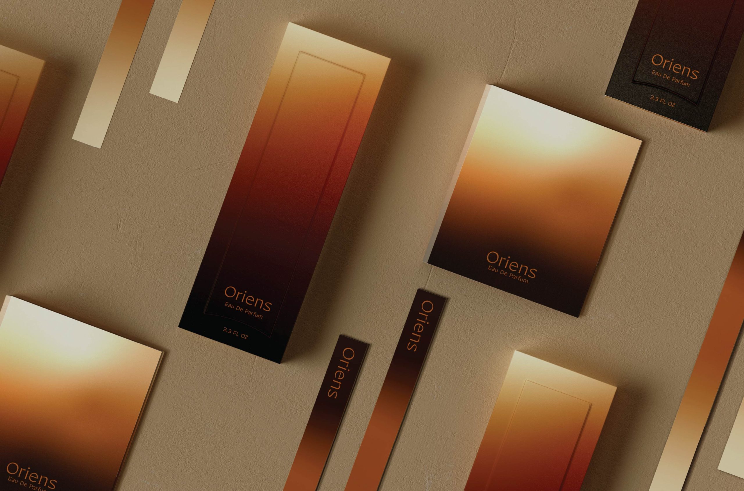 Oriens Perfume explores packaging as a dialogue between light, form, and emotion within a unisex fragrance identity. The name Oriens, derived from Latin and referring to the East and the rising sun, informs the design’s conceptual foundation, guiding the visual language toward the quiet moment of dawn.