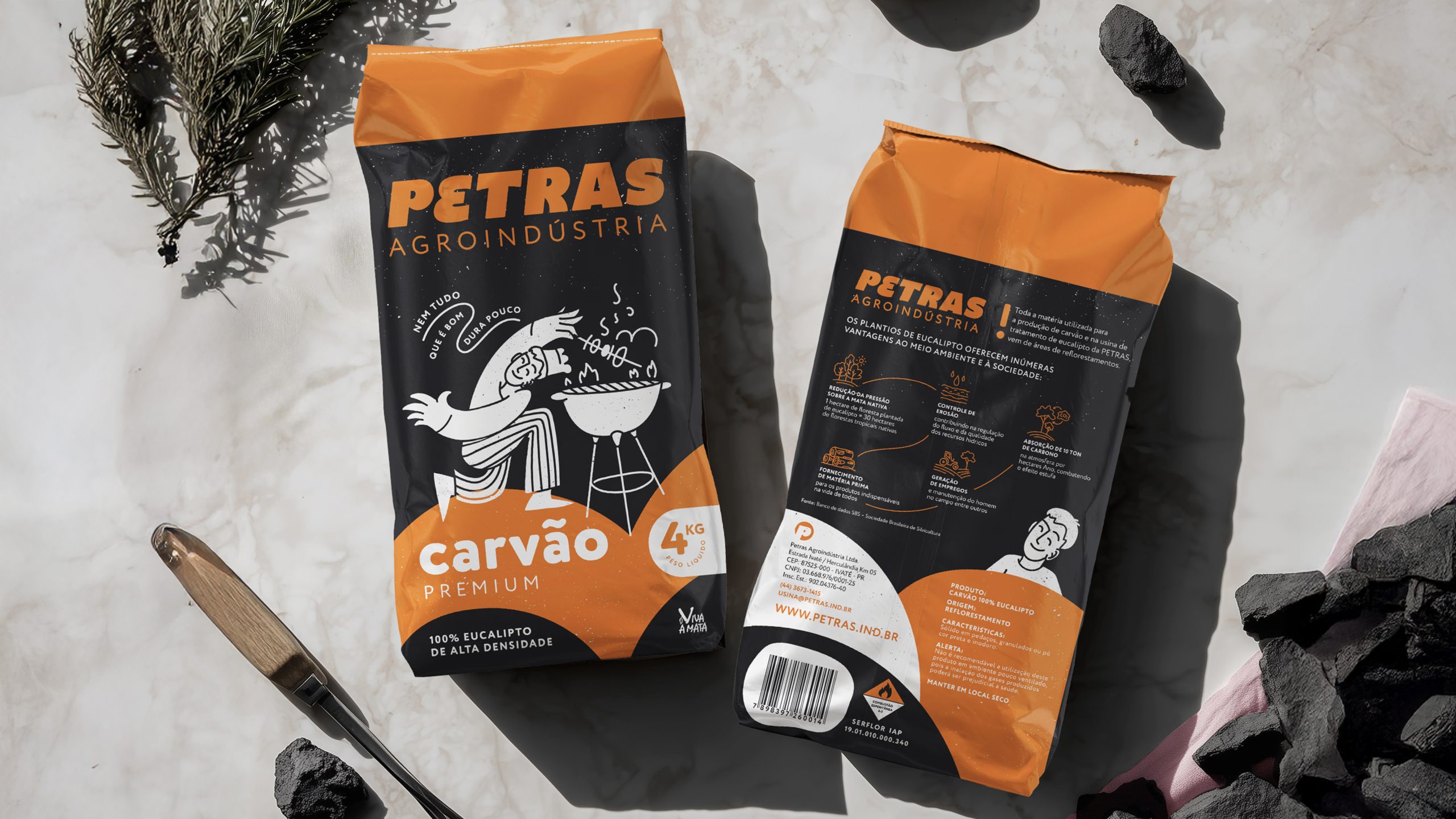 Petras is a family-run business from rural Brazil producing sustainable eucalyptus charcoal and other eucalyptus-based products. After 25 years, they came to us ready for a new chapter while wanting to honor the story that brought them here.