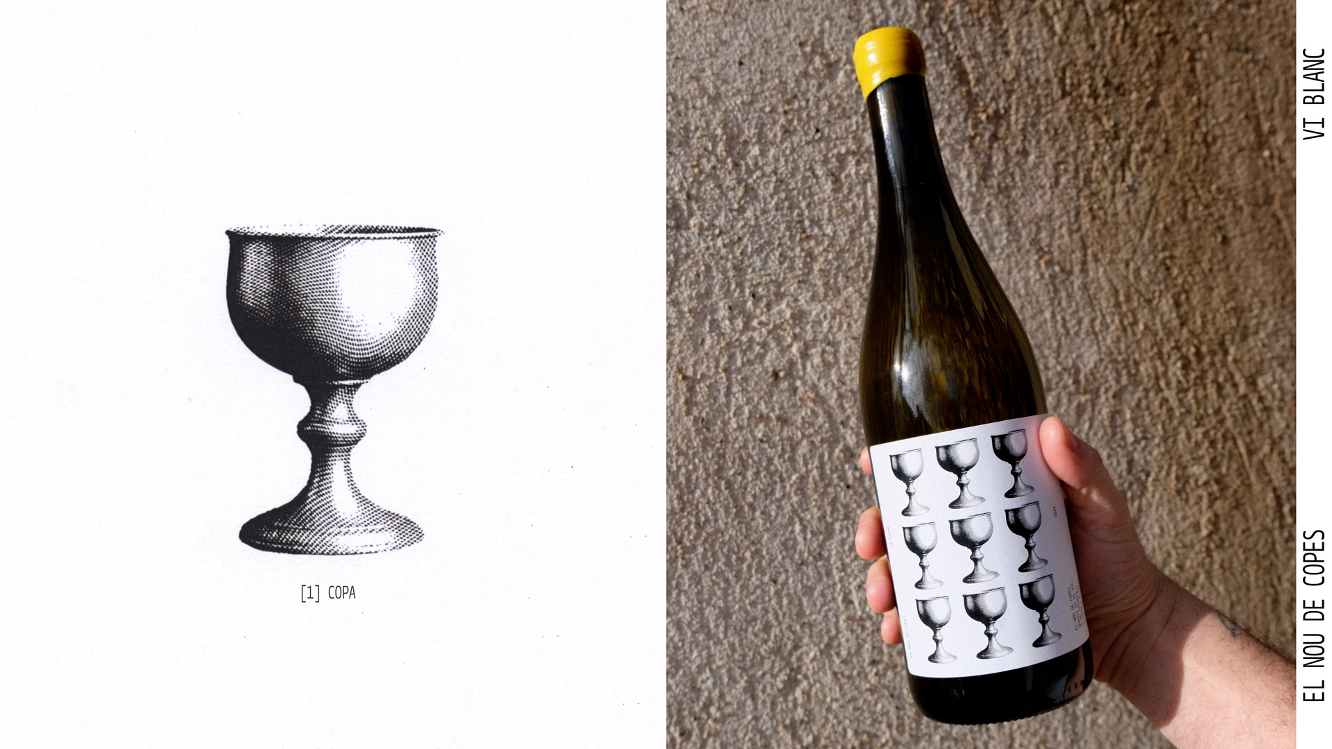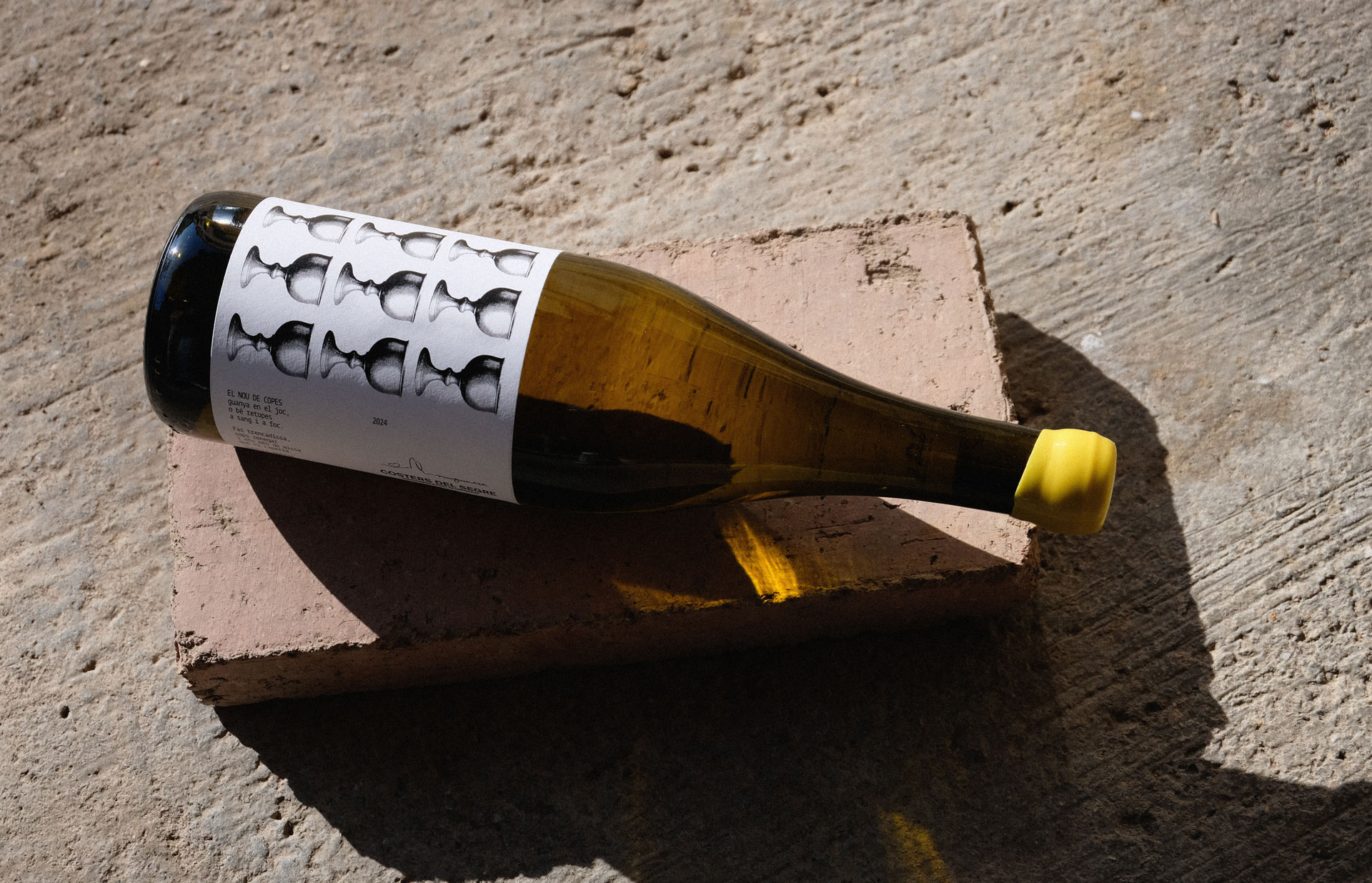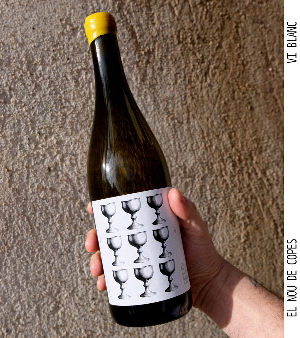 The project seeks to recover and highlight popular and historical words and references from the village of Guimerà, a town of medieval origin, in order to build, through wine, a new promotional and poetic narrative of the place. The label is rooted in its medieval past, the symbol of the Nine of Cups, and a poem by Mn. Ramon Muntanyola, and takes shape as a proposal that reclaims the town’s historical character through poetic language and a lithographic-inspired visual treatment.