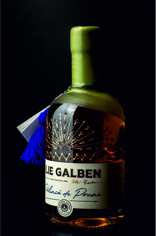 Inspired by Transylvanian folk costume, ILIE GALBEN’s bottle design reinterprets traditional motifs through a contemporary lens. The hand-painted peacock’s tail, the neck tassel and the wax seal evoke regional craftmanship, ornamental dress and the rolling hills and fruits of Transylvania, transforming the bottle into a refined cultural object.