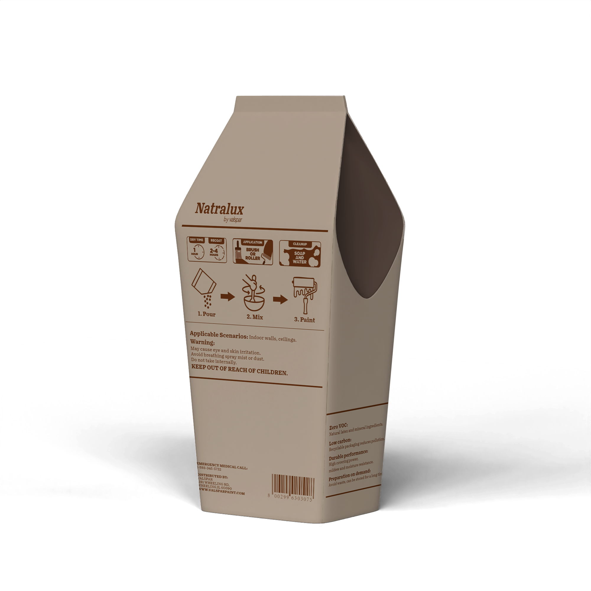 The design emphasizes biodegradable or reusable packaging solutions and aligns with the values of zero-VOC formulations and environmentally responsible production. Soft, grounded color palettes, clean typography, and material-forward forms communicate purity, safety, and modern ecological awareness. Rather than presenting paint as an industrial product, Natralux positions it as part of a healthier lifestyle — where design, home, and environmental ethics coexist.
