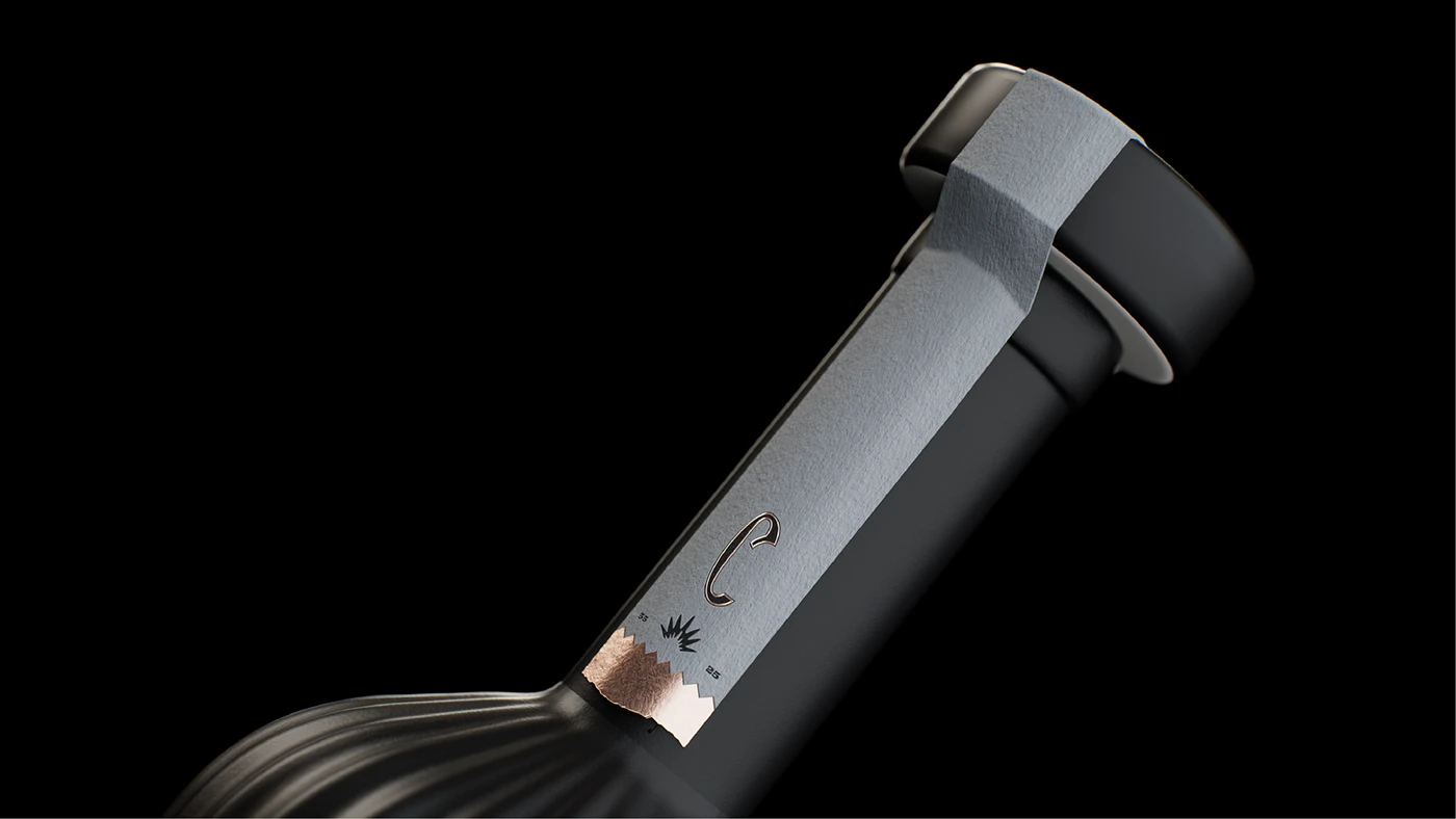 The silhouette draws from Cascahuín’s current bottle, establishing a respectful continuity with its history. At the base, the outline of Cerro Cascahuín emerges, anchoring the piece to its geographical and symbolic origin. Along the shoulders, a series of descending lines appear like flashes of light: a visual interpretation of “Cerro de luz,” the literal meaning of Cascahuín, where landscape becomes language and design becomes memory.
