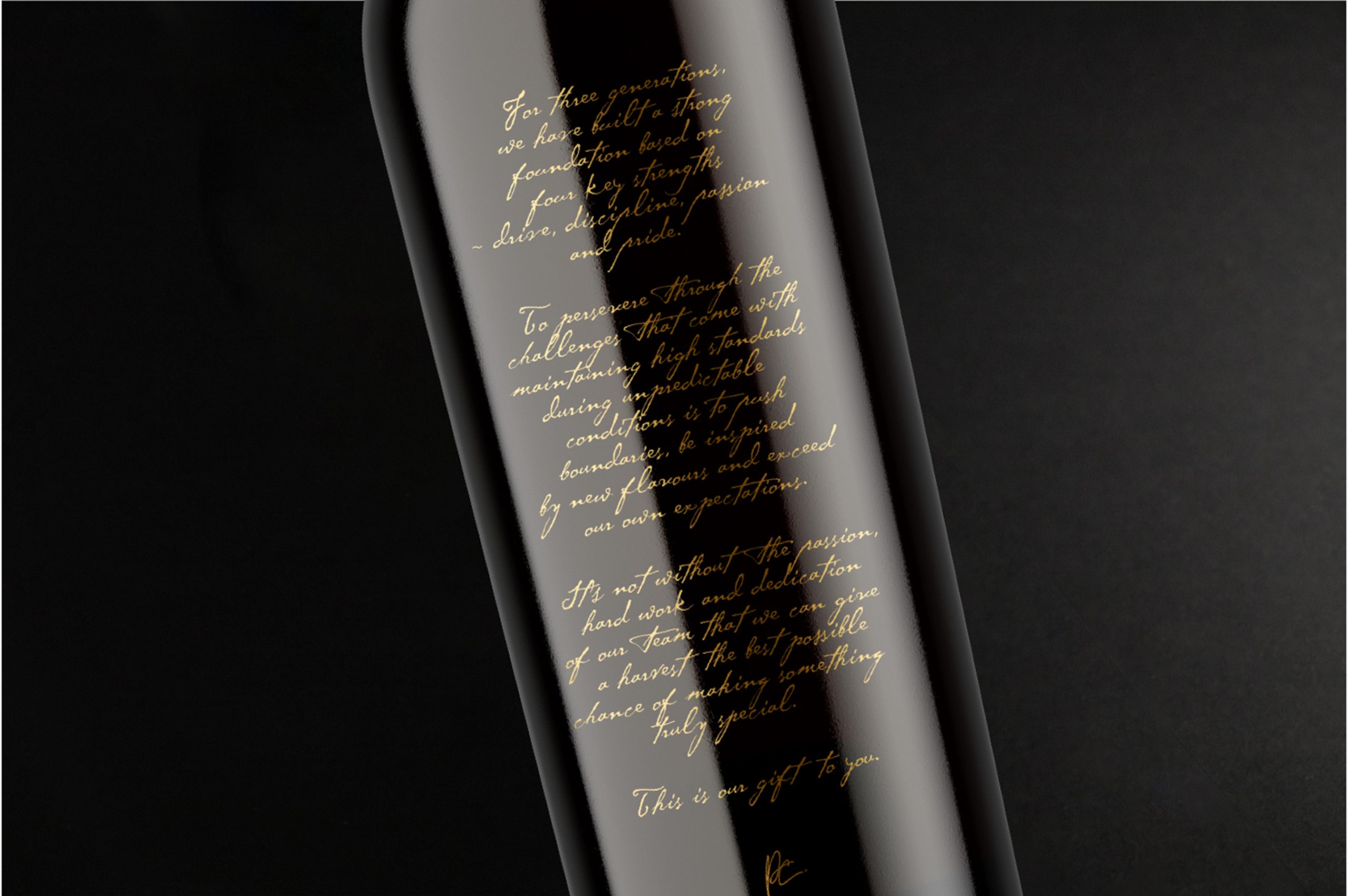 As the brand was not yet established, we wanted to create a distinctive bottle that reflects and communicates the wine’s quality, exclusivity, nobility and craft. Something that would be a proud showpiece after the wine has been consumed.