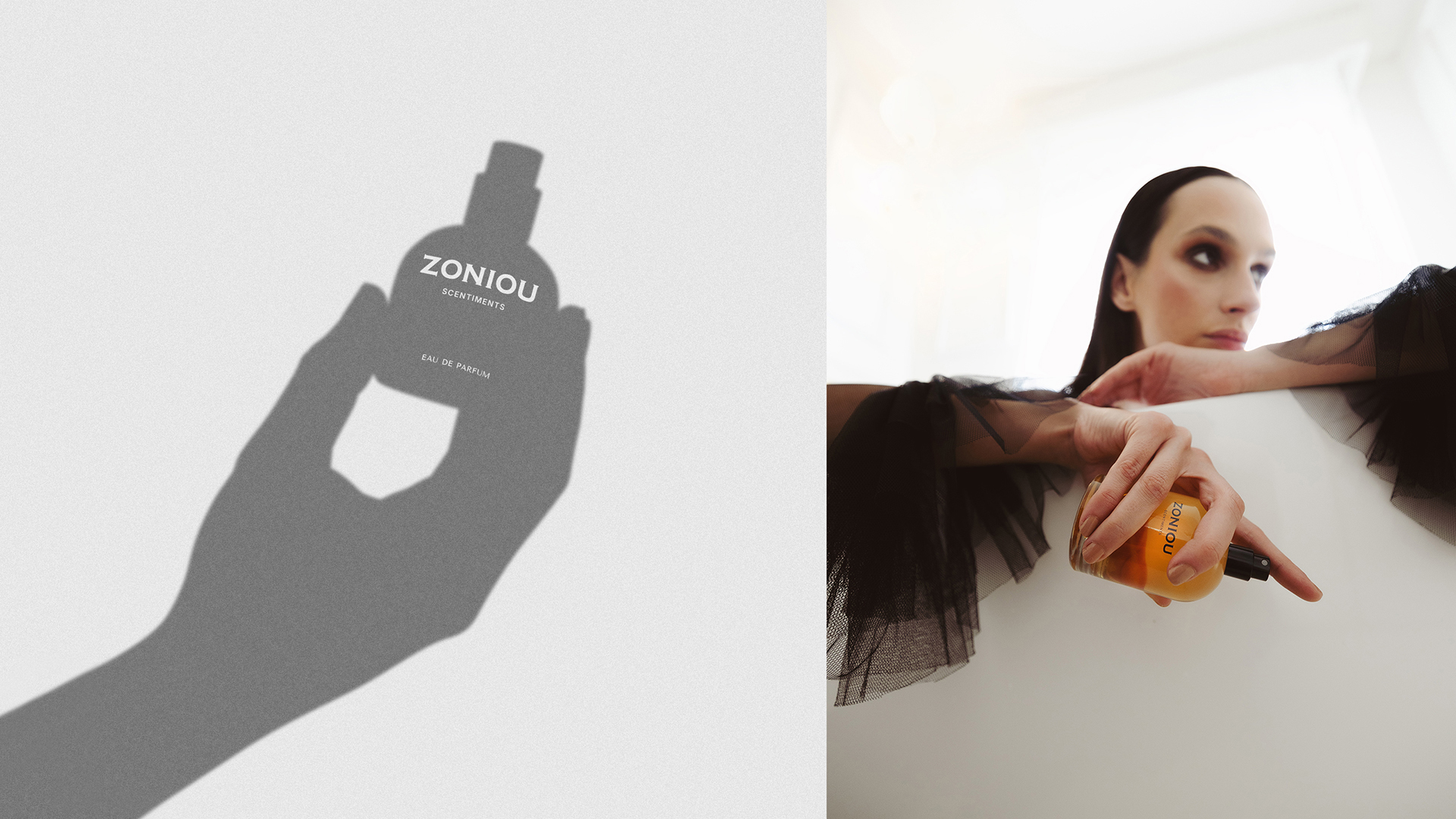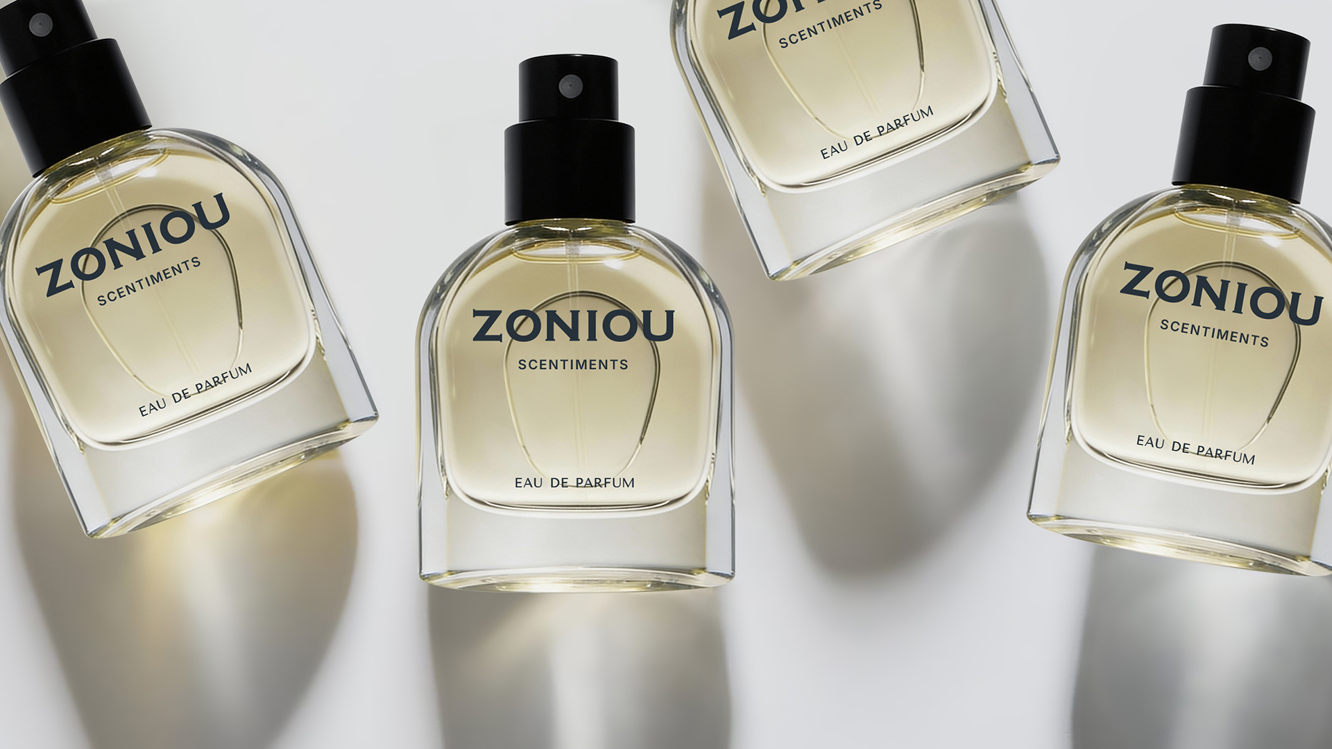 The final bottle translates the system into something tactile and emotional. Subtle colour, transparency and proportion allow the liquid to become part of the design. The label carries only essentials, alongside Zoniou and Scentiments, framing fragrance as an emotional medium rather than a branded object. Across all formats, consistency replaces excess, creating a quiet, intentional ecosystem centred on personal experience.