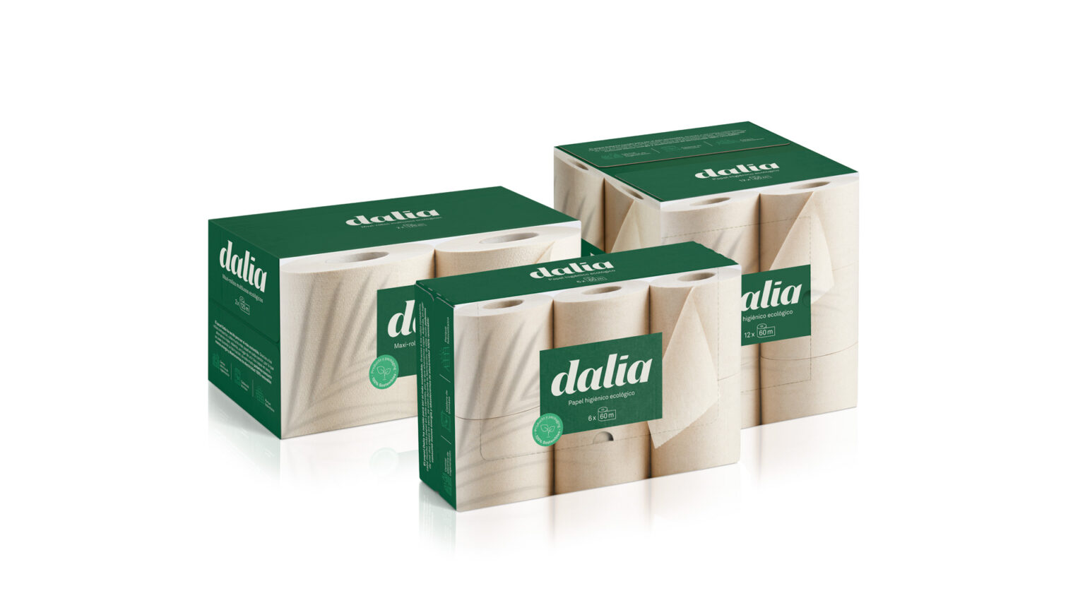 The main characteristic of this new Dalia® packaging is that it is the first packaging for toilet paper and kitchen paper in the world that replaces plastic wrapping with the concept of “transparent cardboard”.