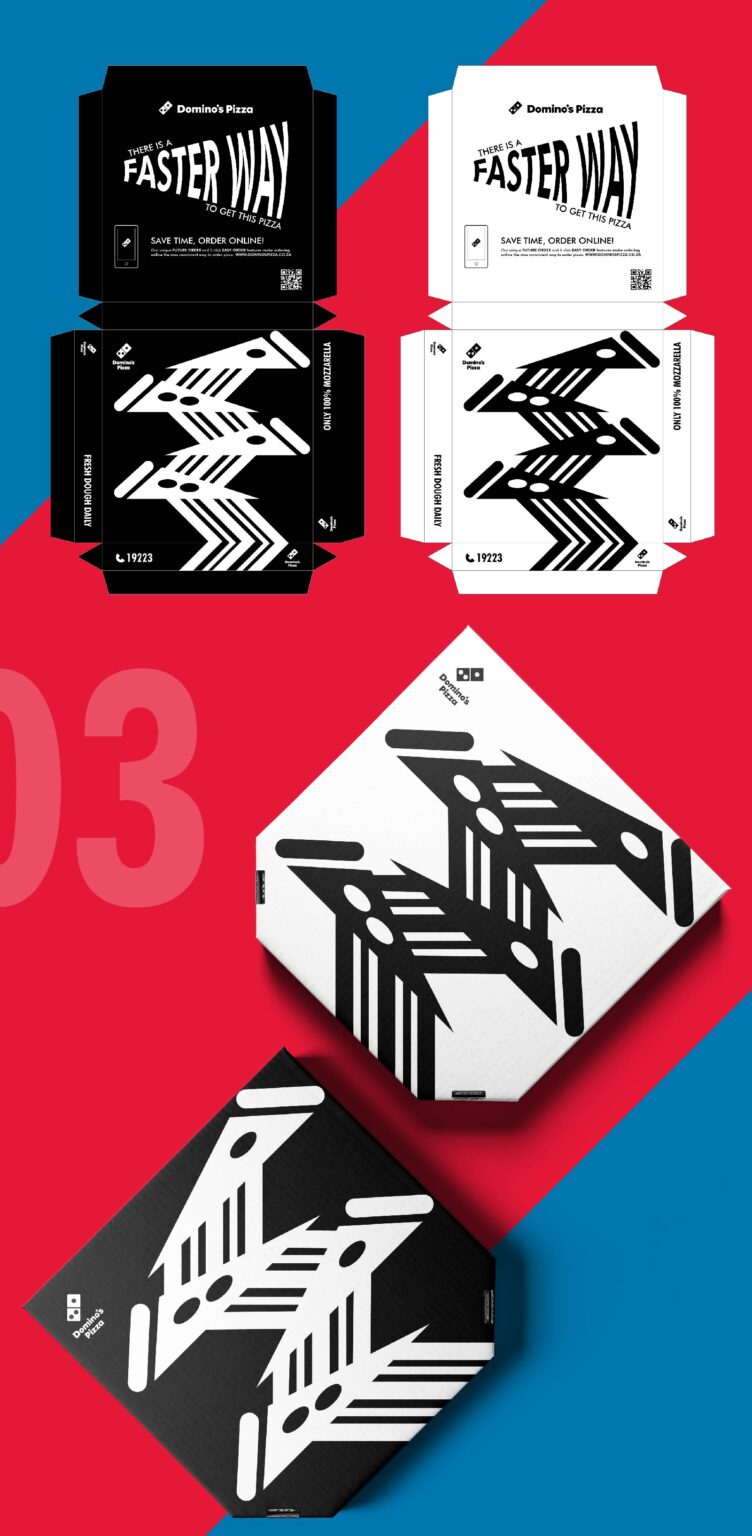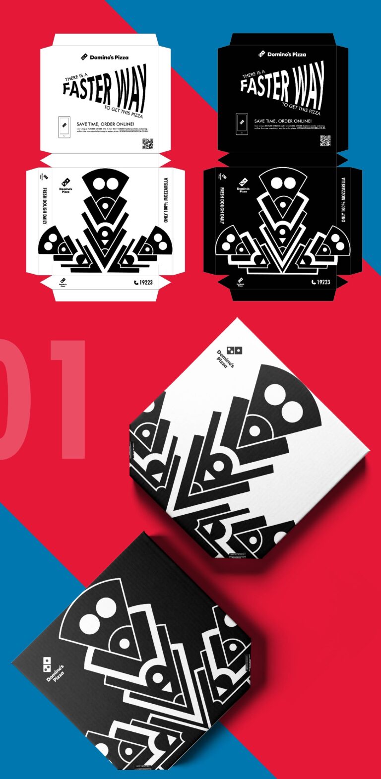 Packaging design project for Domino’s Pizza ( College project ) The brief was to create packaging designs using “Gestault Principles”. The principles that have been used in this project were “Closure Principle” and “Similarity Principle”. Also the brief included the colour palette for packaging designs that was “Black & white palette” to create strong contrast between design elements.