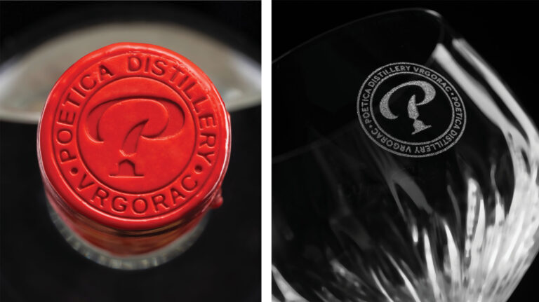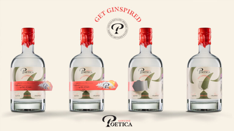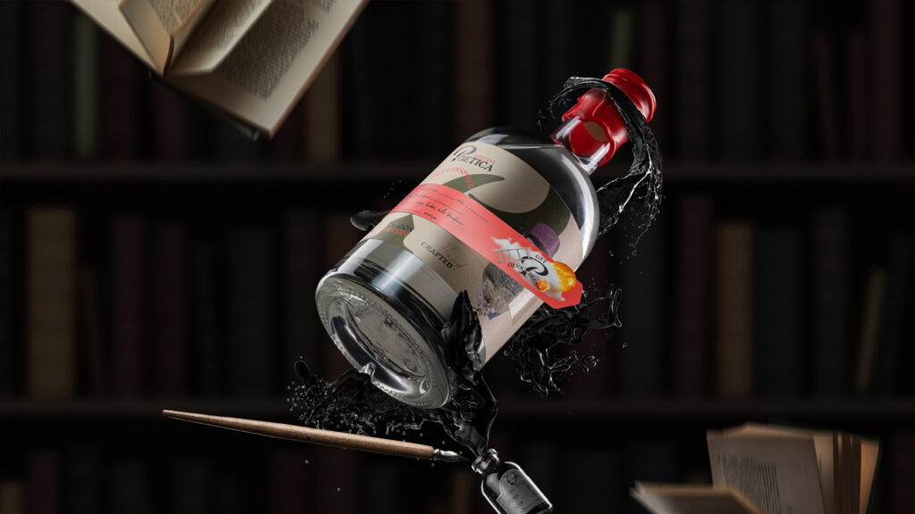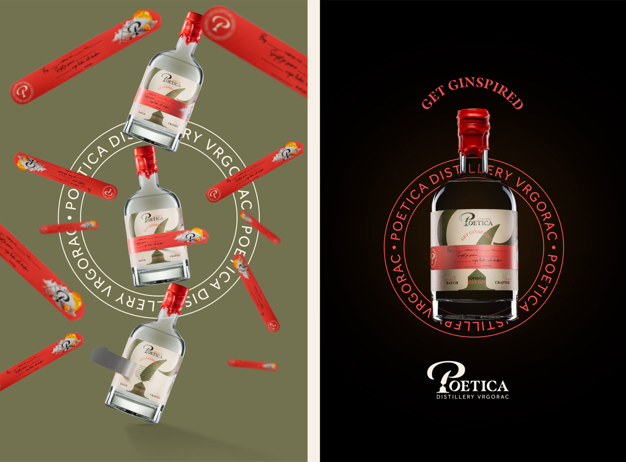 We named the brand Poetica standing for the art of poetry, just as craft stands for the art of gin production. The visual identity was enriched with the symbol of writing – the ink which itself was created from the symbol – the tower where Tin was born.