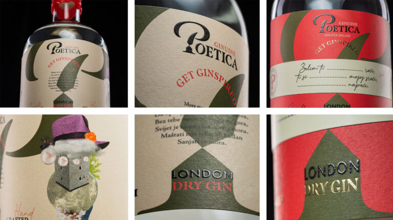 To remain long and instilled in the memory of the user was our first task. To resolve it successfully we added to the label an unavoidable tool for every reader – a bookmark. This way it became sustainable; you peel off the bookmark and Poetica is suddenly between the pages of your favorite book. Our second task was to connect the users with the brand making them the creators of their own poetry. Verses were added to the label, and blank fields to the bookmark creating an opportunity for the users to add their own words and create a personal poetry for a person they hold dear. This way we achieved an important goal – every label is different and whenever you pick up a bottle of Poetica gin – you will read the label too.