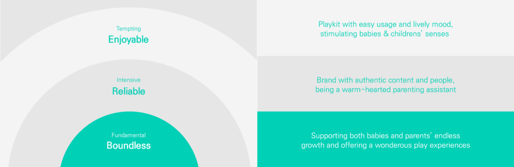 Shifting the cognition of the play itself, We proposed a ‘trustworthy and positive value’ that both a child and parent could appreciate for the brand that will bring a new trend in the child playtoy market. We established the brand value, and from the basis of this, the brand name and slogan, ‘Peekaby’ and ‘Time to explore baby’s world, were developed to intuitively deliver positive cognition to the brand and the brand experience. In addition, We designed the brand experience as an effective playtoy brand and parenting supporter by utilizing visual assets related to the brand image.