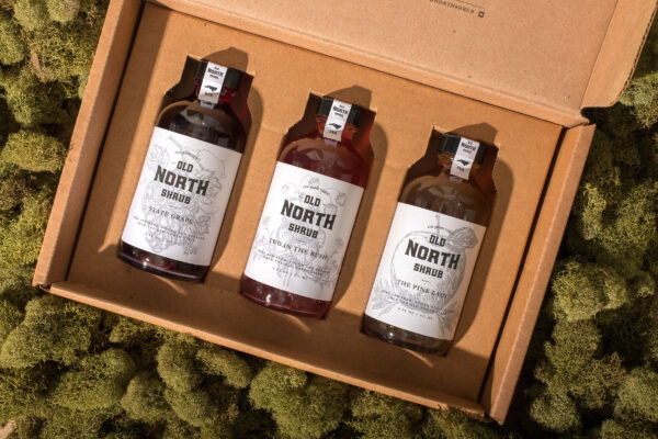 Mindful & Good helped design a brand and sustainable packaging line for Old North Shrub to be sold exclusively at high end cocktail bars, craft breweries, local bottle shops and specialty retailers across the U.S. By creating a bold stated logo tied in with custom hand drawn illustrations of the local and seasonal ingredients found in each bottle, the Old North Shrub brand emulates a farmed and foraged vintage-feel reflecting that of a bygone era of the Old North State and the colonial-day drink. The handmade shrub and packaging (made from recycled glass bottles and 100% recycled, FSC and Green Seal certified labels with a gift box printed using algae ink) has been quite a success. Old North Shrub has seen steady growth each year, mentioned in several print publications, is often used by award-winning mixologists and chefs and won several awards including the Good Food Foundation, Our State Magazine, Made In NC and Southern Living Magazine.