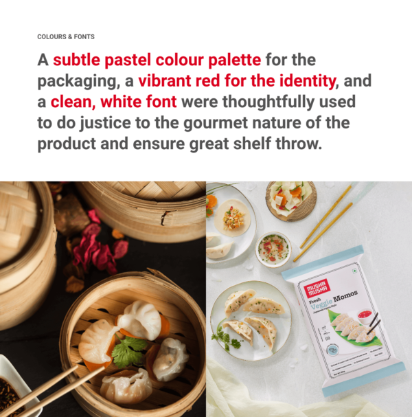 Our research led us to the conclusion that Japanese cuisine was picking up and it was the perfect time to establish Musha Musha as a prime mover in this segment. We recommended naming the product ‘Gyoza-style momos’ on the FOP. This strategic recommendation helped in creating an exclusive niche, along with retaining familiarity with the product for the TG.