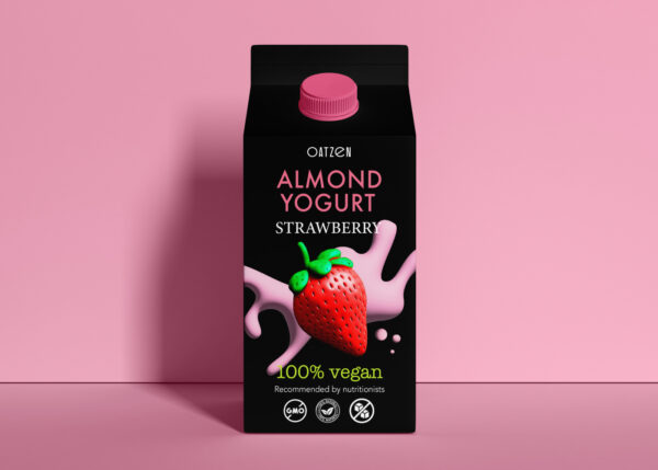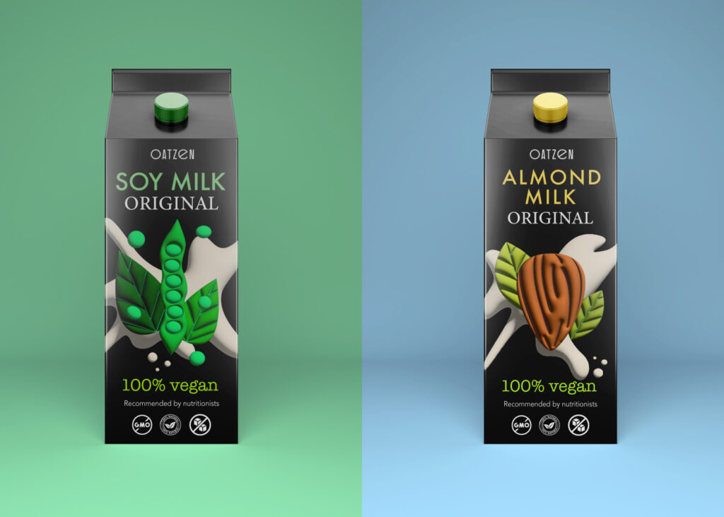 DESIGN: The goal is to create packaging for vegan products (milk and yogurt). The target audience is young, advanced people who follow the latest trends, in other words, hipsters. These products are for people who not only care about their health but also pay attention to design and often buy products because of their cool packaging.