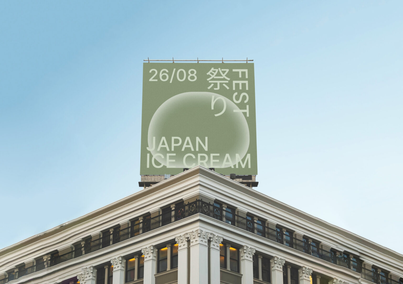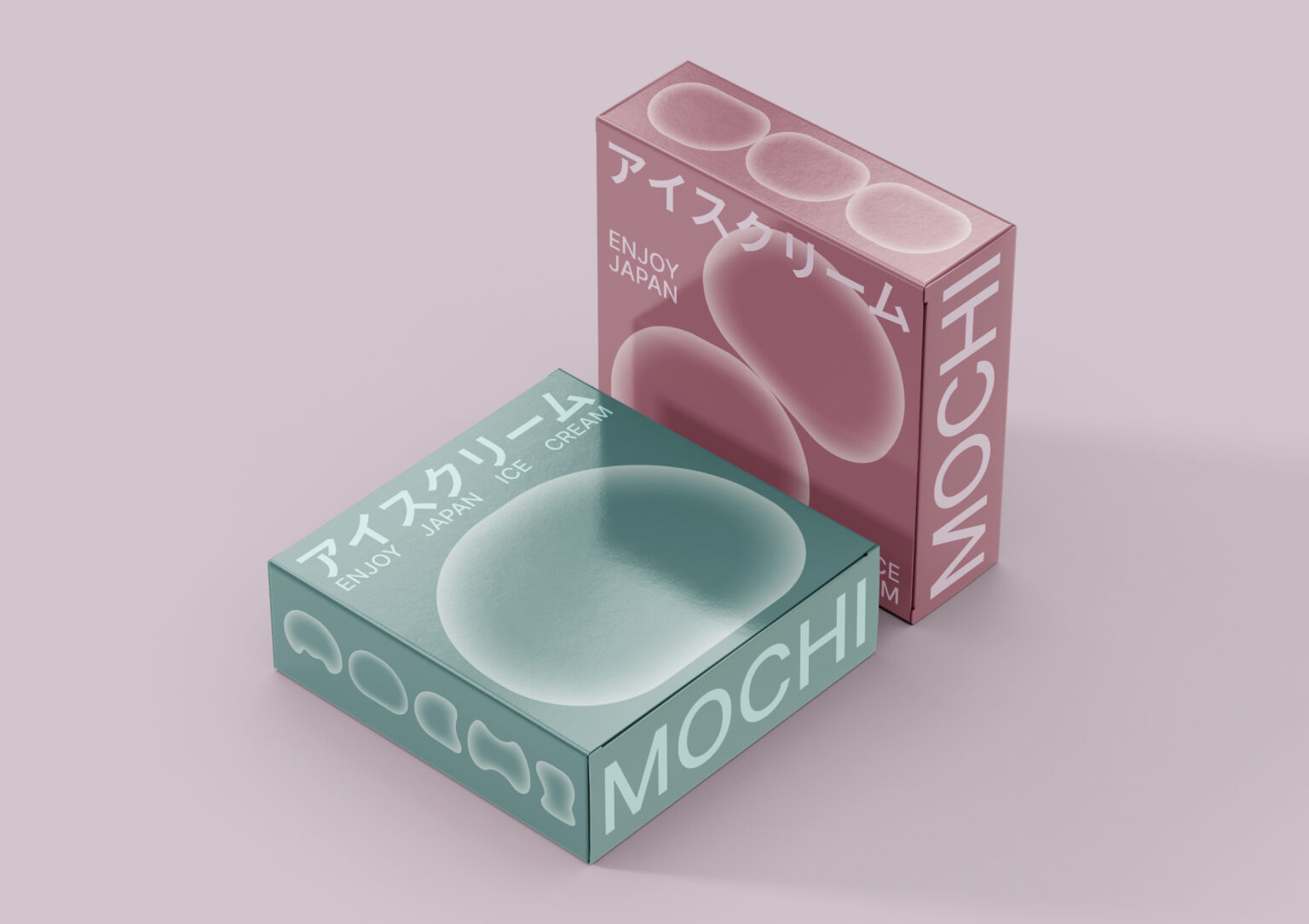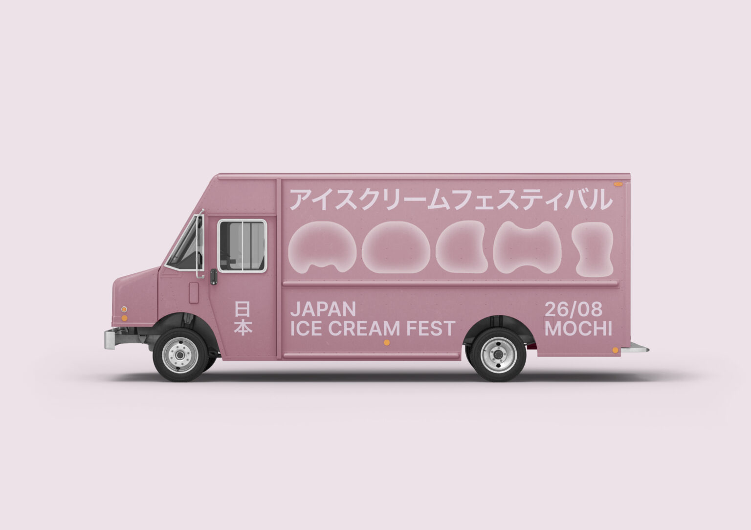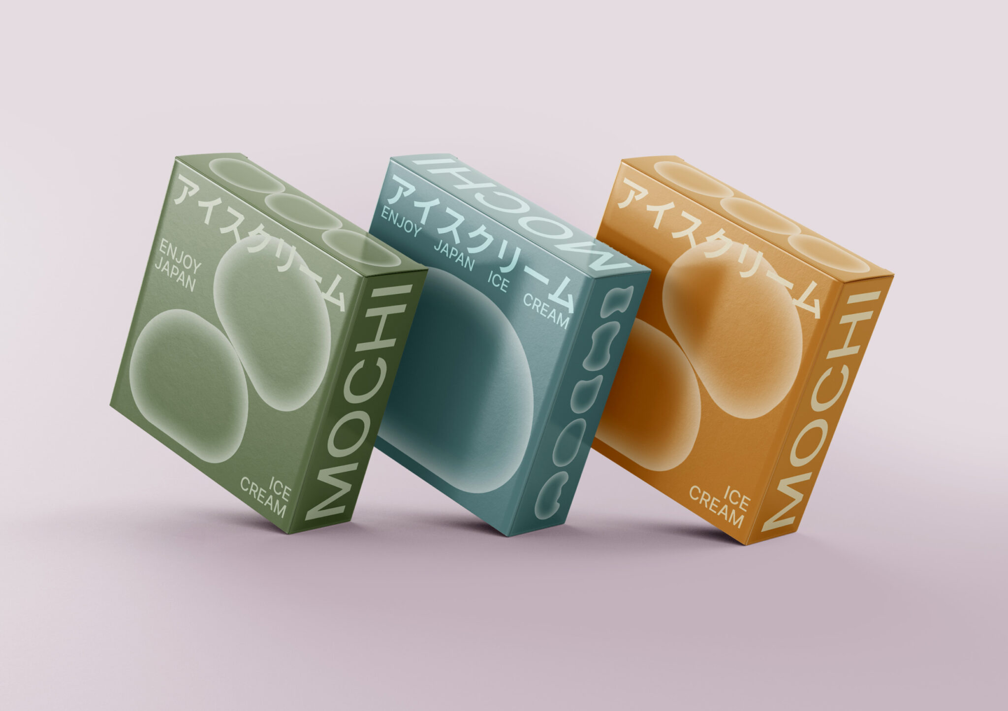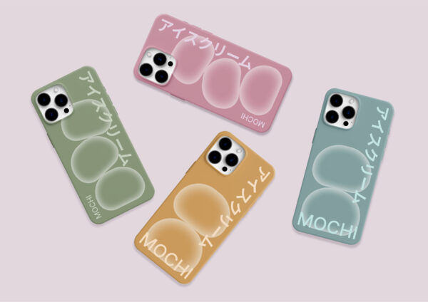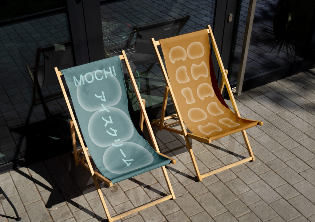 The design reflects the gentleness in both flavor and appearance of the mochi, achieved through the use of an inner shadow technique. To represent the array of flavors, four core colors were chosen. The design of the Japanese ice cream fest mochi is also showcased, where anyone interested can sample the renowned dessert. A font was even created from mochi, resembling a partially bitten treat. The text layout is styled after Japanese posters, paying homage to the birthplace of this famous dessert.