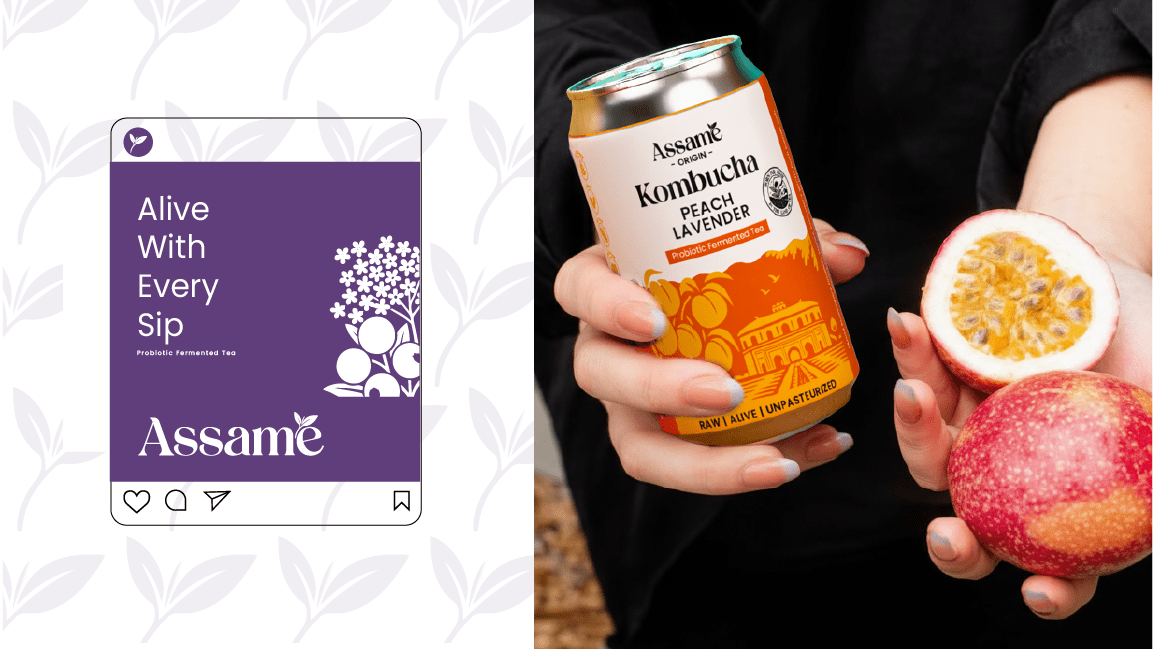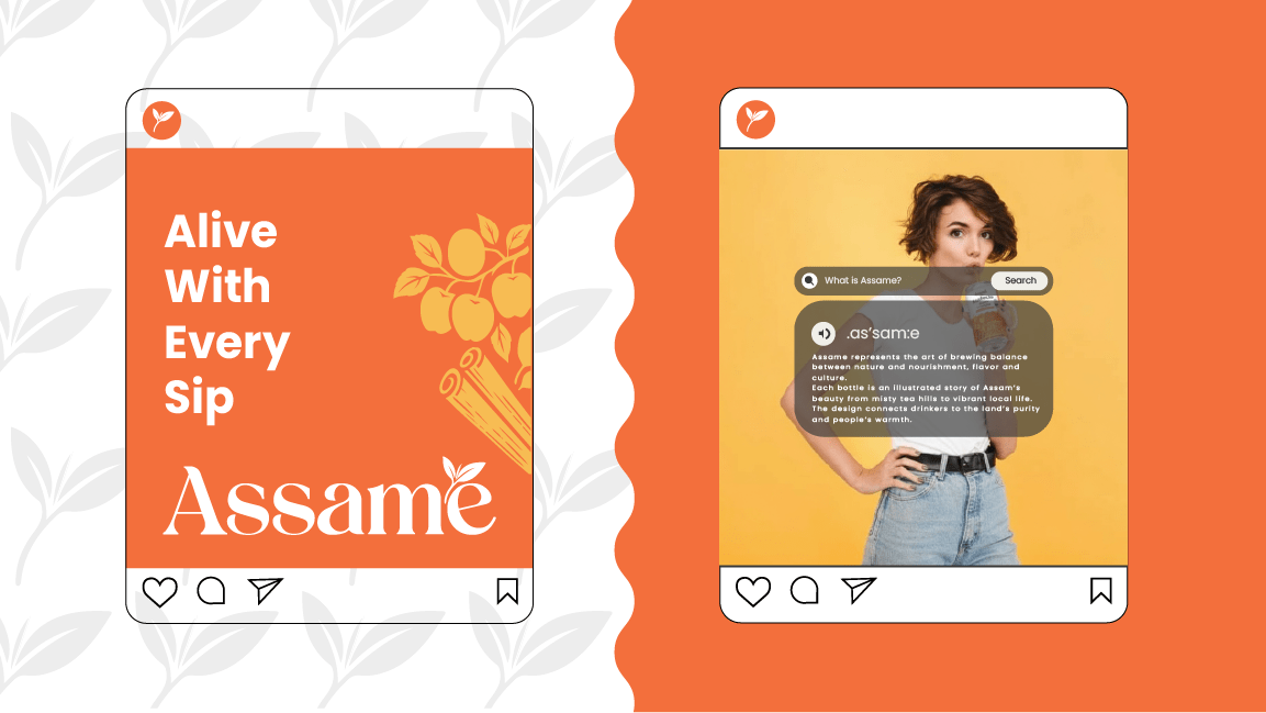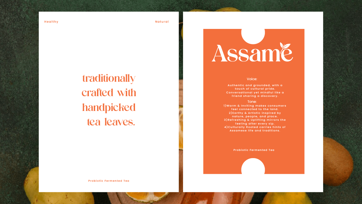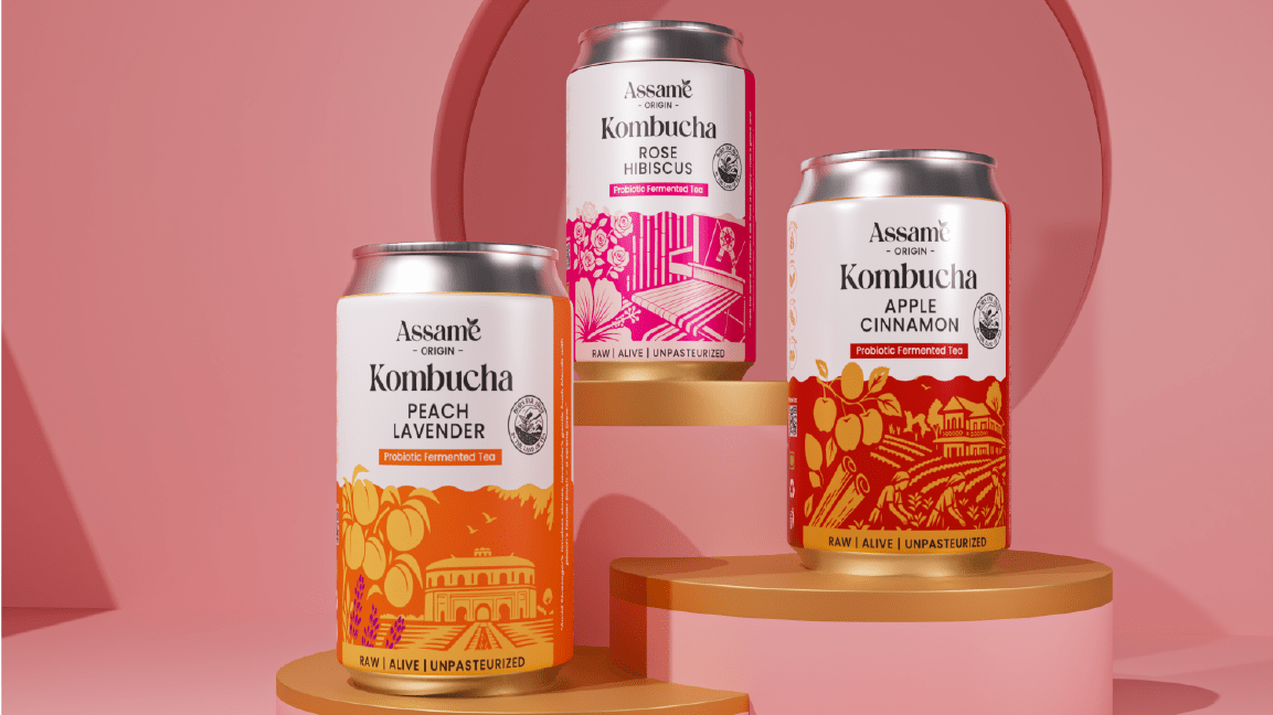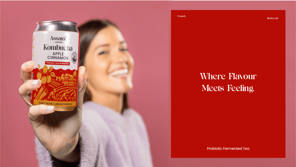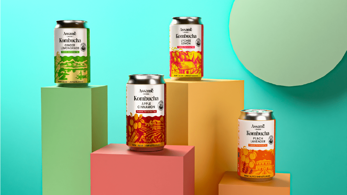 Assame is a premium Kombucha drink brand inspired by the rich tea heritage of Assam. For this project, we developed the complete branding, identity, and packaging design to capture the essence of Assam’s natural freshness and cultural depth. The brand reflects a perfect fusion of tradition and modern wellness, showcasing Assam’s authenticity while appealing to today’s health-conscious consumers. The design language draws from the lush tea gardens, local artistry, and earthy tones of the region, translated into a clean and contemporary visual identity. Through thoughtful storytelling and packaging, Assame positions itself as a refreshing, authentic, and culturally rooted Kombucha brand that celebrates the spirit and purity of Assam.