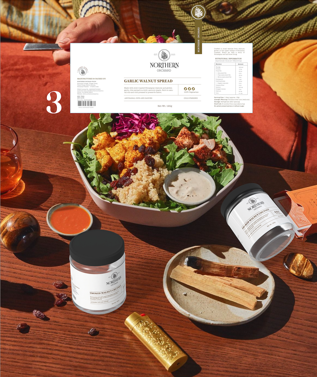 Brief: Walnut Dips & Sauces is an artisanal brand creating small-batch dips made from Himalayan walnuts. The goal was to build a clean, modern identity and packaging system that feels premium, natural, and rooted in the product’s origin.
