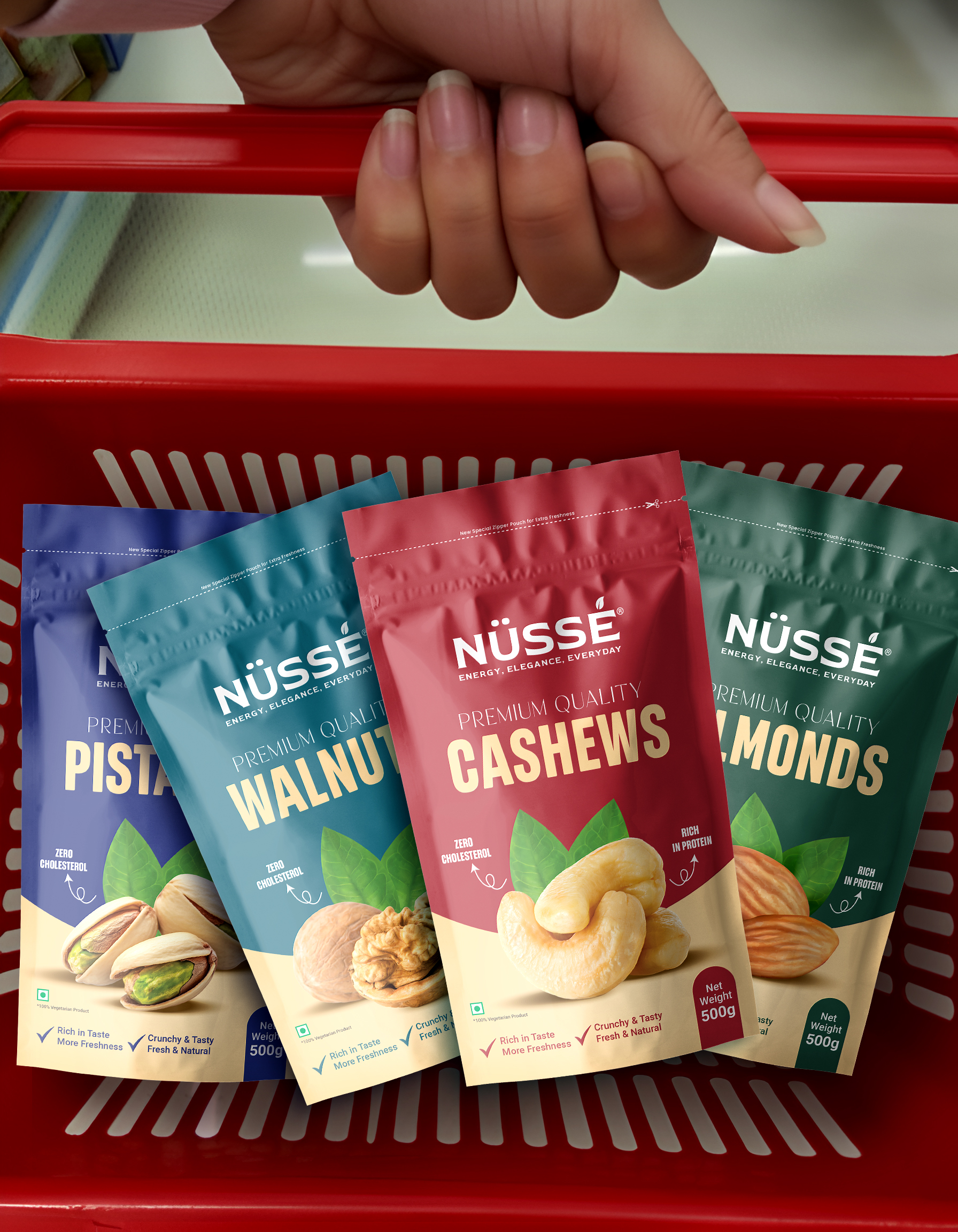 NÜSSE is a premium brand offering high-quality dry fruits with a promise of natural freshness and authentic taste. The brand approached this design project with a clear vision — to create a refined, modern, and trustworthy packaging identity that resonates with today’s health-conscious consumers.
