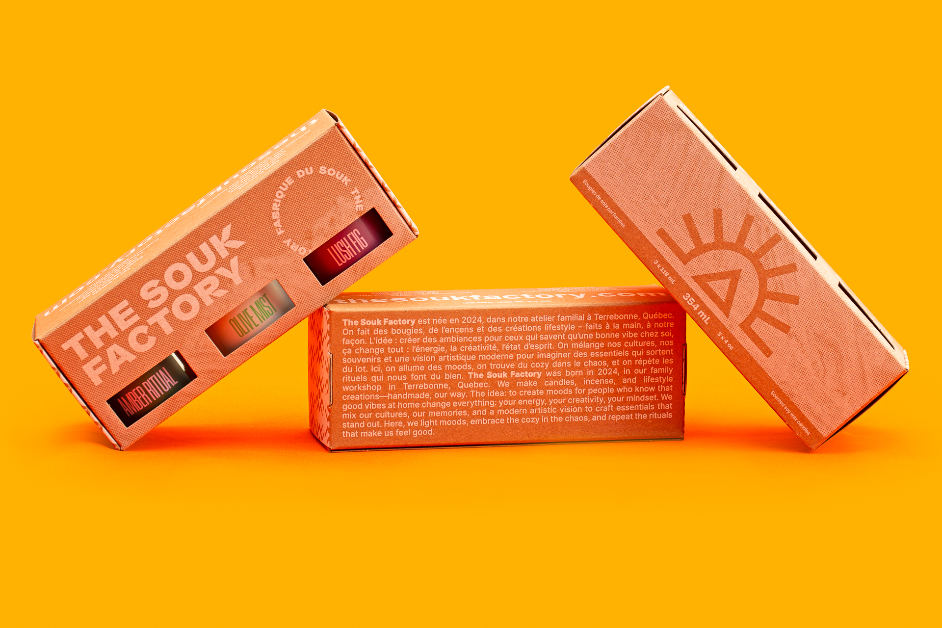 The Souk Factory’s visual world grows out of a meeting of cultures and perspectives shaped by the stories and experiences of its co-founders, Myriam and Najim. The references they shared—Moroccan graphic traditions, souk aesthetics, rich colours, and tactile materials—reflected a blend of influences informed in part by Najim’s Moroccan and Amazigh heritage. This contrast and complementarity guided the creative direction, leading to a more vibrant and expressive identity that felt true to the brand’s spirit.